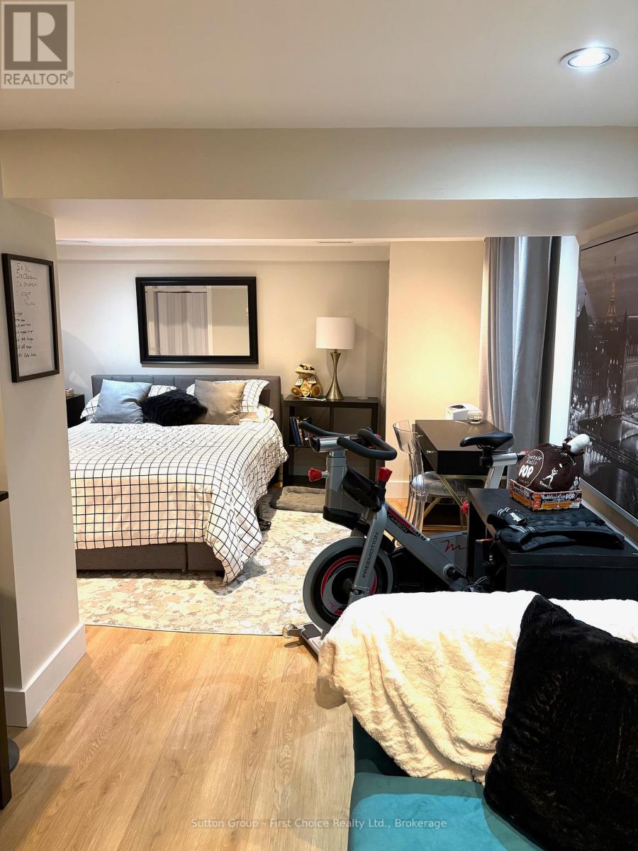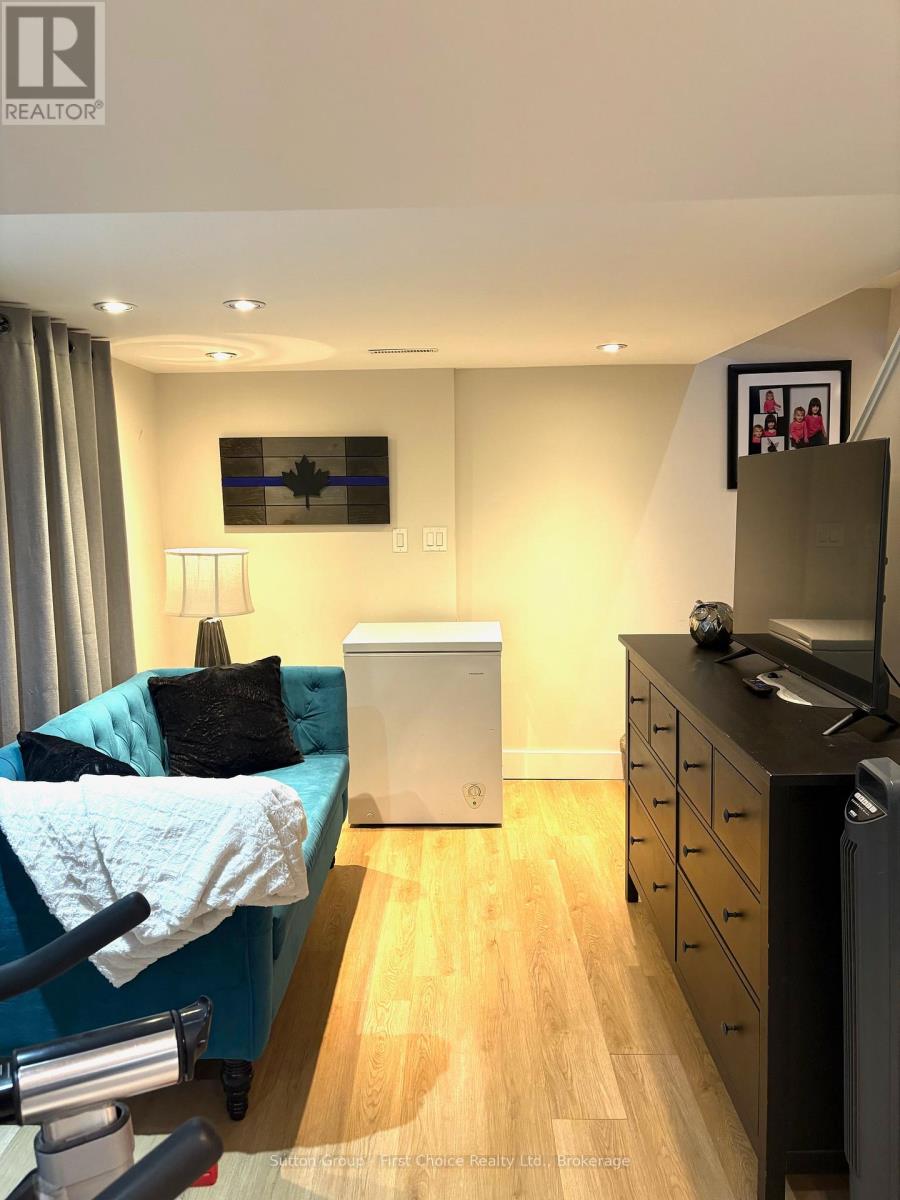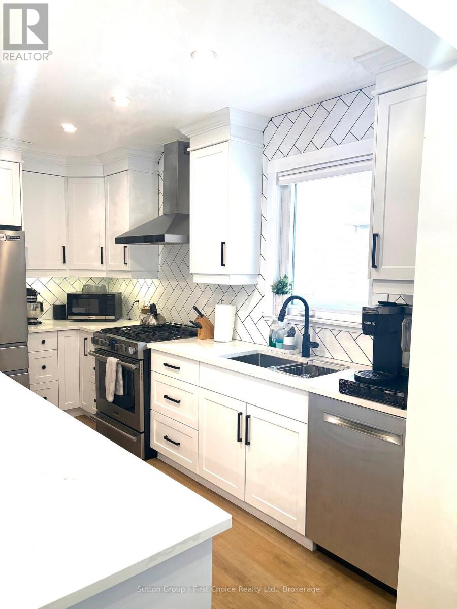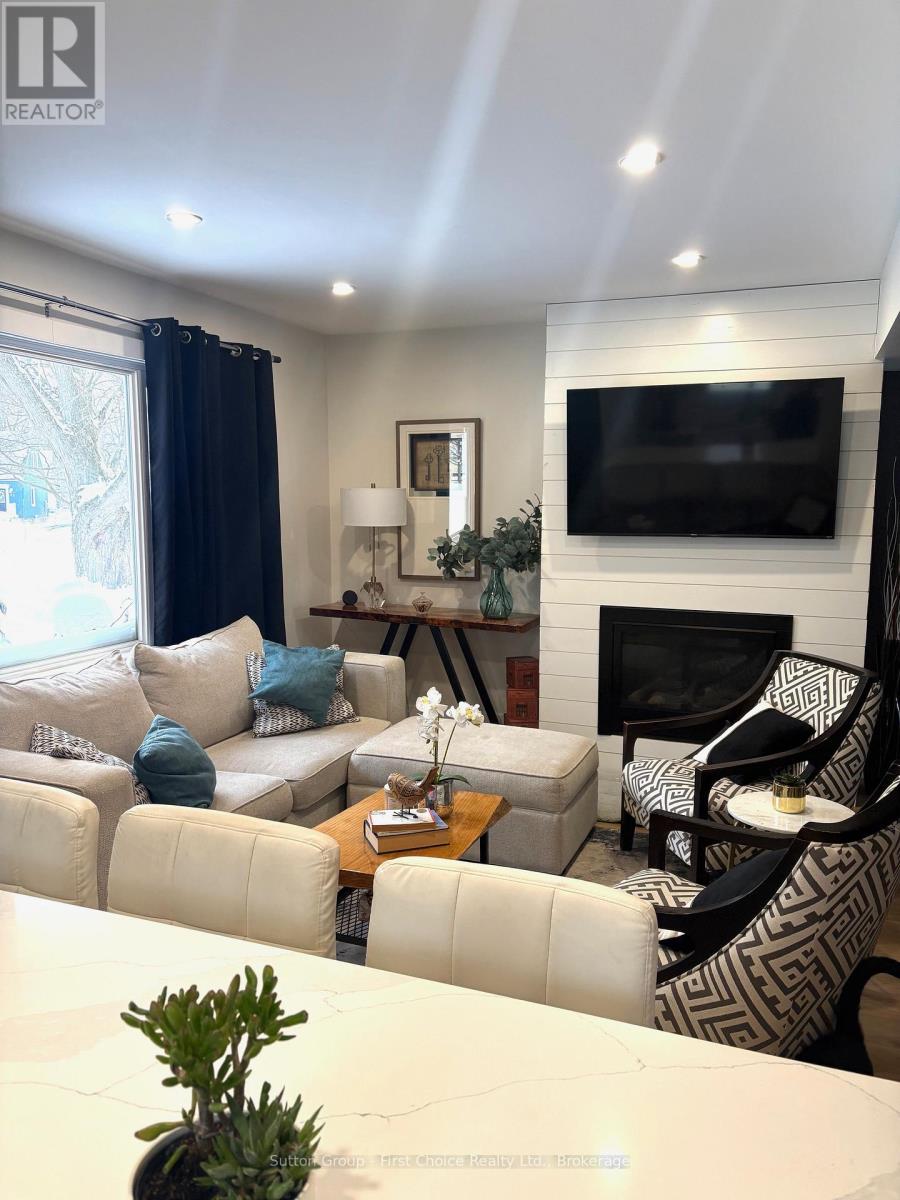 Welcome to this stylishly updated 2-bedroom, 2-bathroom home, ideally located on a quiet street. The living room is warm and inviting with a gas fireplace, while the beautifully renovated kitchen is both functional and modern, perfect for everyday living and entertaining. The dining room offers a convenient walk-out to the backyard, creating a seamless indoor-outdoor flow. The finished basement provides valuable additional living space, featuring a potential third bedroom and its own 3-piece bathroom. Upstairs, you'll find two comfortable bedrooms. Step outside to a fully fenced backyard with mature trees, a relaxing patio, and a 10' x 16' storage shed with hydro. The property also includes parking for three vehicles and laundry. Book today for a private viewing! (id:51300)