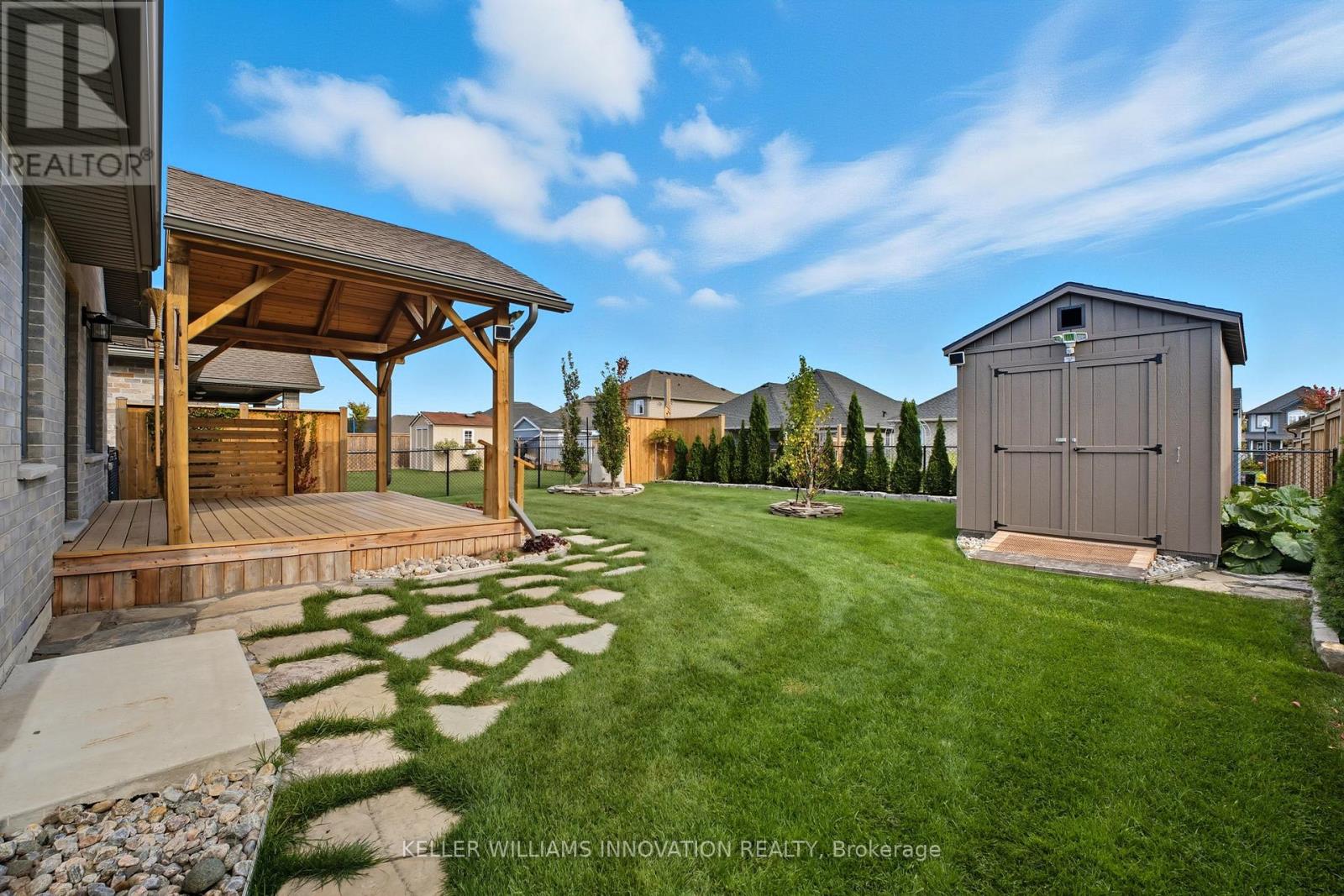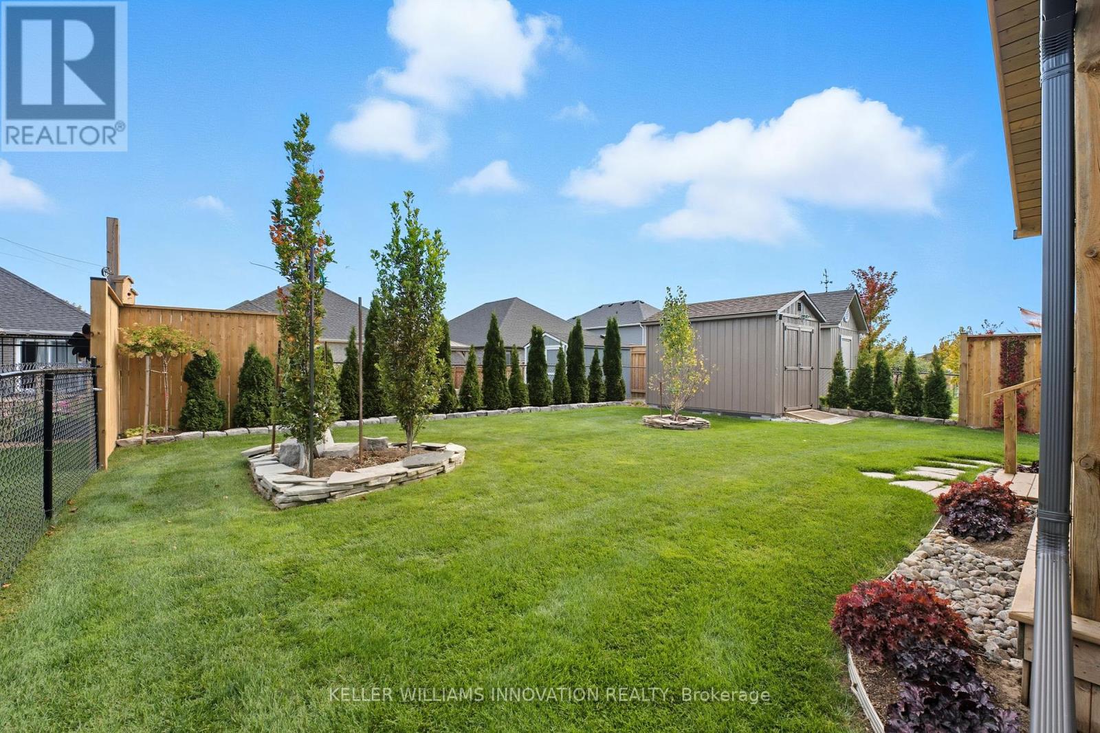 Welcome to 16 Forbes Crescent - Stylish Bungalow with Exceptional Outdoor Living! Located in a quiet, family-friendly neighborhood, it boasts great curb appeal, a charming front porch, and parking for up to 6 vehicles in the extended driveway. Step inside to an open-concept living space with a bright, airy feel thanks to vaulted ceilings and natural light streaming in from the east-facing backyard. The kitchen is thoughtfully designed with ample cabinetry, a pantry, quartz countertops, and a stylish backsplash. Enjoy the convenience of main floor laundry and two spacious bedrooms on the main level, all complemented by blinds and curtains throughout the home. The partially finished basement (2024) has a large rec room and a rough-in for a bathroom. Outside, the fully landscaped backyard is a private retreat, featuring hedges along the back, a covered porch, flagstone pathway, shed, and full fencing-perfect for pets, kids, or quiet mornings with coffee as the sun rises behind the home. Additional highlights include a fully finished garage with Trusscore paneling-ideal as a workshop or clean storage space. Contact your agent to book a viewing (id:51300)