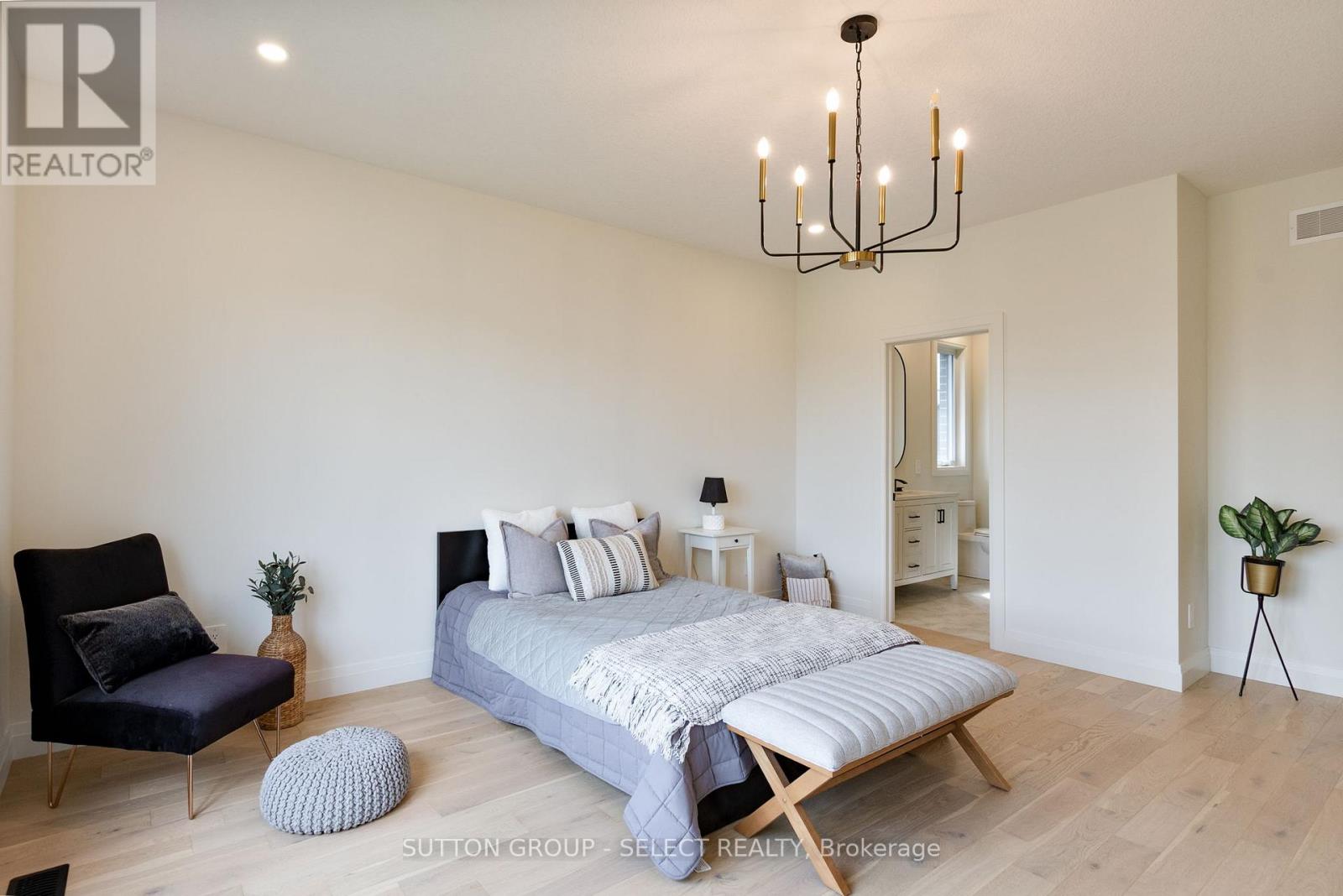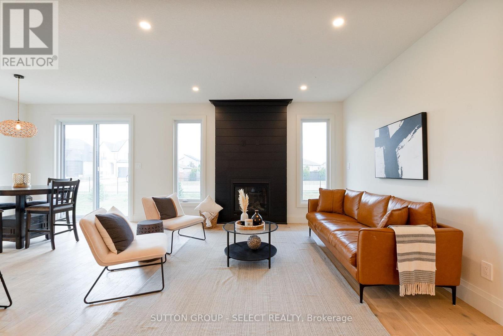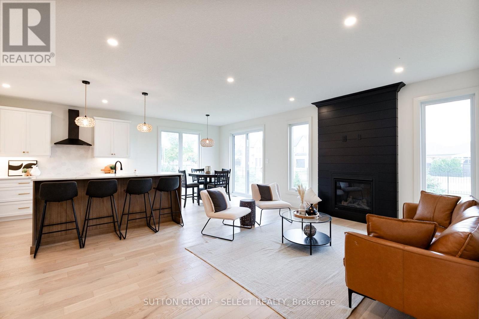 LAST 55FT LOT LEFT! Incredible oversized 3 CAR GARAGE open concept 3 bedrm one floor model with SECOND ENTRANCE from garage to fully functioning FINISHED basement with kitchenette, 2 bedrms, 4pc bathroom and HUGE familyrm situated on generous pool sized lot (55ft x 127ft) with rod iron fence across back and trees planted. You will be impressed the moment you enter the front door with the finishes throughout this home including a Designer kitchen with breakfast bar island, quartz counter tops, valance lighting and backsplash. Great room with upgraded gas fireplace. Master bedroom suite with walk in closet and luxury ensuite with glass shower. Nicely sized additional bedrooms with close access to 4pc bath. Main floor laundry with garage access. Loads of potlights included! 200 AMP service. Approx 2800sqft finished. Rich hardwoods throughout main living areas, tile in laundry and baths, solid surface counter tops, central air, concrete driveway, upgraded stone on front elevation...the list goes on! Flexible closing - quick close anytime if needed! Lets make a deal! View today! (id:51300)