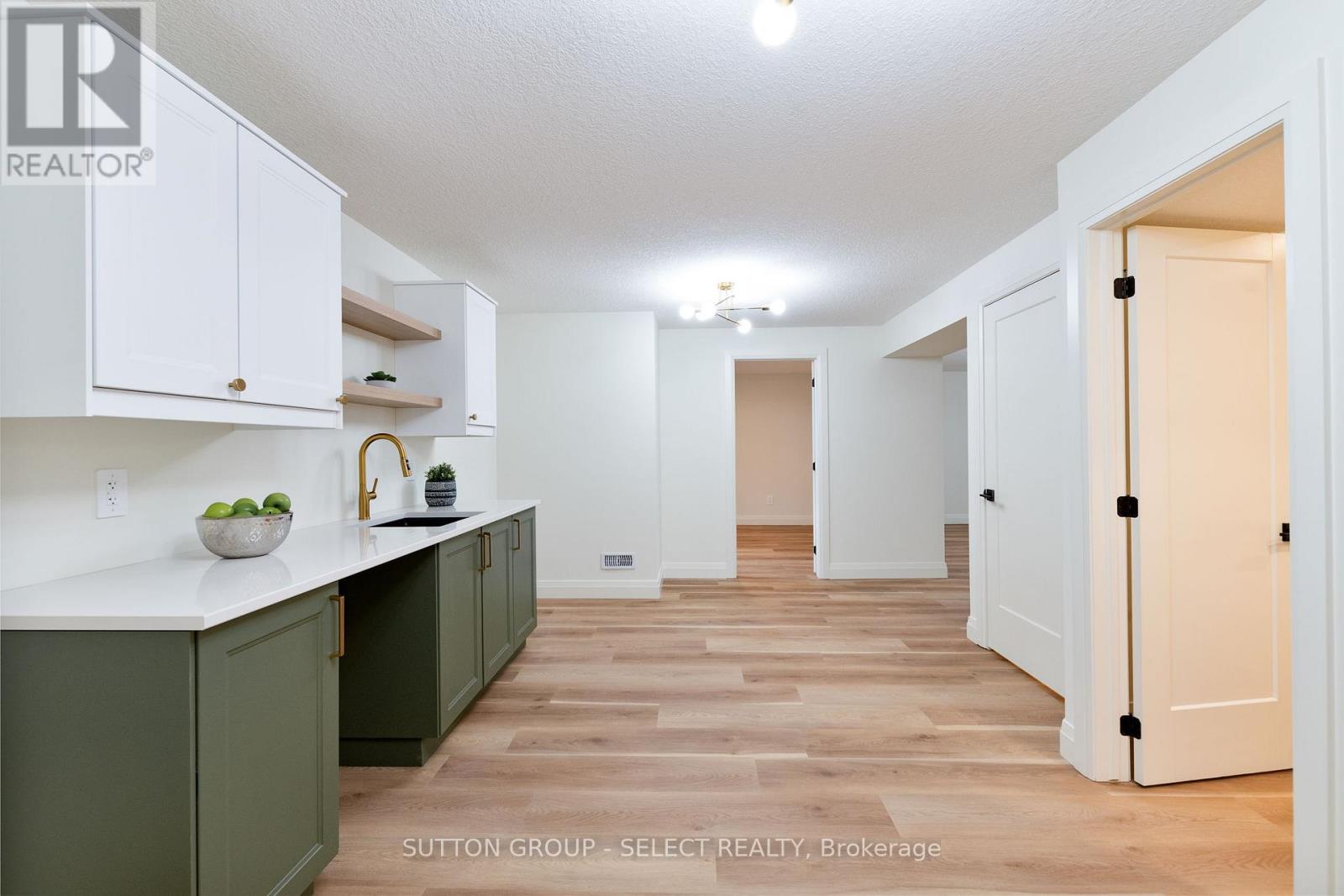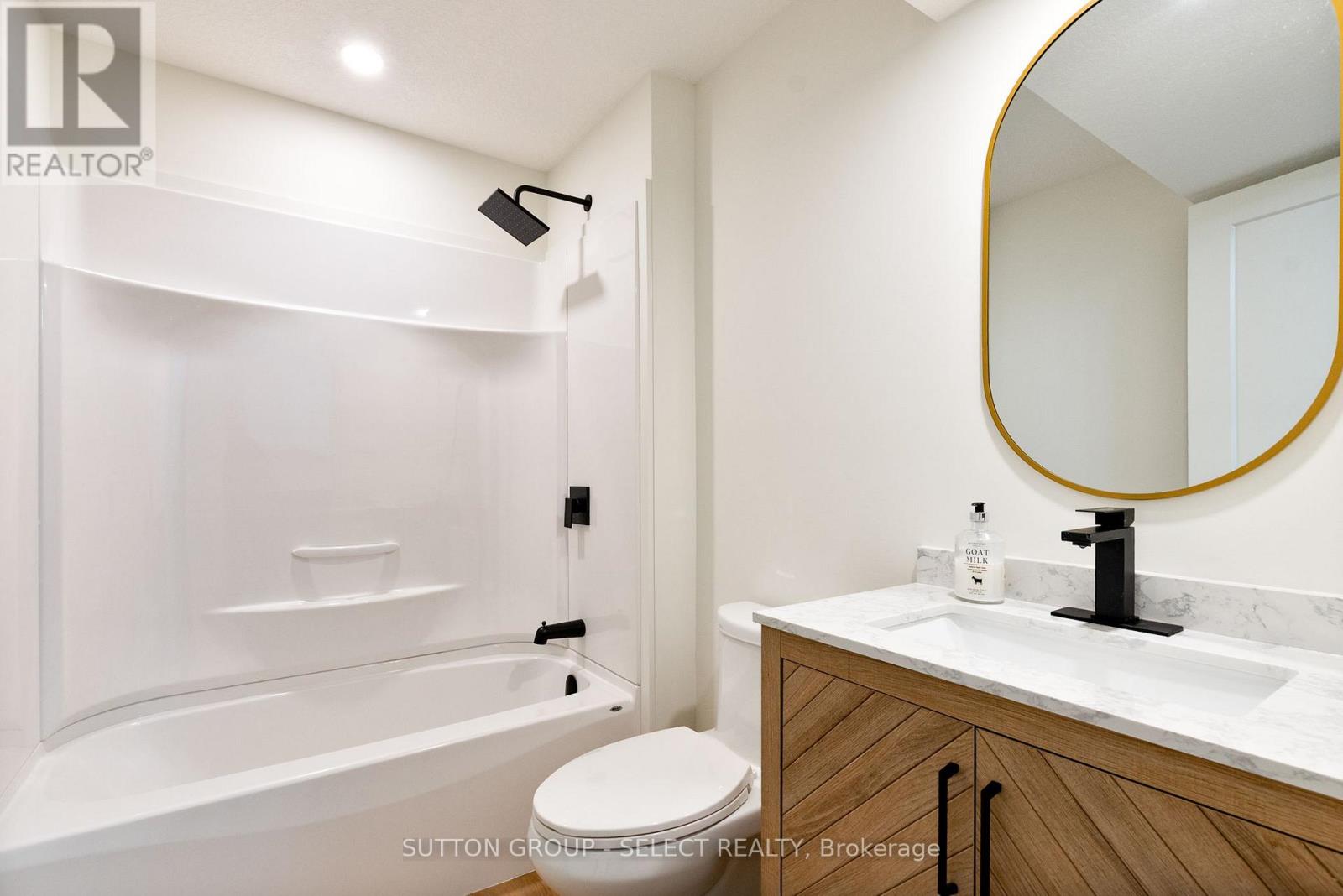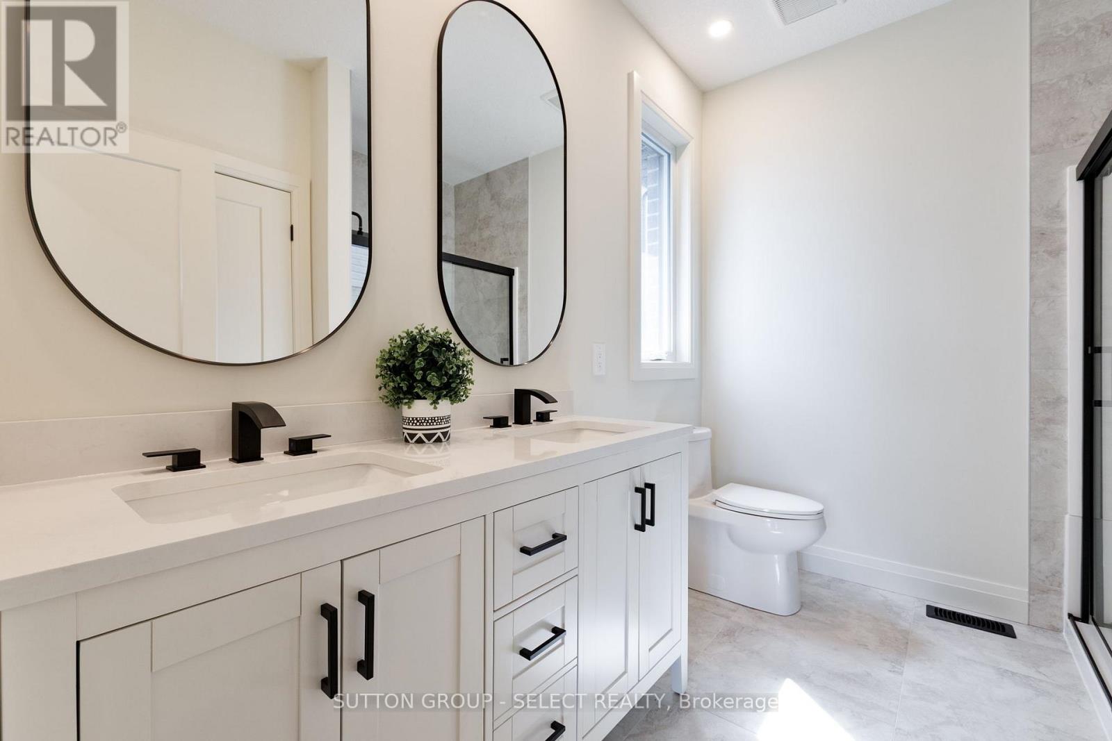 LAST 55FT LOT LEFT! Incredible oversized 3 CAR GARAGE open concept 3 bedrm one floor model with SECOND ENTRANCE from garage to fully functioning FINISHED basement with kitchenette, 2 bedrms, 4pc bathroom and HUGE familyrm situated on generous pool sized lot (55ft x 127ft) with rod iron fence across back and trees planted. You will be impressed the moment you enter the front door with the finishes throughout this home including a Designer kitchen with breakfast bar island, quartz counter tops, valance lighting and backsplash. Great room with upgraded gas fireplace. Master bedroom suite with walk in closet and luxury ensuite with glass shower. Nicely sized additional bedrooms with close access to 4pc bath. Main floor laundry with garage access. Loads of potlights included! 200 AMP service. Approx 2800sqft finished. Rich hardwoods throughout main living areas, tile in laundry and baths, solid surface counter tops, central air, concrete driveway, upgraded stone on front elevation...the list goes on! Flexible closing - quick close anytime if needed! Lets make a deal! View today! (id:51300)