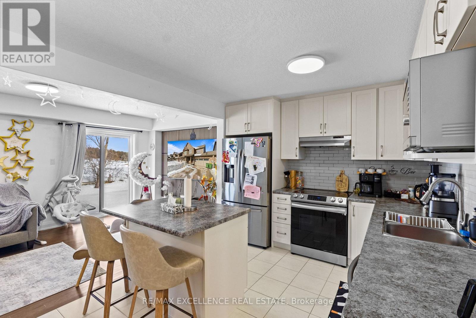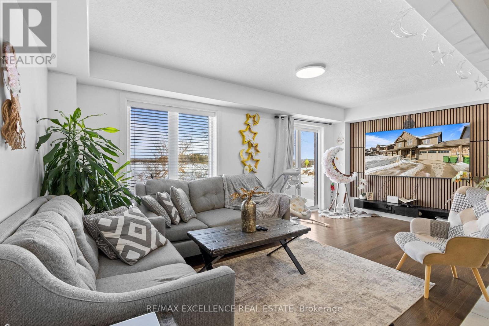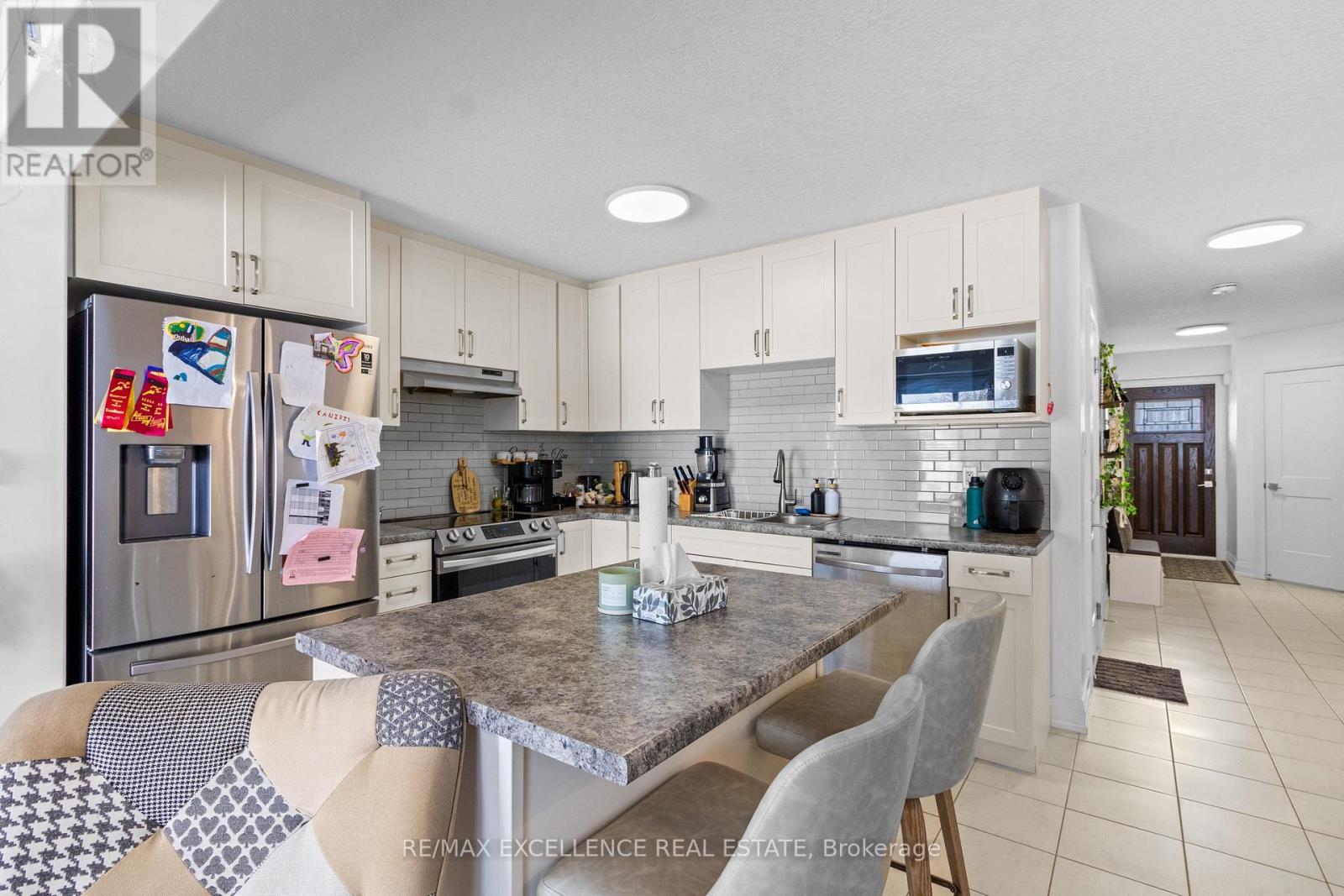 Welcome to 160 Stonebrook Way , a Beautiful upgraded Townhome offering modern comfort and functionality. Spacious entry with closet and powder room leads to an open-concept kitchen anddining area with tile flooring. Bright living room with hardwood floors and walk-out to a new deck (2023). The second floor features a generous primary suite with double doors, walk-incloset, and 3-piece ensuite, plus two additional bedrooms, a full bathroom, and convenient second-floor laundry. Finished basement with recreation room, 3-piece bath, multiple storagerooms, and a freezer. Additional upgrades include smart appliances, upgraded lighting, water softener, sound proof TV wall, security system, and automatic garage door opener. Durable brick exterior, paved driveway, and remaining Tarion warranty provide worry-free living. (id:51300)