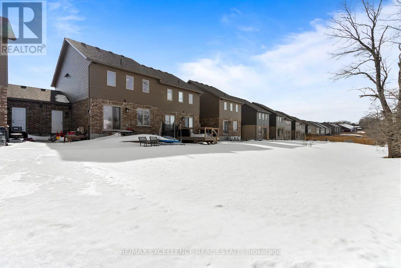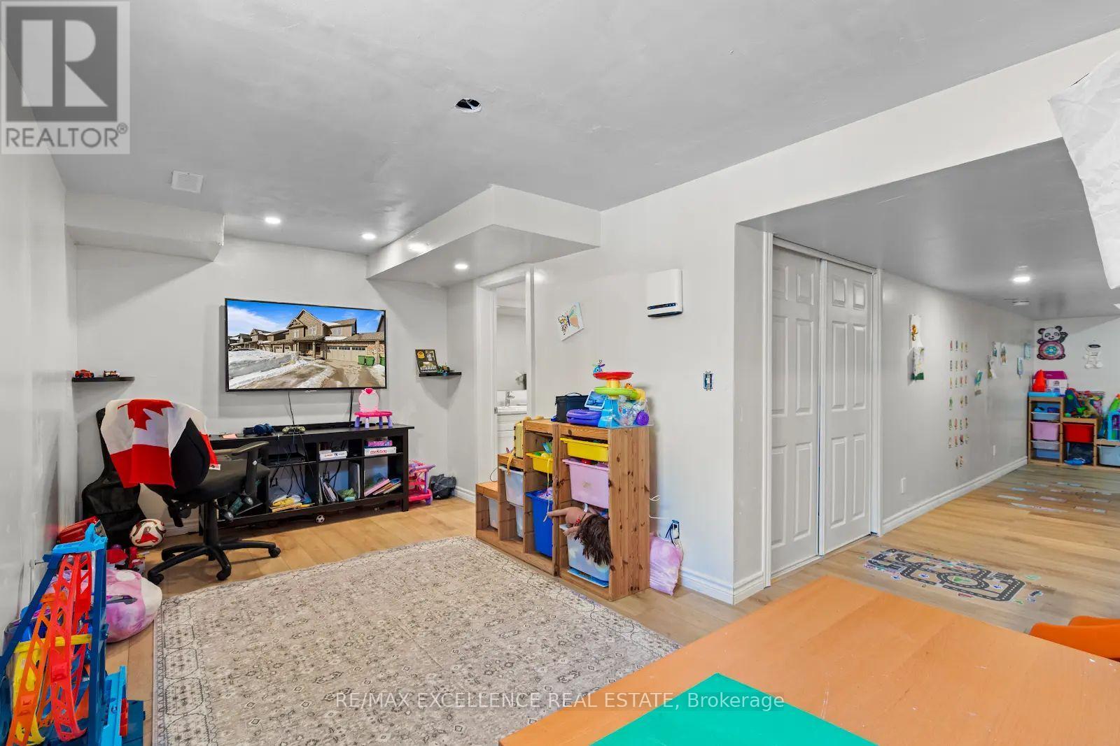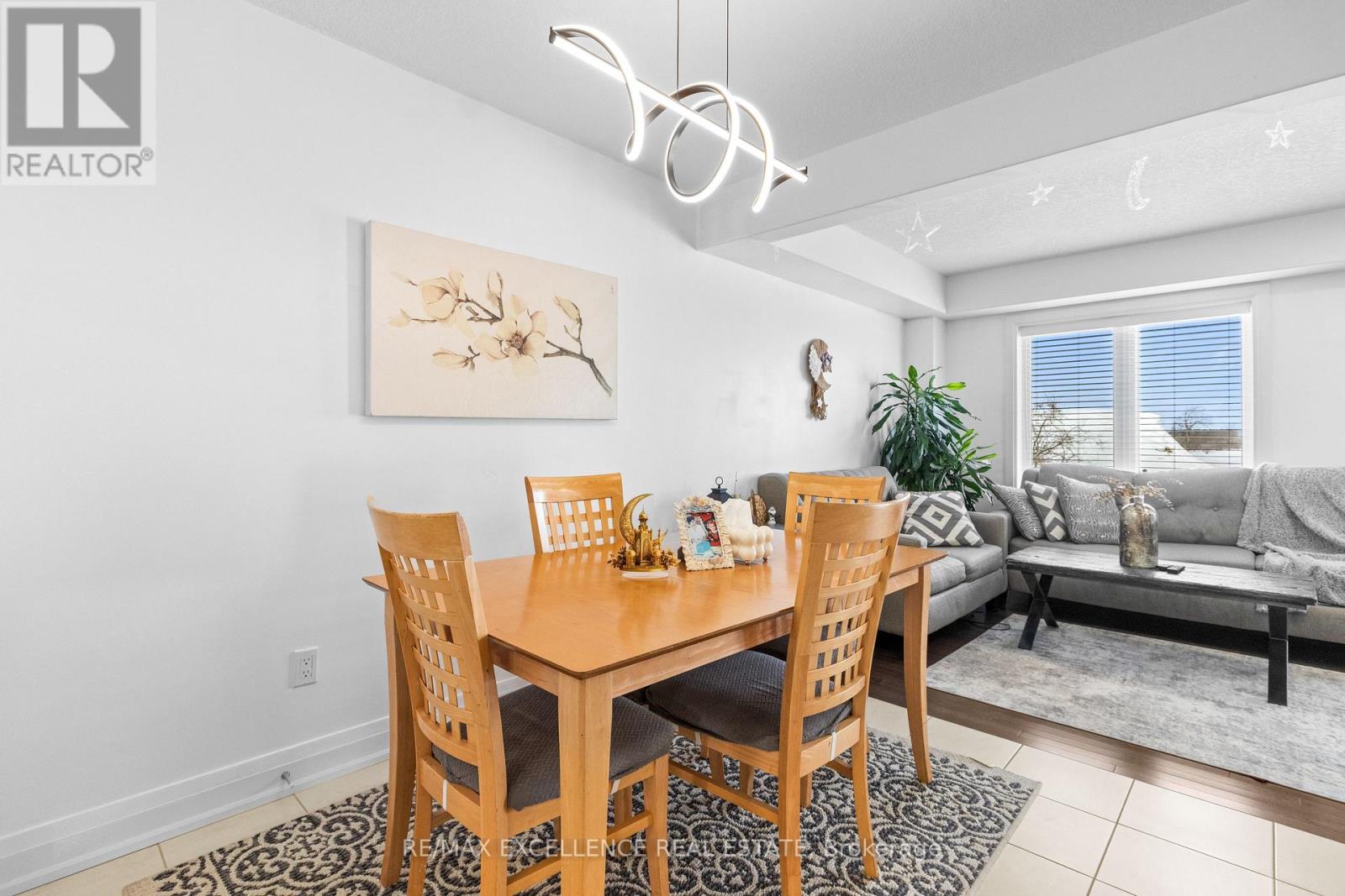 Welcome to 160 Stonebrook Way , a Beautiful upgraded Townhome offering modern comfort and functionality. Spacious entry with closet and powder room leads to an open-concept kitchen anddining area with tile flooring. Bright living room with hardwood floors and walk-out to a new deck (2023). The second floor features a generous primary suite with double doors, walk-incloset, and 3-piece ensuite, plus two additional bedrooms, a full bathroom, and convenient second-floor laundry. Finished basement with recreation room, 3-piece bath, multiple storagerooms, and a freezer. Additional upgrades include smart appliances, upgraded lighting, water softener, sound proof TV wall, security system, and automatic garage door opener. Durable brick exterior, paved driveway, and remaining Tarion warranty provide worry-free living. (id:51300)