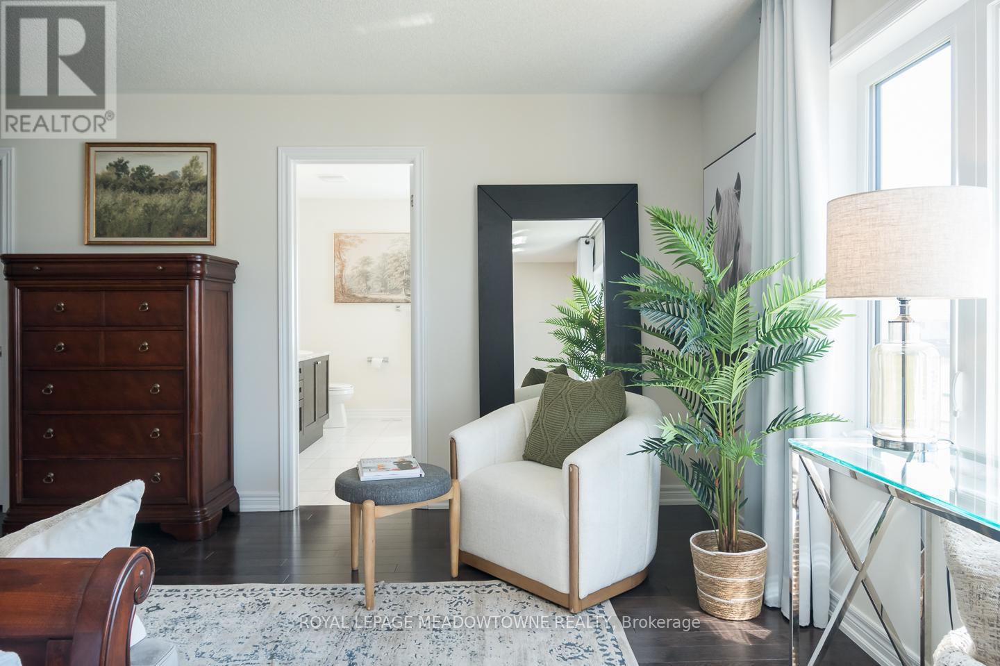 Discover this beautifully upgraded detached home, perfectly positioned just minutes from Rockwood Conservation Area and the charming downtown core. Ideal for families, its steps to the library, parks, and school, with a fully fenced backyard that backs onto school grounds. Offering parking for four (two in the garage and two on the driveway), this home features 9ft ceilings on the main floor, upgraded stairs and railings, smooth ceilings, and elegant wainscotting details. The main floor also includes a private office and convenient laundry room with interior garage access. The bright eat-in kitchen is a showstopper, boasting quartz countertops with a waterfall island and matching backsplash, stainless steel appliances, extended cabinetry with crown moulding, and abundant storage. The open-concept family room features a cozy gas fireplace, while the distinct dining area is perfect for entertaining, both enhanced by hardwood flooring and upgraded lighting. Upstairs, spacious bedrooms offer hardwood floors and large closets, including a primary suite with a walk-in closet and a luxurious 5-piece ensuite with a vessel tub. The versatile flex space can easily be converted to an additional bedroom. Bathrooms throughout are thoughtfully upgraded with beveled tiles and extra drawers in vanities, including a Jack and Jill bath and another 4pc main bath. The pre-planned open basement, with larger windows and cold cellar, awaits your personal touch, complete with sump pump, water softener, and reverse osmosis system. A must-see home blending comfort, style, and convenience! (id:51300)