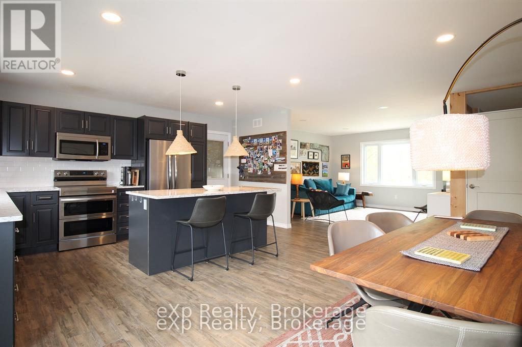 There is a sense of peace and tranquility that washes over you at 172 North Street. It's not just the quality and intention of the space or the way the home is thoughtfully positioned on the land-it's the feeling that life naturally slows here. Mature trees, curated gardens, and open skies create a setting that feels both purposeful and effortlessly calm. Mornings unfold quietly with coffee on the deck, birdsong in the background, and views of a backyard that feels private, grounded, and alive with the seasons.Inside, the home supports connection without feeling crowded. The open-concept main floor invites shared meals, relaxed conversations, and everyday moments that linger longer than expected. The kitchen becomes a gathering place, equally comfortable for family routines or hosting friends. Three Main-floor bedrooms offer comfort and ease, while the primary suite with direct access to the main floor bathroom feels like a personal retreat at day's end.The lower level introduces a different rhythm, warm, welcoming, and incredibly versatile. For the current owners, its licensed hosted short-term stay accommodation offering an open concept family room, Kitchen and dining room, two large bedrooms and a 4-piece bathroom. This space has provided a welcomed second income stream, seamlessly integrated into the home without disrupting daily life. For a future owner, that same opportunity remains, whether as supplemental income, a guest retreat, or space for extended family. The fireplace anchors the room, making evenings feel cozy and unhurried. Life in Eugenia is defined by Bruce Trail hikes, Beaver River paddling, Lake Eugenia swimming, fishing and boating, while skiers enjoy everything the Beaver Valley Ski Club offers. Nearby amenities and neighbouring communities stay close and convenient. This home delivers balance: privacy without isolation, flexibility without pressure, and a lifestyle that feels intentional and deeply restorative. (id:51300)