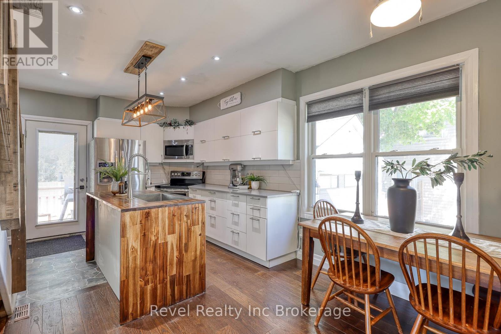 Welcome to 174 Delatre St in Thamesford! This beautiful 3-bedroom, 2-bath home is move-in ready and full of upgrades. Pride of ownership shines throughout, starting with the spacious open-concept main floor, featuring gleaming hardwood floors and a four season sunroom. The current owners have thoughtfully updated the home, including the completion of the upstairs primary suite with a walk-in closet and stunning ensuite bath. Energy efficiency has been enhanced with spray-foam insulation in the basement and upper level, R35 insulation in the rafters, and cellulose insulation added to the main-floor walls. Additional upgrades include new staircases, updated electrical with a new breaker panel, and more. Sitting on a large fully fenced lot with detached garage, there is nothing left to do but move in and enjoy this home. It is the perfect blend of comfort, style, and peace of mind. (id:51300)