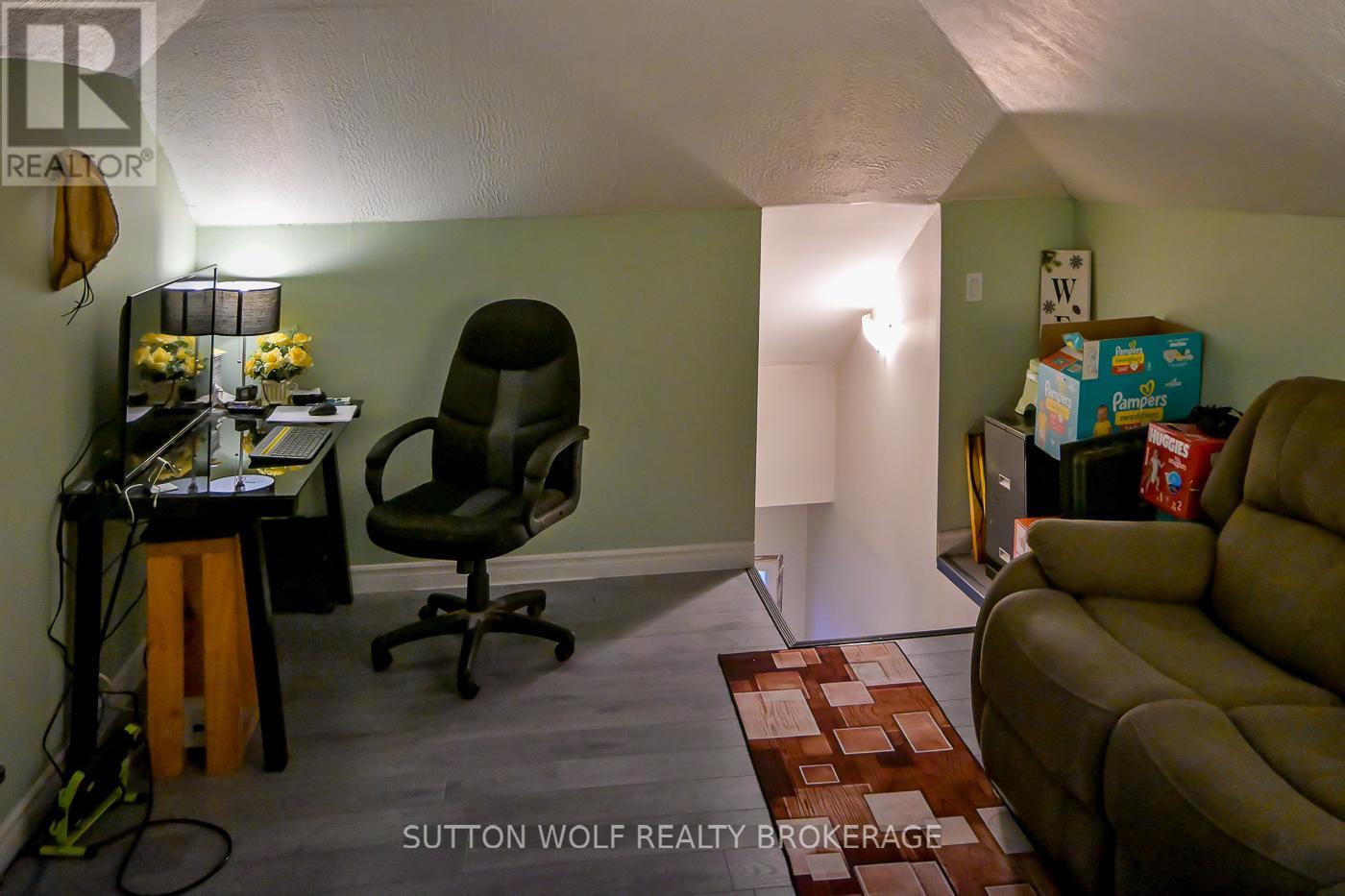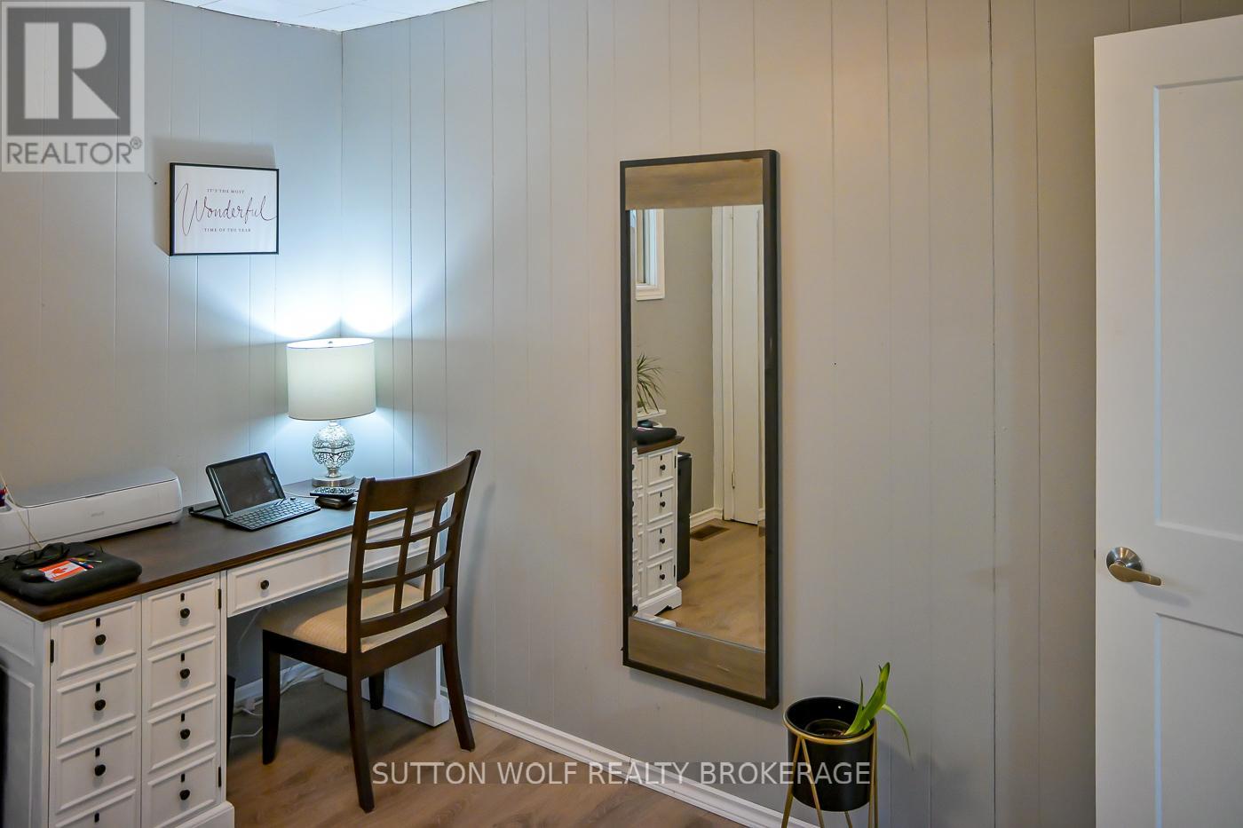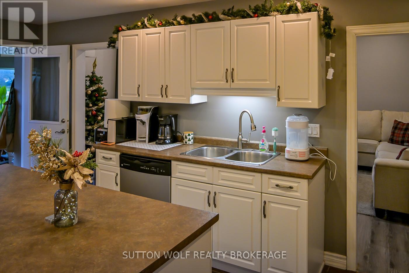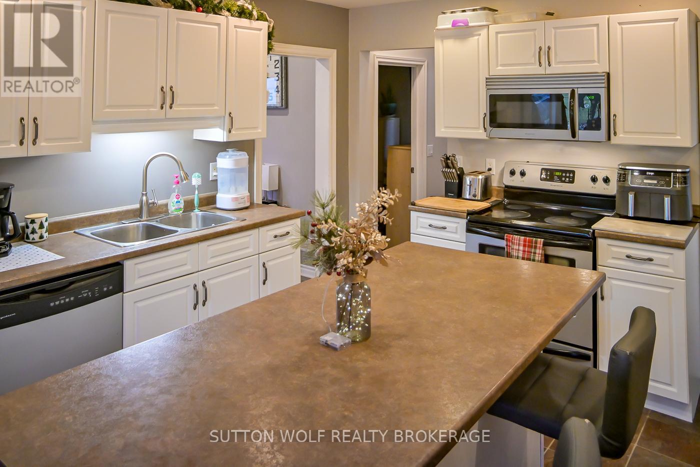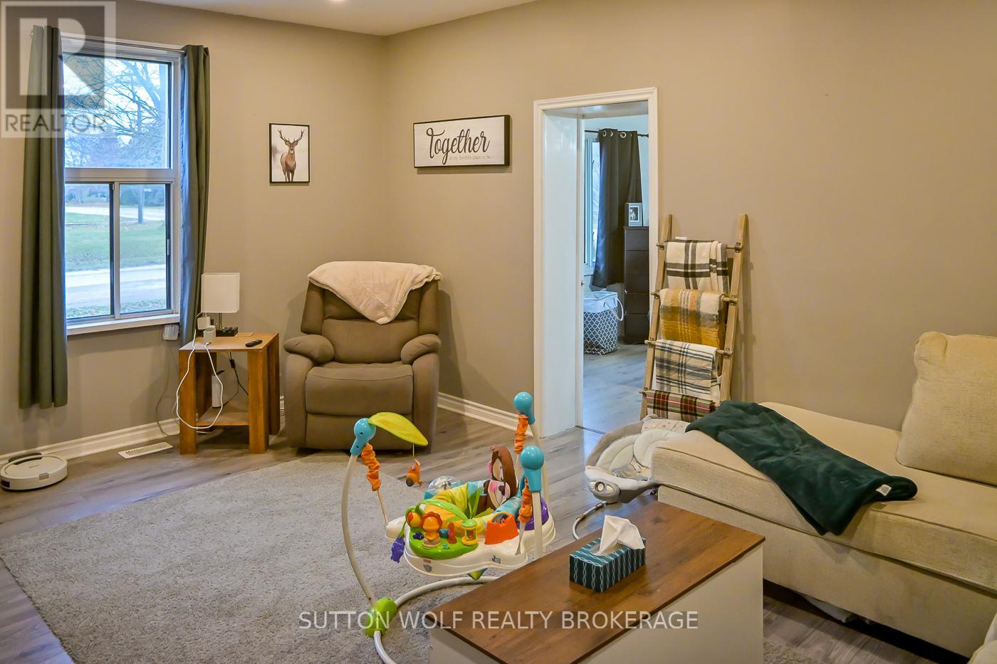 1748 Mackenzie Street in Kerwood presents a well-maintained one-and-a-half-story home situated on a private half-acre lot, offering both space and privacy while retaining the charm associated with small-community living. The layout is practical and welcoming, balancing traditional features with thoughtful updates. The main level includes a bright living room, an eat-in kitchen with a center island and five included appliances, and an adjacent sunroom that extends the living space and brings in natural light throughout the day. Main-floor laundry adds day-to-day convenience. The home provides two bedrooms on the main floor, with an additional bedroom on the upper level, as well as a dedicated office suitable for remote work or study. Mechanical systems are in strong order. The home is heated with a forced-air natural gas furnace paired with central air conditioning. A tankless hot water heater (owned) contributes to energy efficiency. Electrical service is supported by an updated hydro panel. The property also features a heated and insulated attached garage, approximately 28 by 21 feet, with a recently installed new concrete floor. This structure offers excellent utility for vehicles, hobbies, or workshop use.The lot size, interior updates, and functionality make this a compelling option for buyers seeking value, comfort, and space within a rural village setting. (id:51300)