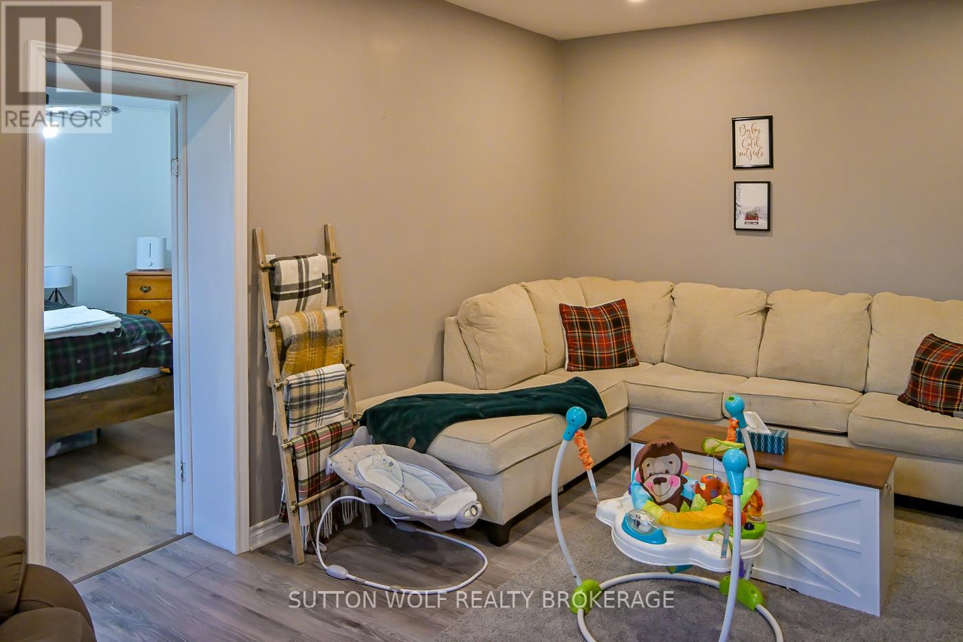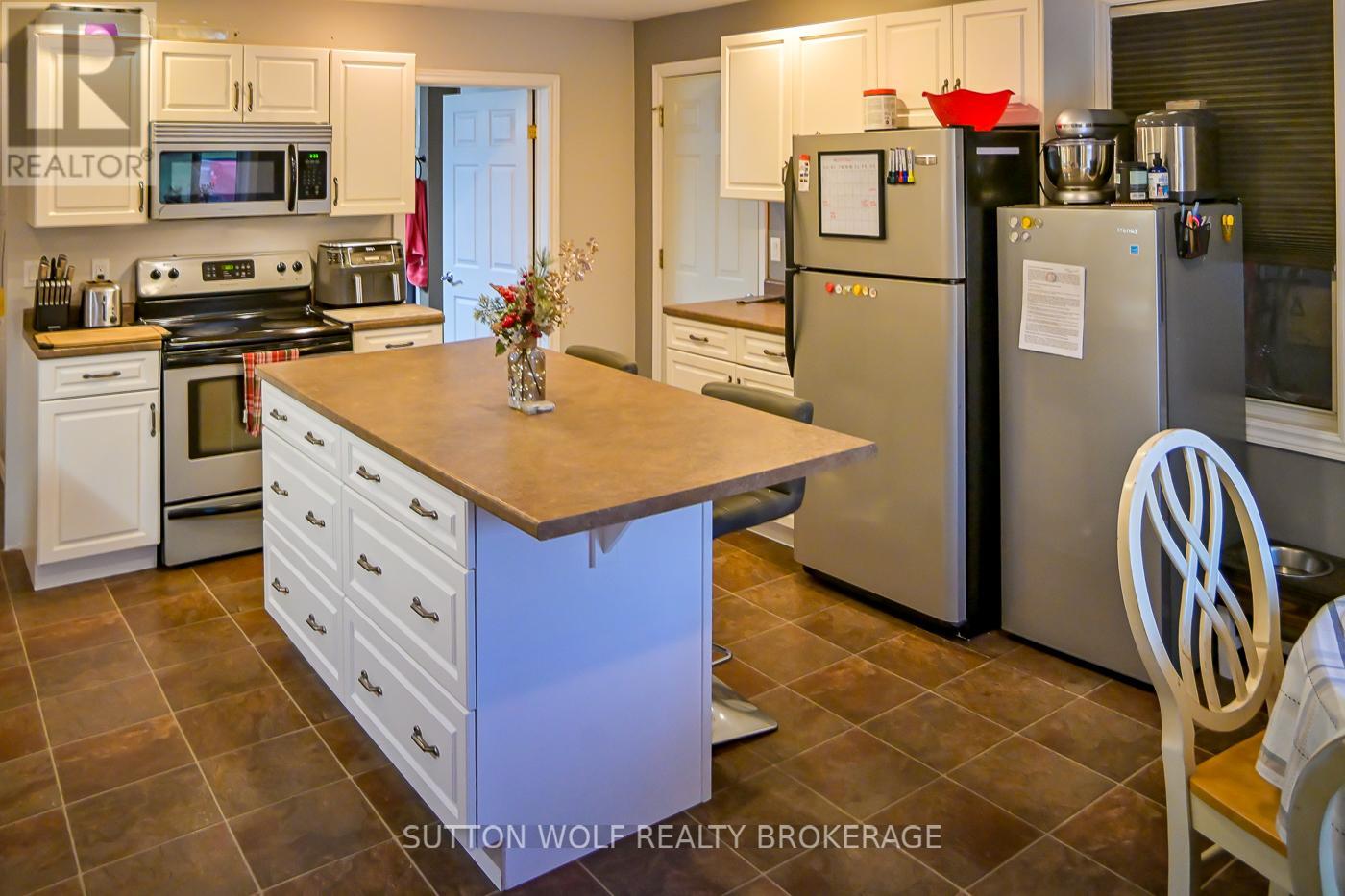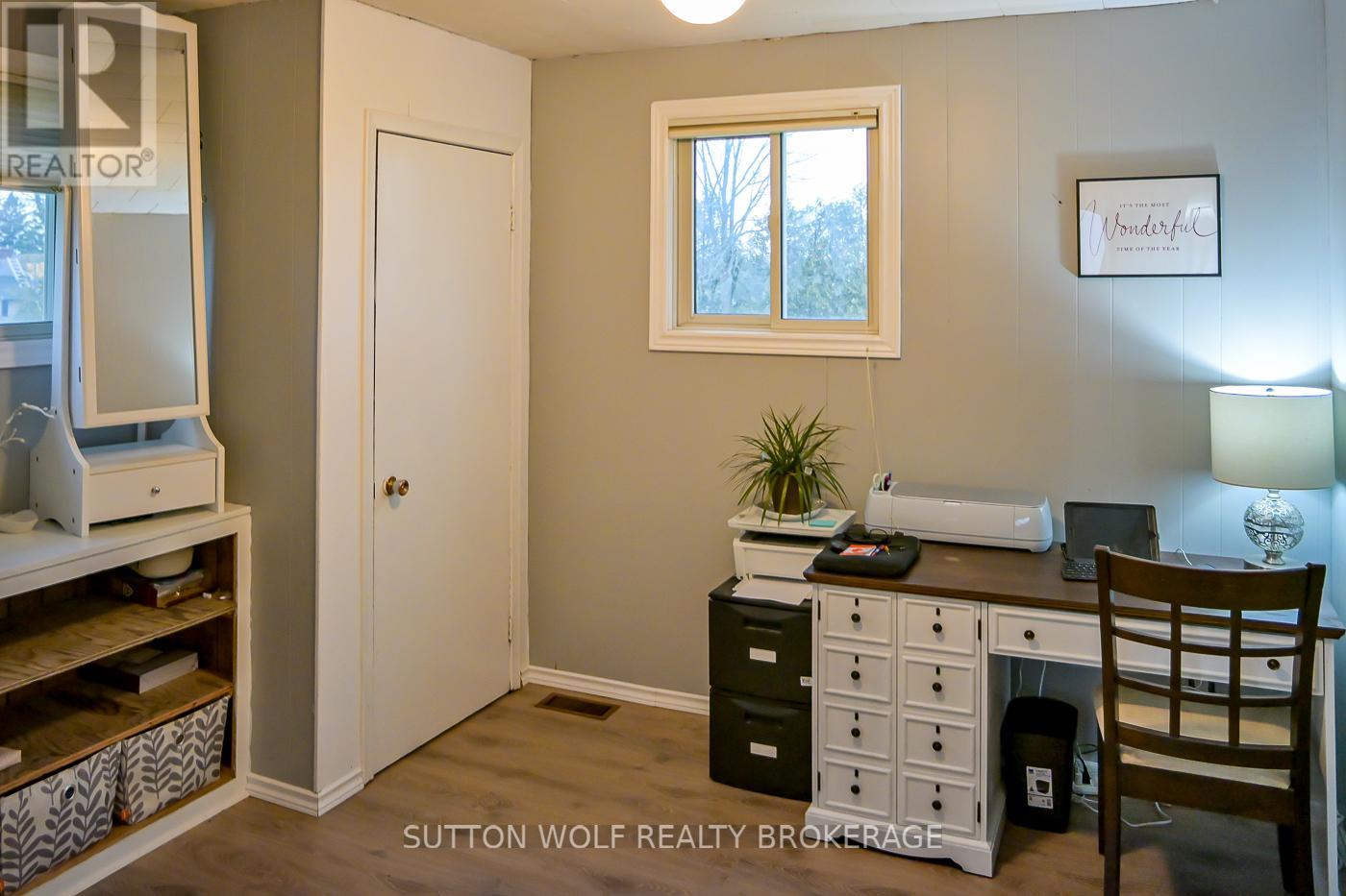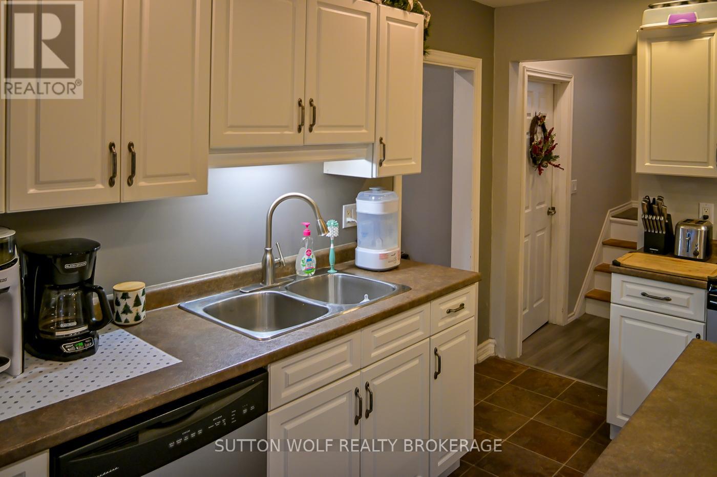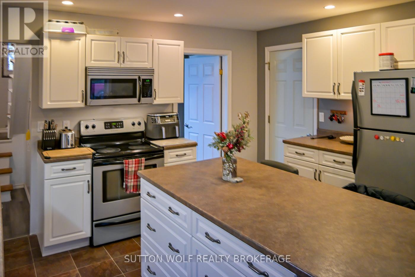 1748 Mackenzie Street in Kerwood presents a well-maintained one-and-a-half-story home situated on a private half-acre lot, offering both space and privacy while retaining the charm associated with small-community living. The layout is practical and welcoming, balancing traditional features with thoughtful updates. The main level includes a bright living room, an eat-in kitchen with a center island and five included appliances, and an adjacent sunroom that extends the living space and brings in natural light throughout the day. Main-floor laundry adds day-to-day convenience. The home provides two bedrooms on the main floor, with an additional bedroom on the upper level, as well as a dedicated office suitable for remote work or study. Mechanical systems are in strong order. The home is heated with a forced-air natural gas furnace paired with central air conditioning. A tankless hot water heater (owned) contributes to energy efficiency. Electrical service is supported by an updated hydro panel. The property also features a heated and insulated attached garage, approximately 28 by 21 feet, with a recently installed new concrete floor. This structure offers excellent utility for vehicles, hobbies, or workshop use.The lot size, interior updates, and functionality make this a compelling option for buyers seeking value, comfort, and space within a rural village setting. (id:51300)