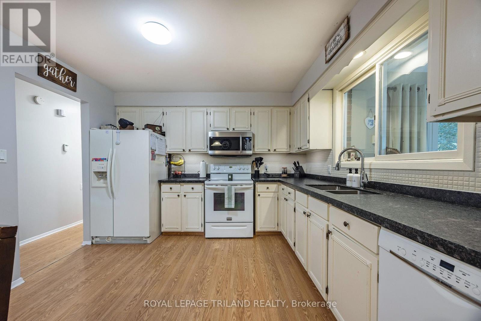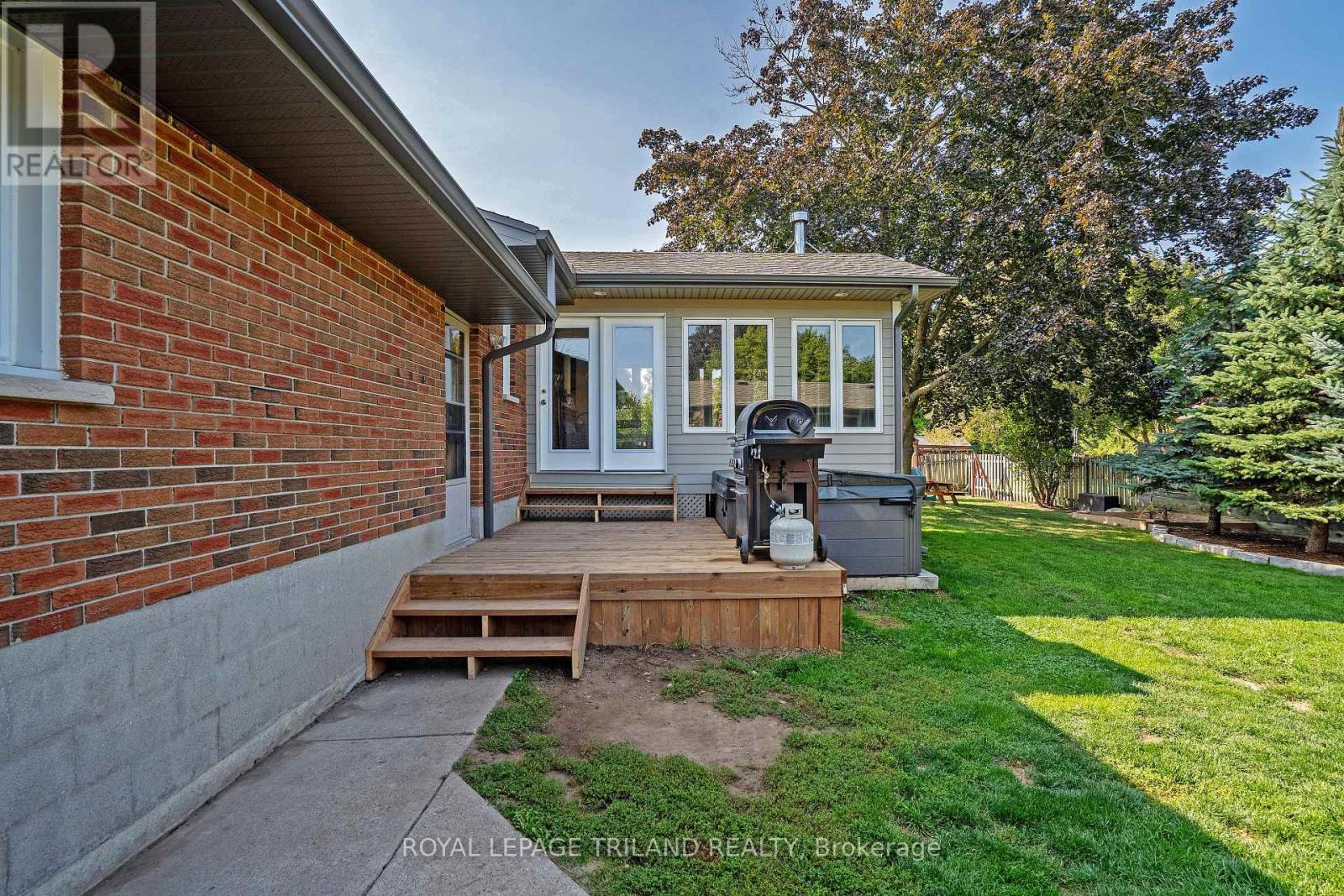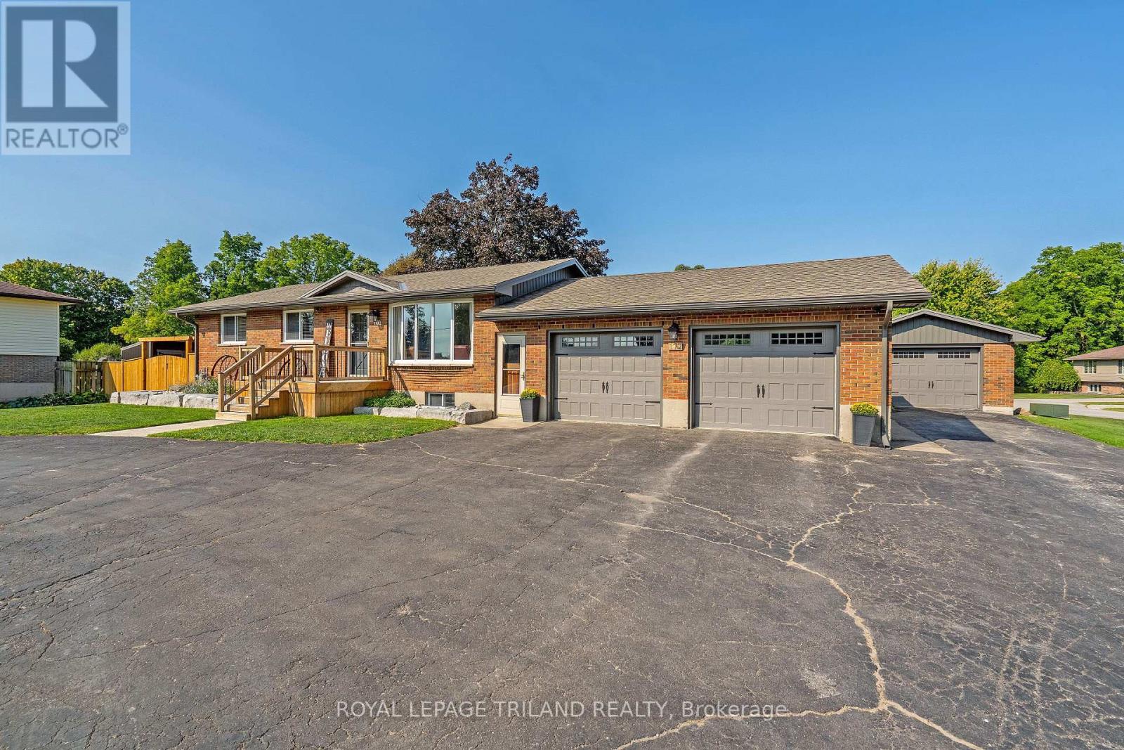 The home you have been waiting for!!!! This Fabulous Brick Bungalow sits on a double corner lot. Boasting, a paved semi-circle driveway, a huge double attached garage 27x24, plus a single detached garage, workshop or man cave 15x22 with 60 AMP service. The home features a country size Eat-in Kitchen with Granite Counter Tops 2024 and a very large Pantry. On top of this a Good Sized Living Room and Bonus Sun Room looking out over a Deck 2025 complete with Hot Tub and Landscaped Backyard featuring lots of Mature Trees and a New Shed 2025. Downstairs we have a Full Basement reno 2020, with a 40 by 12 Rec Room, Large Bathroom with Walk-in Glass Shower, Huge Laundry Room with Countertops and a 4th Bedroom or Office, Loads of Storage. On top of all this we have Garage Doors 2017, Furnace 2017, Windows 2018, Roof 2019, AC 2020, Siding, Soffit, Fascia and Eavestrough 2022, Owned Water Heater 2023, Lorex Security System 2024, Generator Plug and if that's not enough Permanent Christmas / Exterior Lighting 2024. Don't Miss This Opportunity to Own a Beautiful Property and a Quiet Lifestyle in the Village of Ailsa Craig. See this one First!!!! (id:51300)