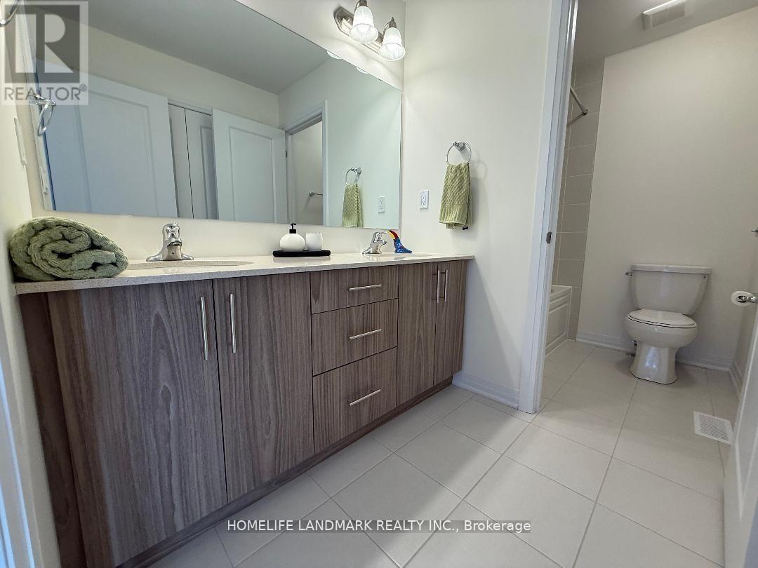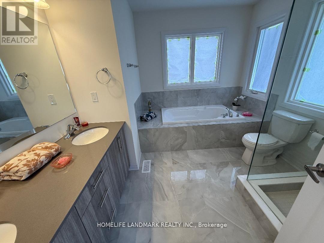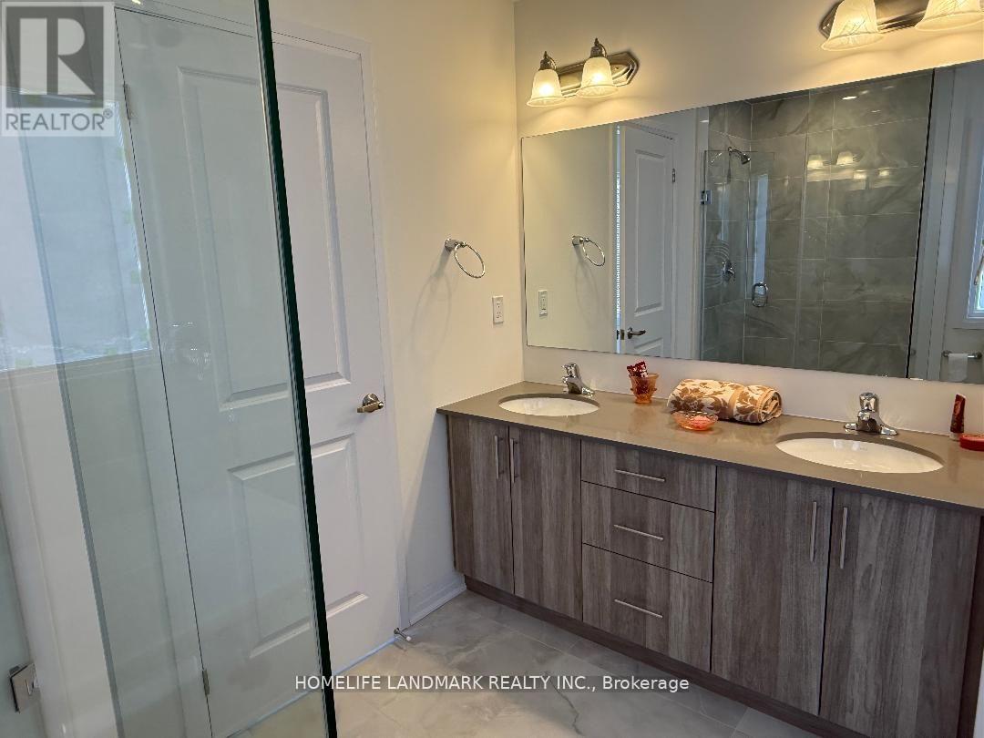 Welcome to new family oriented neighborhood!!! New, never, nobody lived in. Modern. Stylish. Sun filled. Long list of upgrades (see attachment). Only high quality materials and labor. Almost 3,000 sq. ft. of luxury living space (including finished basement). Mud room with closet. Open concept main floor, hardwood. Coffered ceiling with pot lights in huge living/dining area. Walk out to deck (roughed-in for gas BBQ). European style kitchen has tall cabinets (extra space). Granite countertop, under mount double sink. Large tile on the floor. Pot Lights. Hardwood staircase with iron pickets. 2nd Floor - sitting area, very convenient laundry location. All bedrooms are very spacious & bright, lots of natural light come inside thru the large windows. Prime bedroom has walk-in closet (for Her) & double doors closet (for him). Ensuite prime bathroom looks like "resort spa" - expensive porcelain tile around separate tub and on the floor, frameless glass shower, large vanity with 2 under mount sinks on quartz countertop. Very practical design of Main washroom - large double doors linen closet, separate room for tub & toilet, large vanity with 2 under mount sinks on quartz countertop. (id:51300)