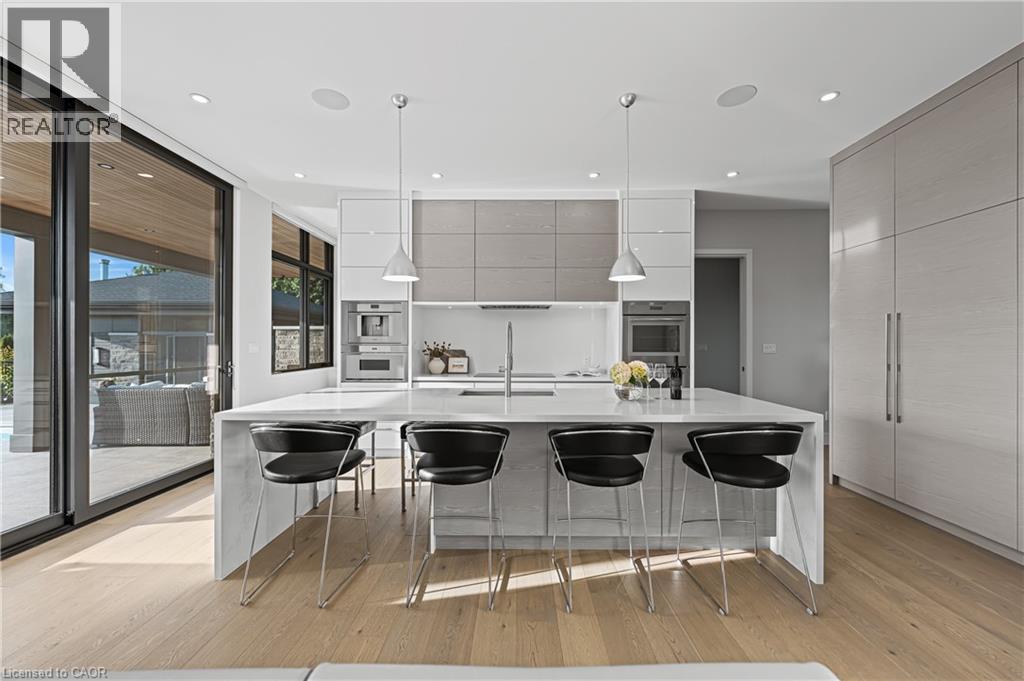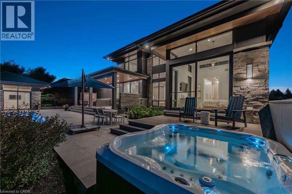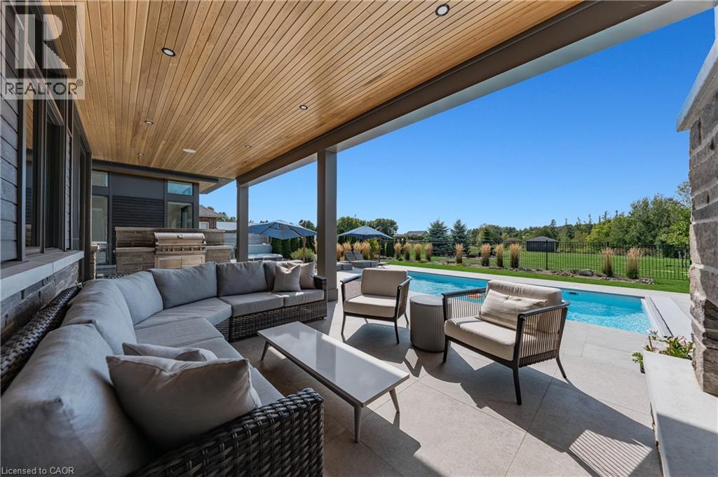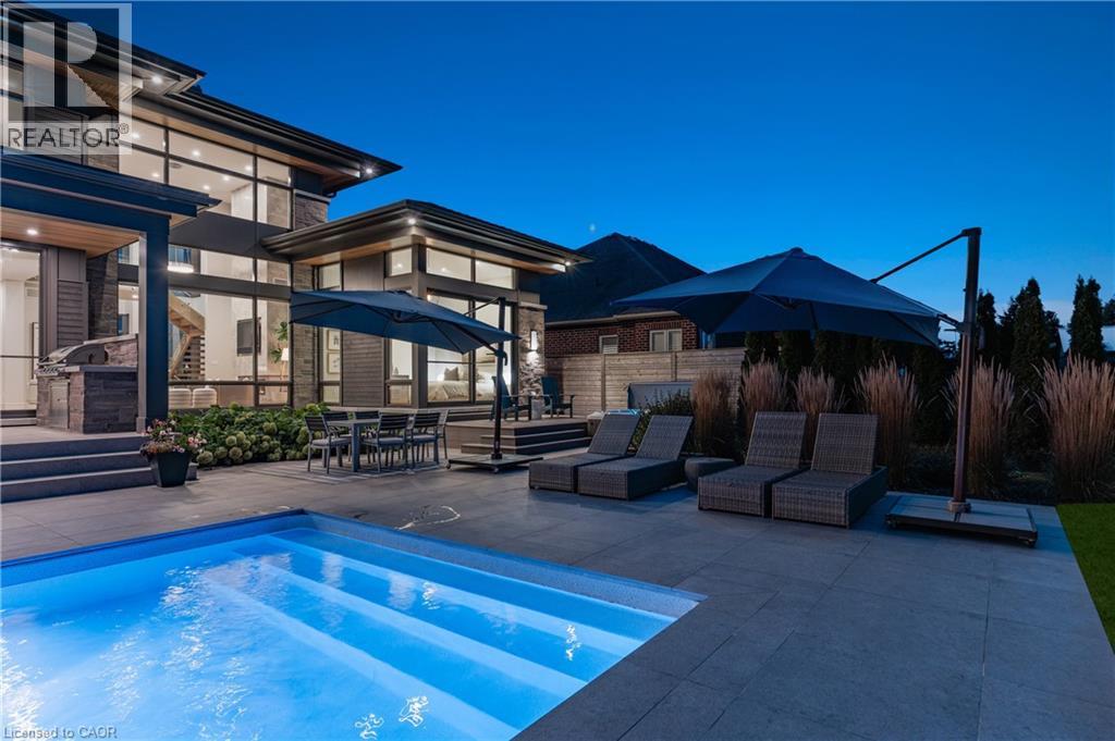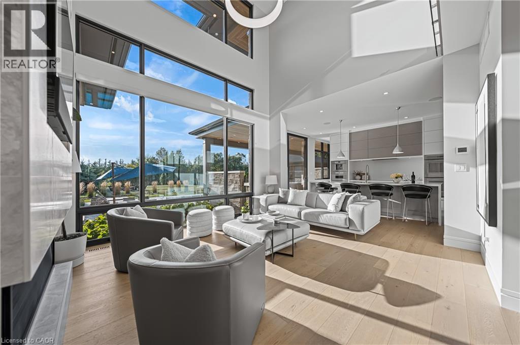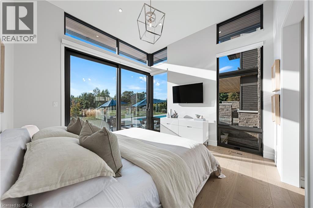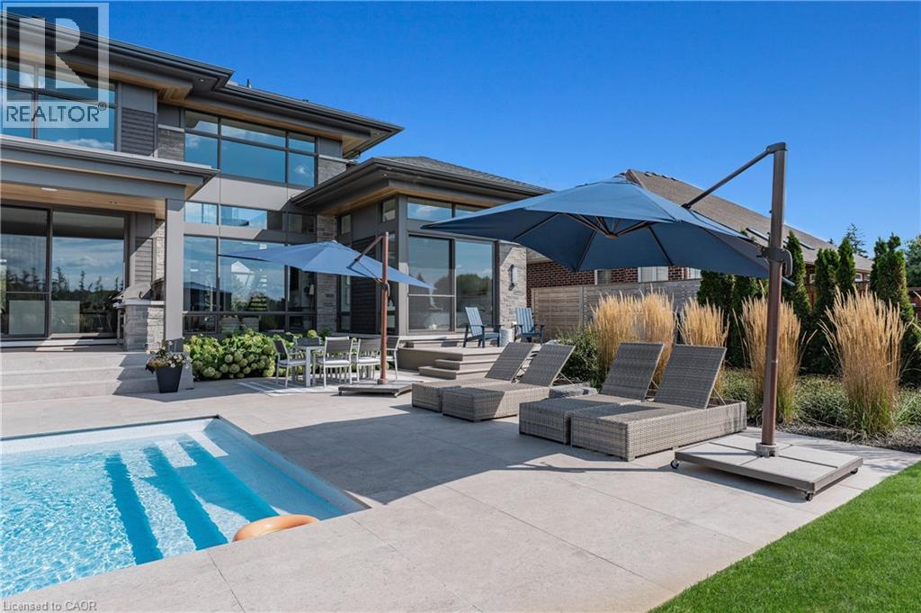 Welcome to 1826 Moser Young Rd in Wellesley, an incredibly rare offering that combines peaceful small-town living w/ uncompromising luxury just minutes to Waterloo & Kitchener. This 4,300+ SF, 4 bed, 6 bath architectural masterpiece, designed by David Small Designs & built by Slotegraaf Custom Homes, sits on a private 1+ AC lot backing onto greenspace. A home of this calibre, blending modern design, the finest finishes & true resort-style amenities, is seldom available. A dramatic 2-storey foyer w/ floating wood staircase & glass railings sets the tone. The great rm impresses w/ soaring ceilings, floor-to-ceiling windows & a porcelain-surround gas FP, framing spectacular views of the backyard oasis. The chef’s dream Thermador kitchen showcases a quartz waterfall island, W/I pantry & office nook, flowing seamlessly to the covered patio, outdoor kitchen & pool. The main-flr primary retreat is a private sanctuary w/ spa ensuite, dressing rm w/ wet/coffee bar & built-in laundry, plus direct access to the hot tub & yard. Upstairs, 2 bedrms each feature ensuites, W/I closets & 2nd laundry. The finished lower level is designed for entertaining, w/ a glass wine display wall, wet bar w/ beer tap & beverage fridges, media & games areas, wellness/fitness studio, plus guest bedrm & full bath-ideal for visitors or an in-law suite. Outdoors, western exposure captures sunsets across landscaped grounds. A heated saltwater pool is surrounded by imported Italian tile extending through the patio & covered porch. Completing this resort-like setting are a gas FP, outdoor kitchen, fire pit area, & cabana/flex studio w/ kitchenette & bath-perfect as a home office or guest suite. Additional highlights include a triple car garage incl. detached garage/workshop, 5-zone radiant in-flr heating, Control4 AV system & backup generator. Peaceful small-town living in Wellesley, minutes to the city, w/ resort-style living, architectural excellence & privacy, is truly a rare find-don’t miss out! (id:51300)