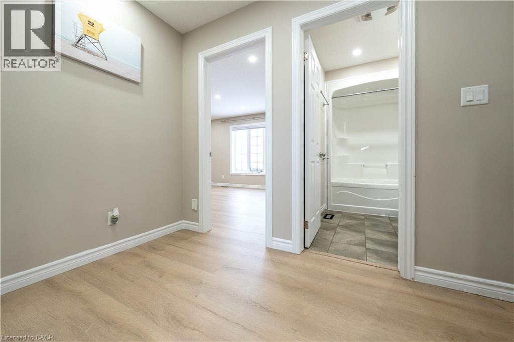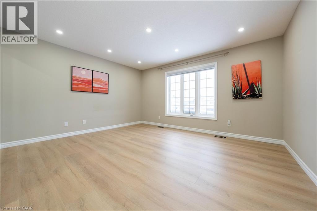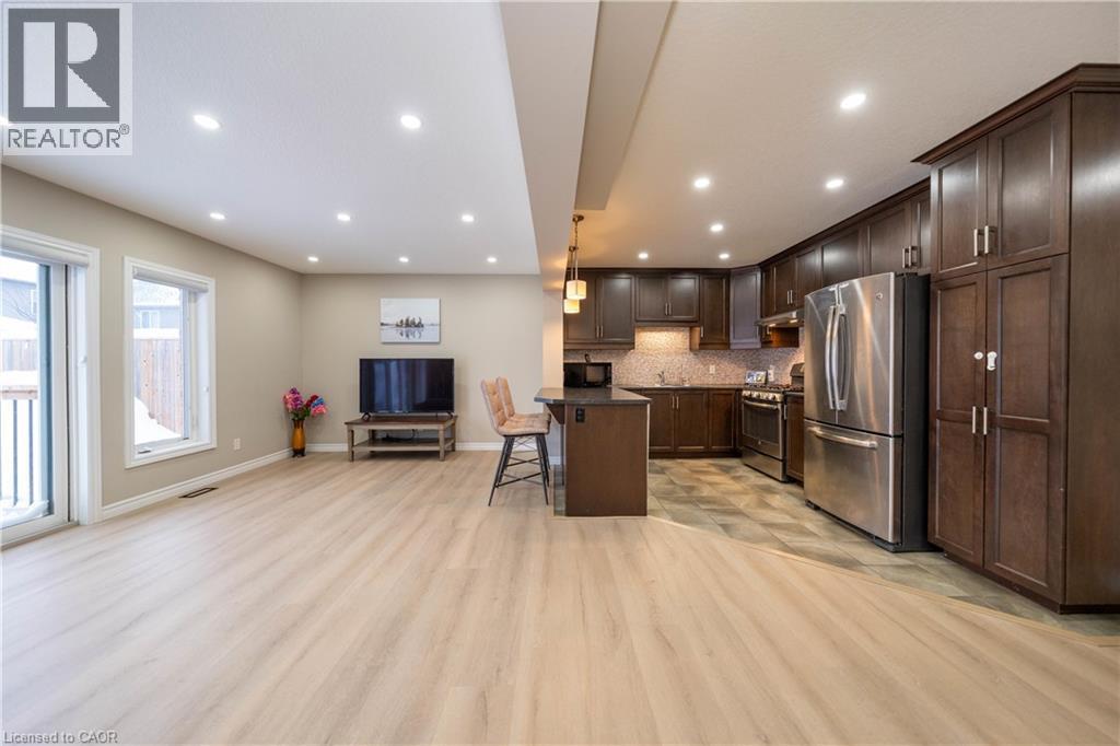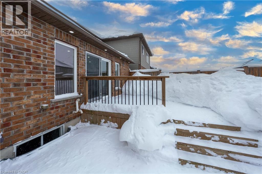 Exceptional move-in ready freehold townhome in a highly sought-after, well-established community, offering a rare detached-from-the-back design—attached only at the front for enhanced privacy, abundant natural light, and a bright, inviting atmosphere throughout. Thoughtfully designed, this home delivers the comfort and presence of a detached residence with the efficiency and ease of Townhome living. This Elegant open-concept layout is ideal for modern lifestyle. The chef-inspired kitchen features a spacious island, ample cabinetry, stainless-steel appliances, and a sliding door to the backyard, creating a seamless indoor-outdoor flow. The home offers 3 generous bedrooms, 3 full bathrooms, 1 powder room, and a fully finished basement, providing flexible living space for families, guests, or work-from-home needs. Primary Bedroom has the ensuite with Jacuzzi. Extensive upgrades include 12 mm premium laminate flooring throughout, matching laminated vents, solid wood stair posts and railings, pot lights inside and out, and custom window blinds. The 1.5-car garage offers an automatic opener, upper storage, and direct backyard access. Enjoy outdoor living on the 2022 deck. Smart and comfort features include Nest thermostat, Nest doorbell camera, built-in furnace humidifier, and central vacuum rough-in. Professionally designed front landscaping with concrete steps and fresh sod delivers outstanding curb appeal. Unbeatable family-friendly location: 2-minute walk to Stratford District Secondary School and St. Michael Catholic Secondary School, YMCA daycare, nearby elementary schools, bus stop at street end, minutes to Sobeys, No Frills, Giant Tiger, Tim Hortons, west Waterloo Regional Rd, Stratford Rotary Complex & Farmers’ Market (id:51300)