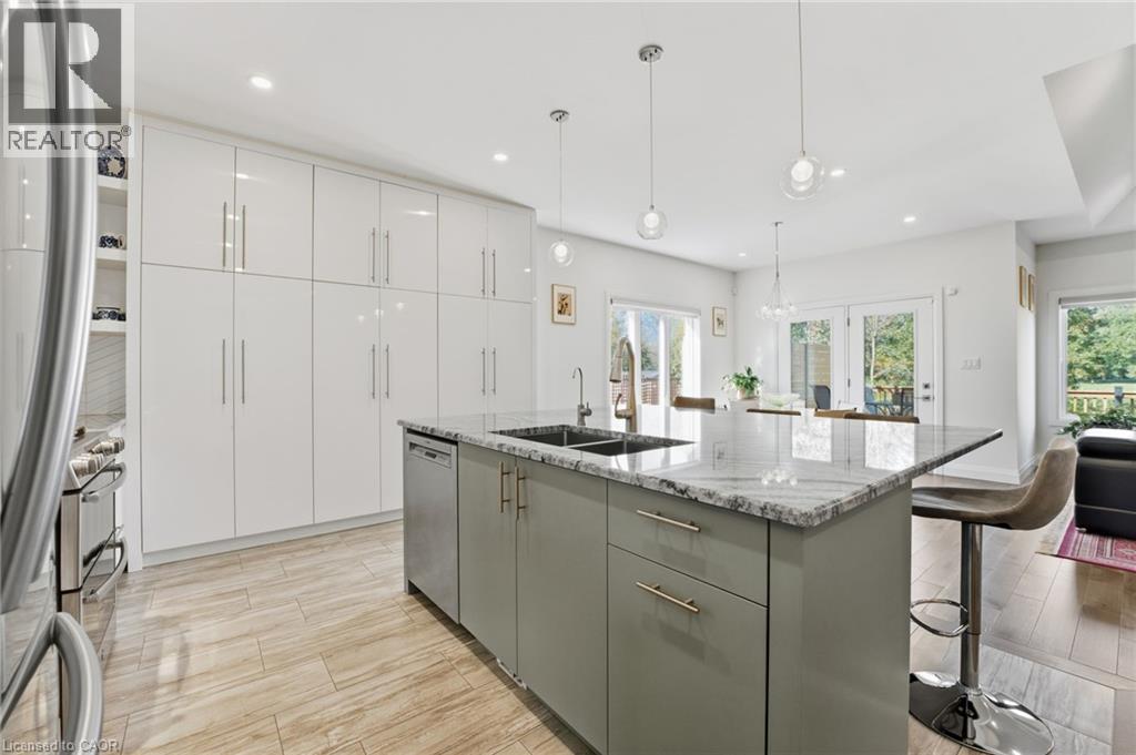 Welcome to 19 Gilmer Crescent, Listowel – Backing Onto the Golf Course! This beautifully maintained home, built in 2019, offers the perfect blend of modern design and everyday comfort — all while enjoying scenic views of the golf course from your own backyard. Step out onto the stunning two-tier deck, complete with an awning, ideal for entertaining or relaxing in style. Inside, you'll find a bright and spacious main level featuring hardwood flooring, a tray ceiling in the living room, and a cozy gas fireplace. The modern kitchen is a showstopper with flat panel cabinets offering ample storage, granite countertops, a stylish backsplash, and an oversized island with seating for four. The primary bedroom includes a large walk-in closet and a spa-like ensuite bathroom with double sinks, abundant storage, floor-to-ceiling tile, and a walk-in shower. Main-floor laundry adds convenience to daily living. The fully finished basement offers even more living space, with a generous rec room, two additional bedrooms, a full bathroom, and oversized windows that let in plenty of natural light. Throughout the home, bright neutral walls and pot lights enhance the modern, airy feel. Complete with a charming front porch and a double car garage, this home is ready to welcome its next owners. Don’t miss your chance to live in one of Listowel’s most desirable locations! (id:51300)
