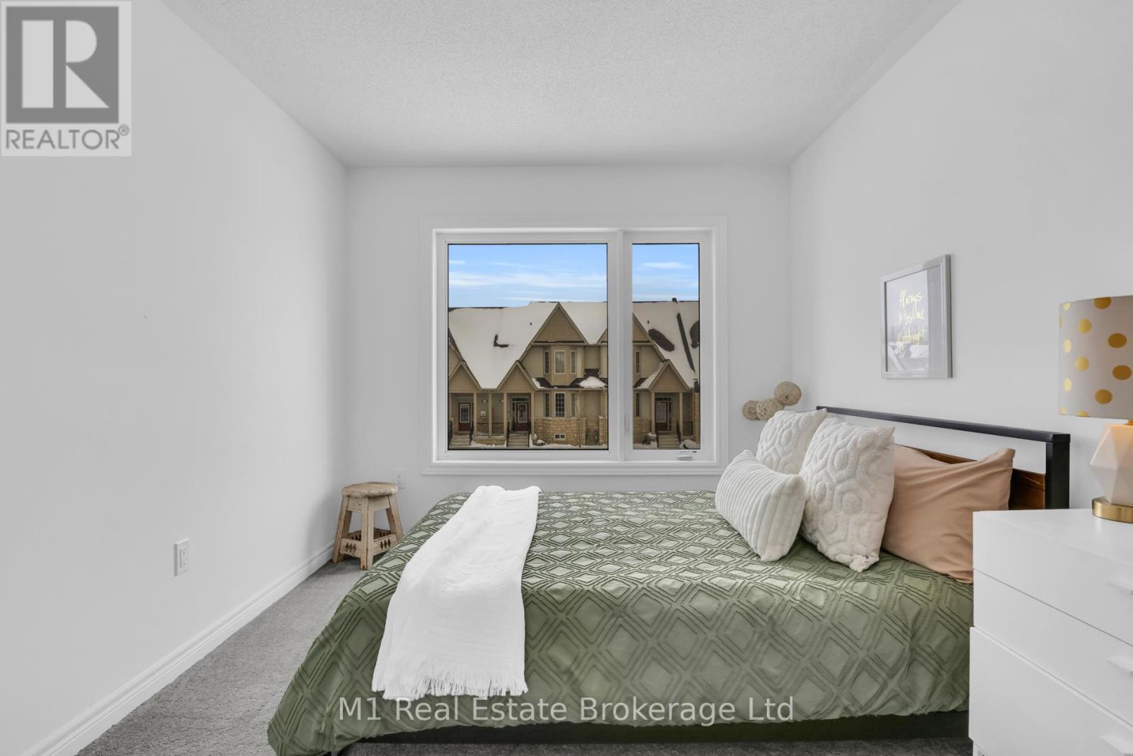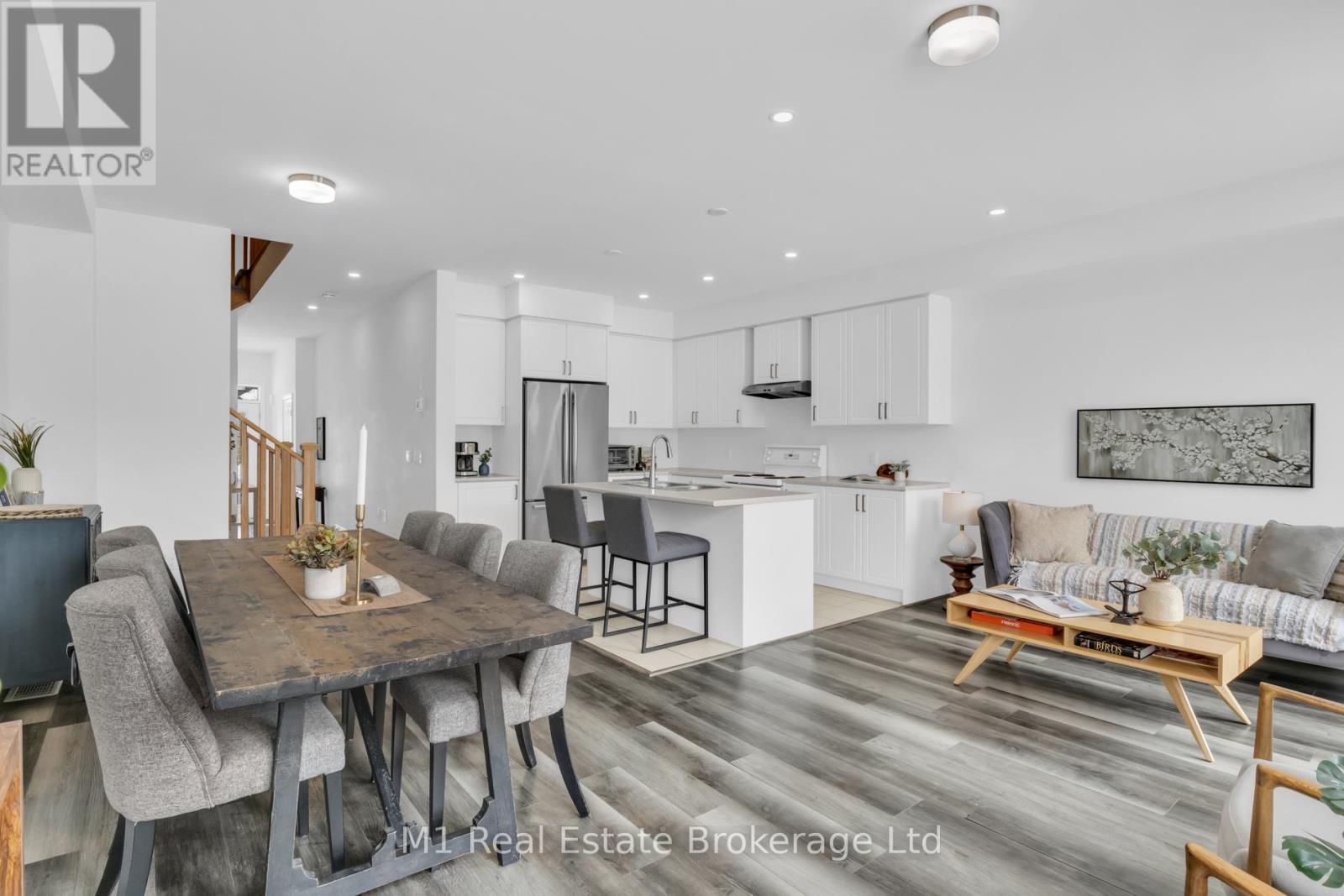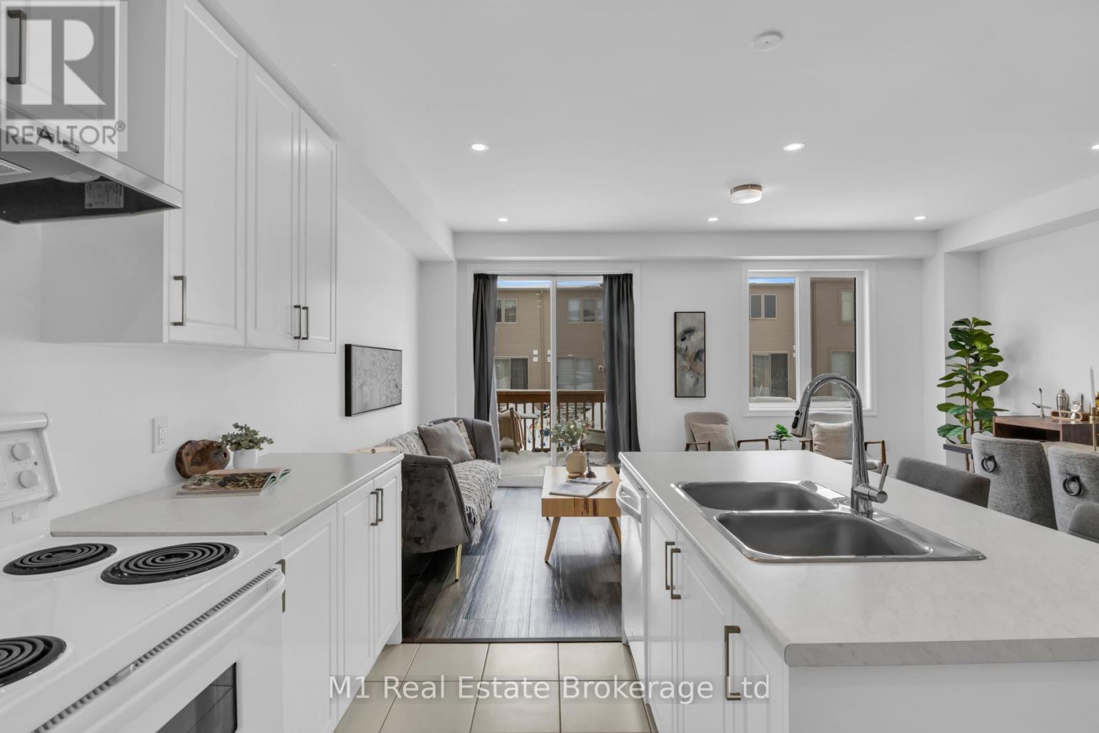 Welcome to 197 Farley Road, a well-designed freehold townhome located in the desirable Storybrook community of Fergus. This modern two-storey home offers approximately 1,742 sq. ft. of finished living space with three bedrooms and three bathrooms, providing a practical layout suited to everyday living. The main floor features a bright, open-concept design anchored by a contemporary kitchen with ample cabinetry, a large centre island, and quality finishes throughout, flowing seamlessly into the main living area. Upstairs, the primary bedroom includes a walk-in closet and a private four-piece ensuite, while two additional bedrooms share a full main bath. Upper-level laundry adds everyday convenience, and the unfinished basement offers excellent potential for future living space with existing rough-ins already in place. Exterior highlights include attractive brick and stone finishes, a covered front porch, and an attached garage with interior access. Ideally located close to schools, parks, trails, recreation facilities, and Groves Memorial Community Hospital, this home offers a low-maintenance lifestyle in one of Fergus's established newer neighbourhoods. (id:51300)