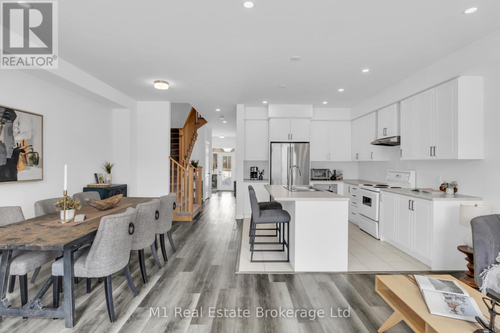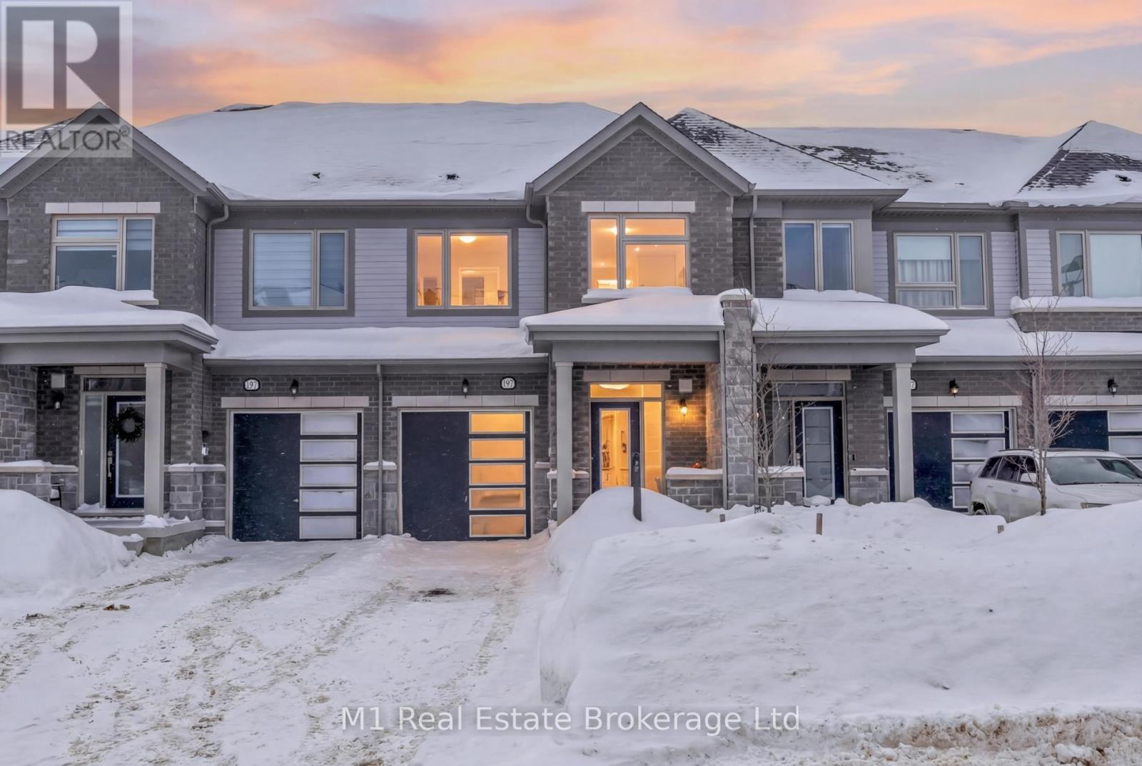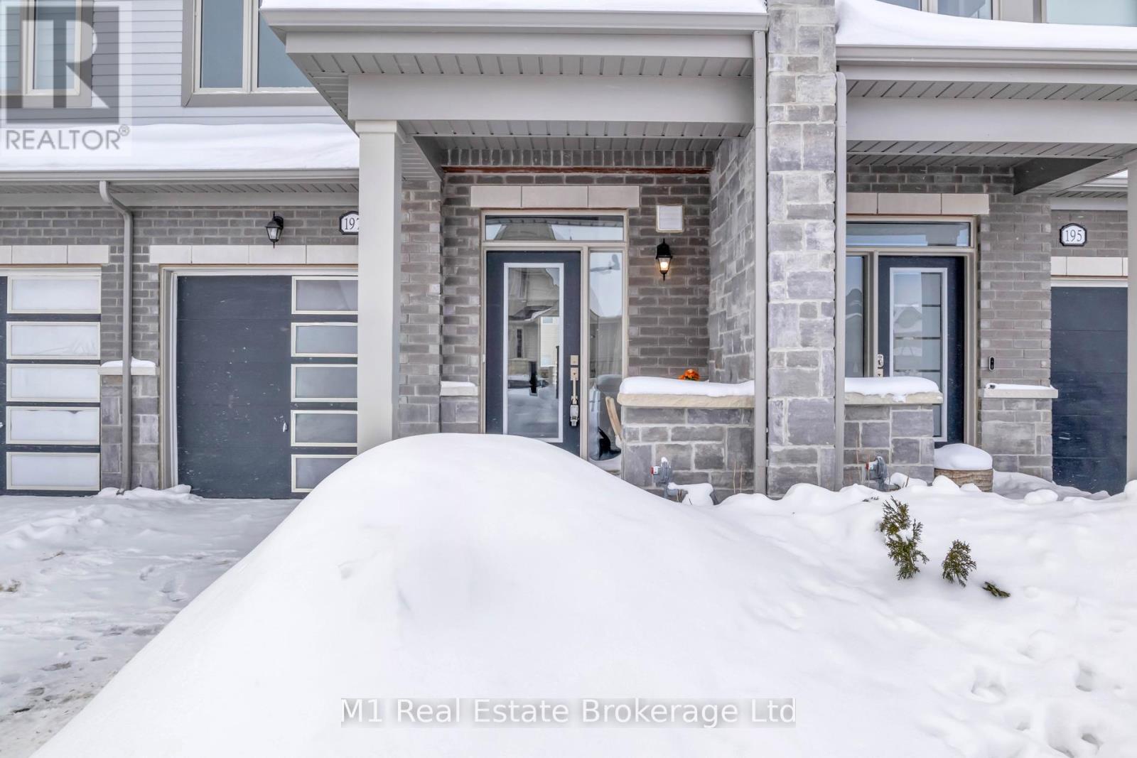 Welcome to 197 Farley Road, a well-designed freehold townhome located in the desirable Storybrook community of Fergus. This modern two-storey home offers approximately 1,742 sq. ft. of finished living space with three bedrooms and three bathrooms, providing a practical layout suited to everyday living. The main floor features a bright, open-concept design anchored by a contemporary kitchen with ample cabinetry, a large centre island, and quality finishes throughout, flowing seamlessly into the main living area. Upstairs, the primary bedroom includes a walk-in closet and a private four-piece ensuite, while two additional bedrooms share a full main bath. Upper-level laundry adds everyday convenience, and the unfinished basement offers excellent potential for future living space with existing rough-ins already in place. Exterior highlights include attractive brick and stone finishes, a covered front porch, and an attached garage with interior access. Ideally located close to schools, parks, trails, recreation facilities, and Groves Memorial Community Hospital, this home offers a low-maintenance lifestyle in one of Fergus's established newer neighbourhoods. (id:51300)