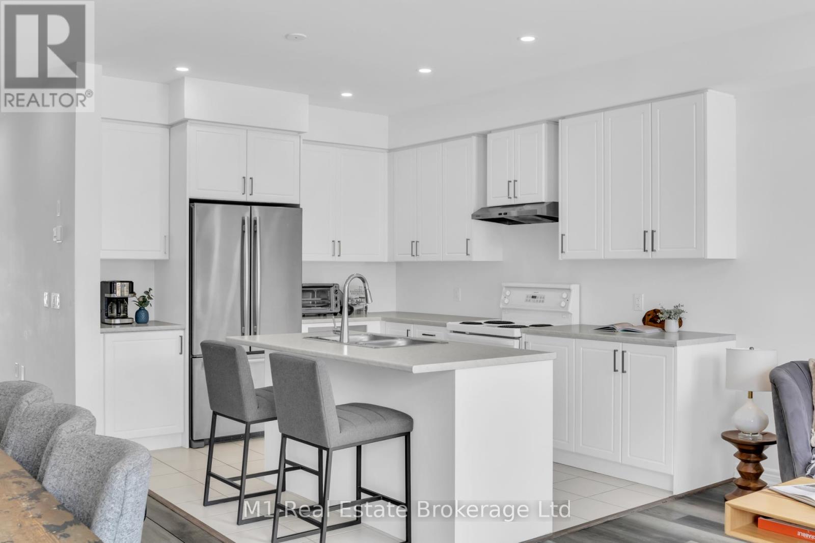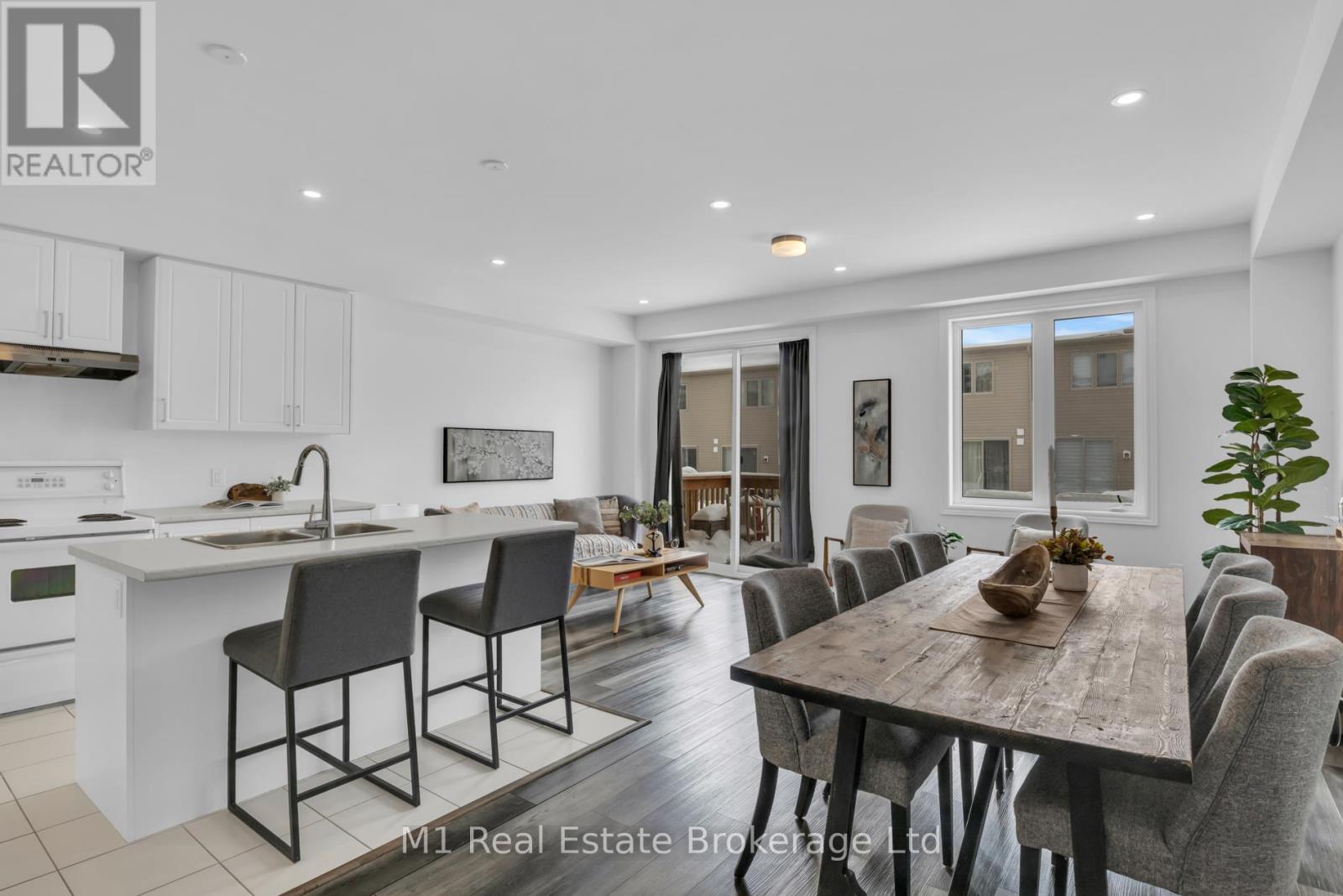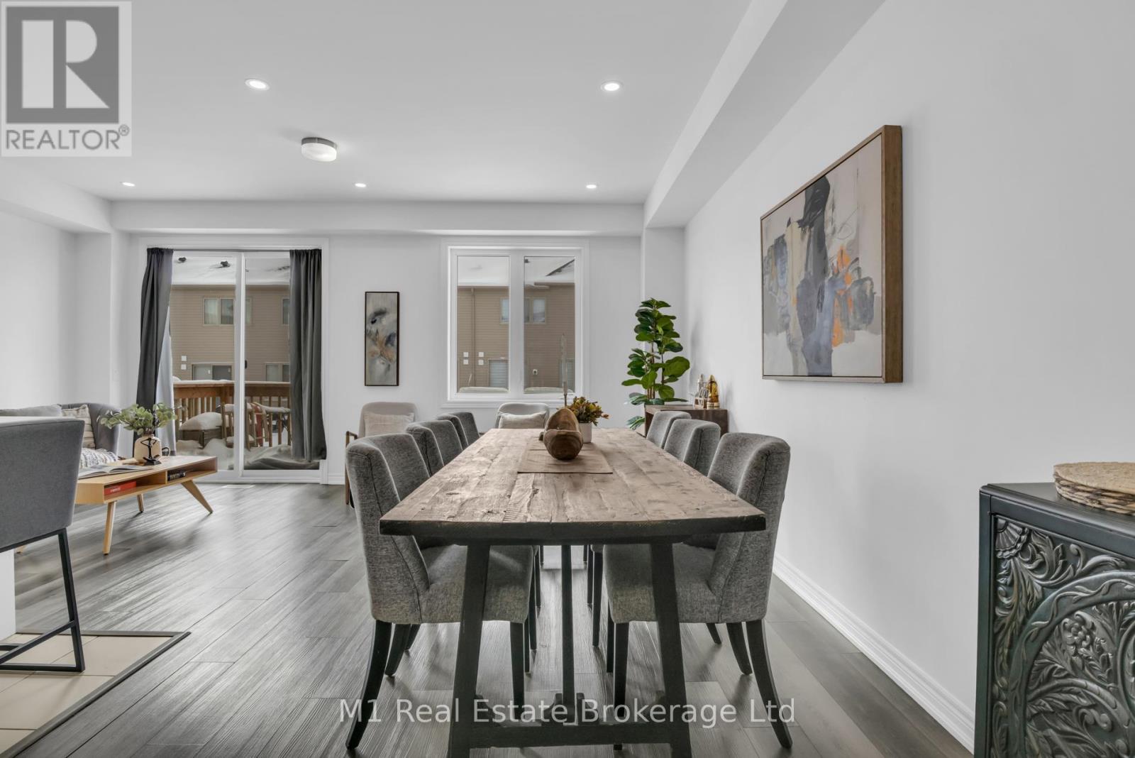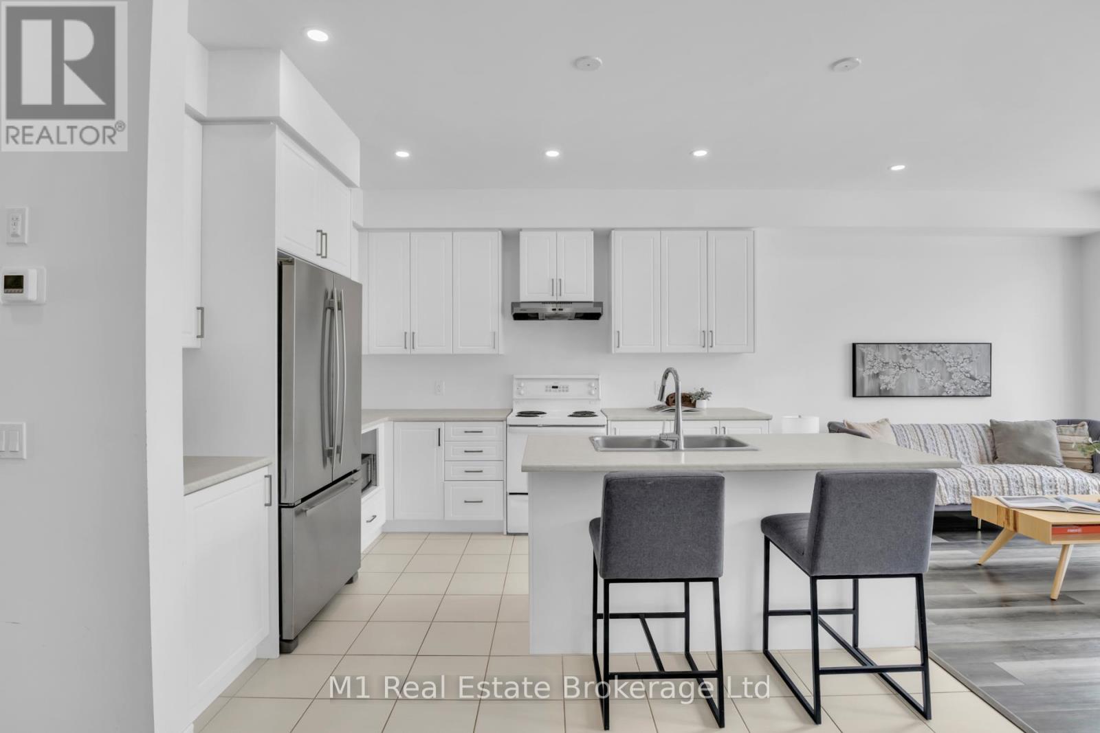 Welcome to 197 Farley Road, a well-designed freehold townhome located in the desirable Storybrook community of Fergus. This modern two-storey home offers approximately 1,742 sq. ft. of finished living space with three bedrooms and three bathrooms, providing a practical layout suited to everyday living. The main floor features a bright, open-concept design anchored by a contemporary kitchen with ample cabinetry, a large centre island, and quality finishes throughout, flowing seamlessly into the main living area. Upstairs, the primary bedroom includes a walk-in closet and a private four-piece ensuite, while two additional bedrooms share a full main bath. Upper-level laundry adds everyday convenience, and the unfinished basement offers excellent potential for future living space with existing rough-ins already in place. Exterior highlights include attractive brick and stone finishes, a covered front porch, and an attached garage with interior access. Ideally located close to schools, parks, trails, recreation facilities, and Groves Memorial Community Hospital, this home offers a low-maintenance lifestyle in one of Fergus's established newer neighbourhoods. (id:51300)
