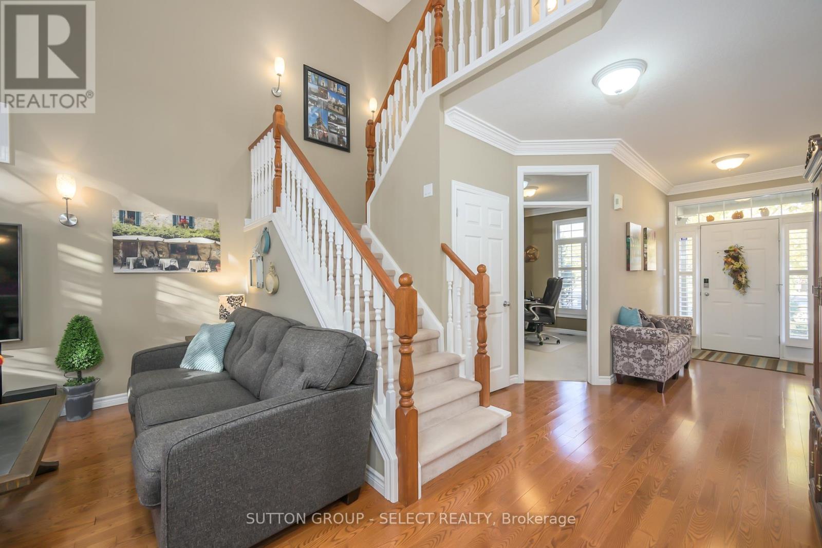 Welcome to 197 Willow Ridge Road in Ilderton - a warm and spacious 2-storey brick home set on a wide 65' lot in a family-focused community just minutes north of London. With 2621 sq. ft. above grade, plus an untouched 1318 sq ft basement for future development, this is a home that grows with you.The main floor offers a bright and functional layout starting with a dedicated dining room and front office or den - ideal for working from home, homework, or a quiet retreat. The open kitchen and dining area flow into the impressive great room, where cathedral ceilings and a natural gas fireplace create a dramatic but cozy gathering space for everyday living and entertaining.Upstairs, four generous bedrooms deliver comfortable space for families of all stages. The primary suite offers a walk-in closet and ensuite, while the additional bedrooms offer flexibility for kids, guests, hobbies, or a second office if desired. The basement remains unfinished, providing storage now and the freedom to design additional living space later.Outside, the backyard is fully fenced and landscaped with a large deck- a private area to unwind, host guests, or watch the kids play. Major updates include a new furnace (2025) and new AC (2023) Located on a quiet street in a lovely community. Don't miss this amazing opportunity. (id:51300)