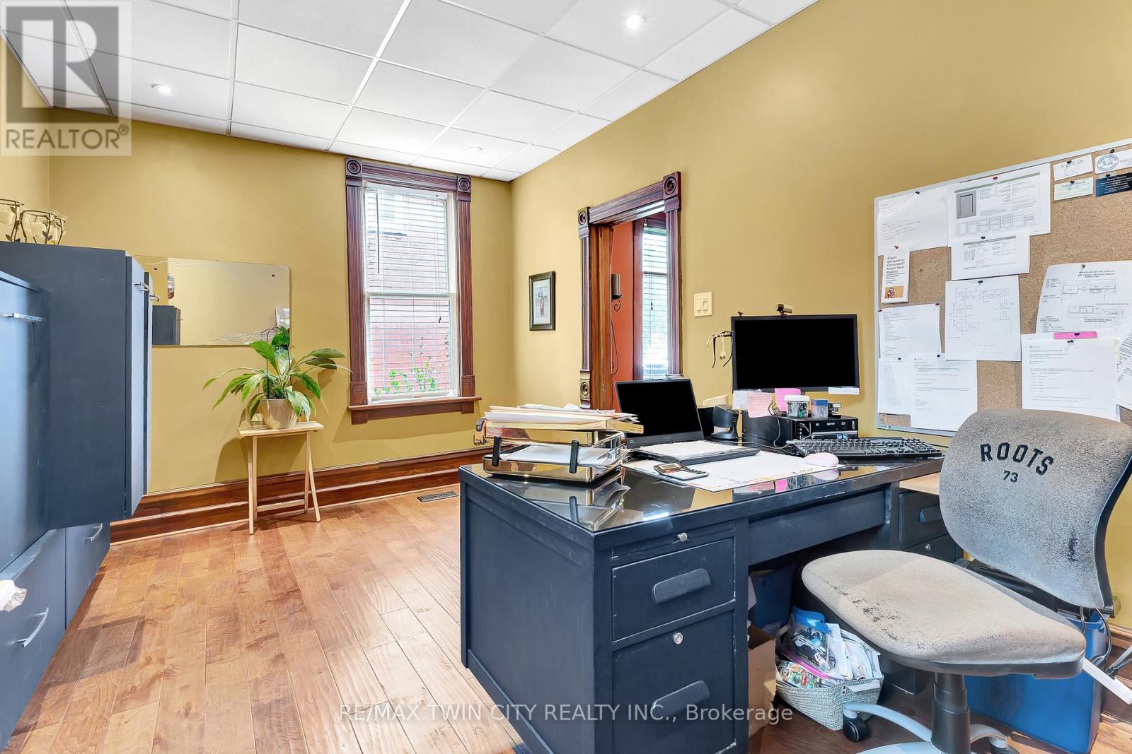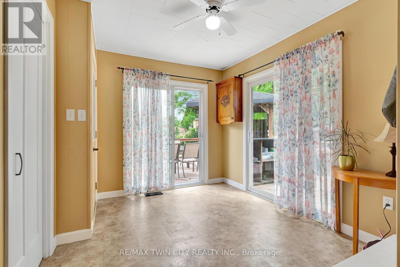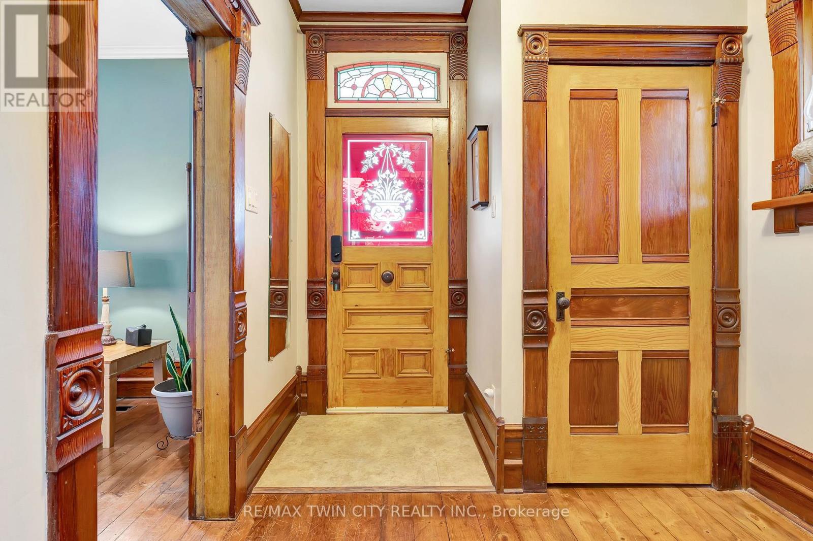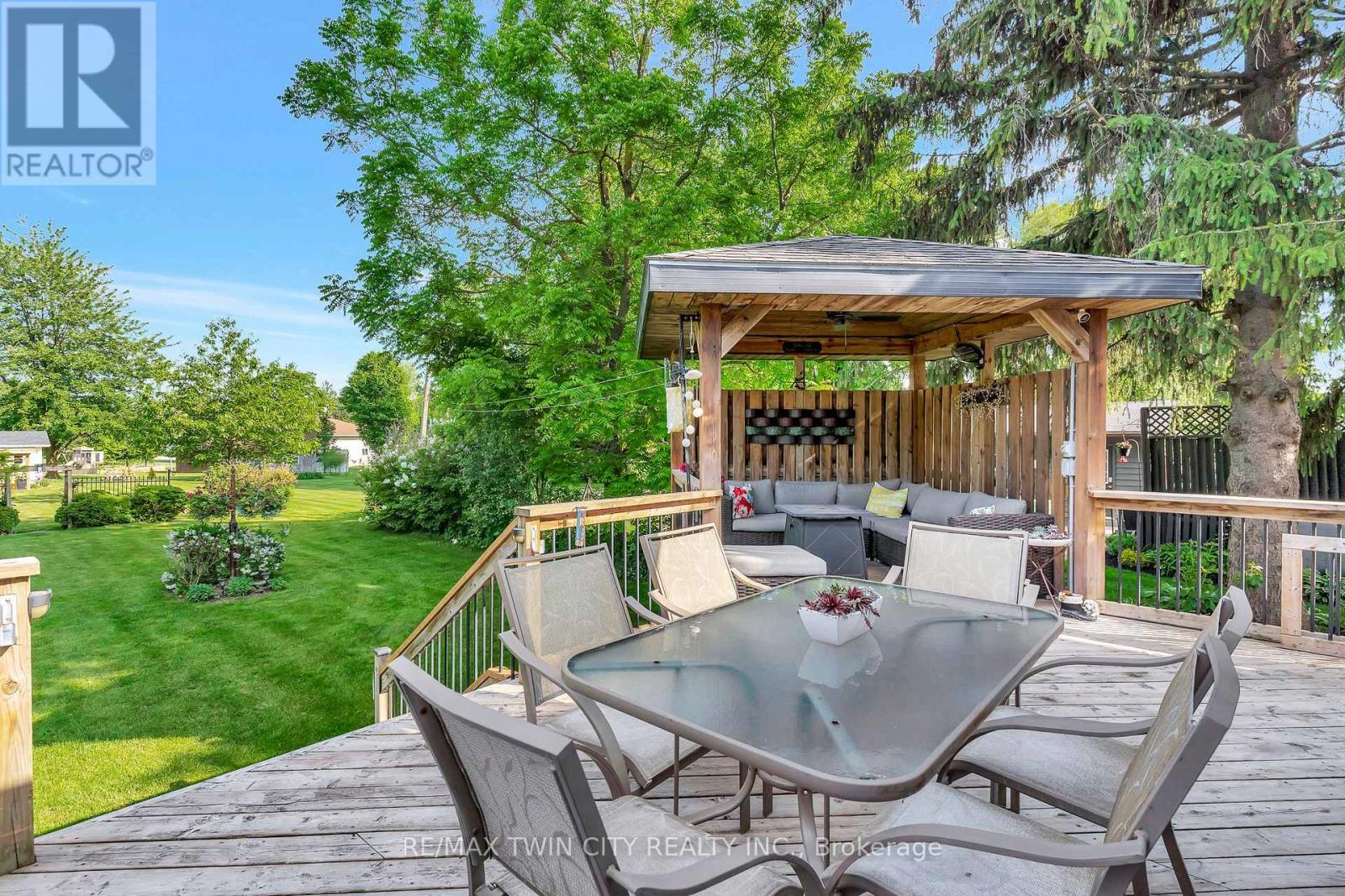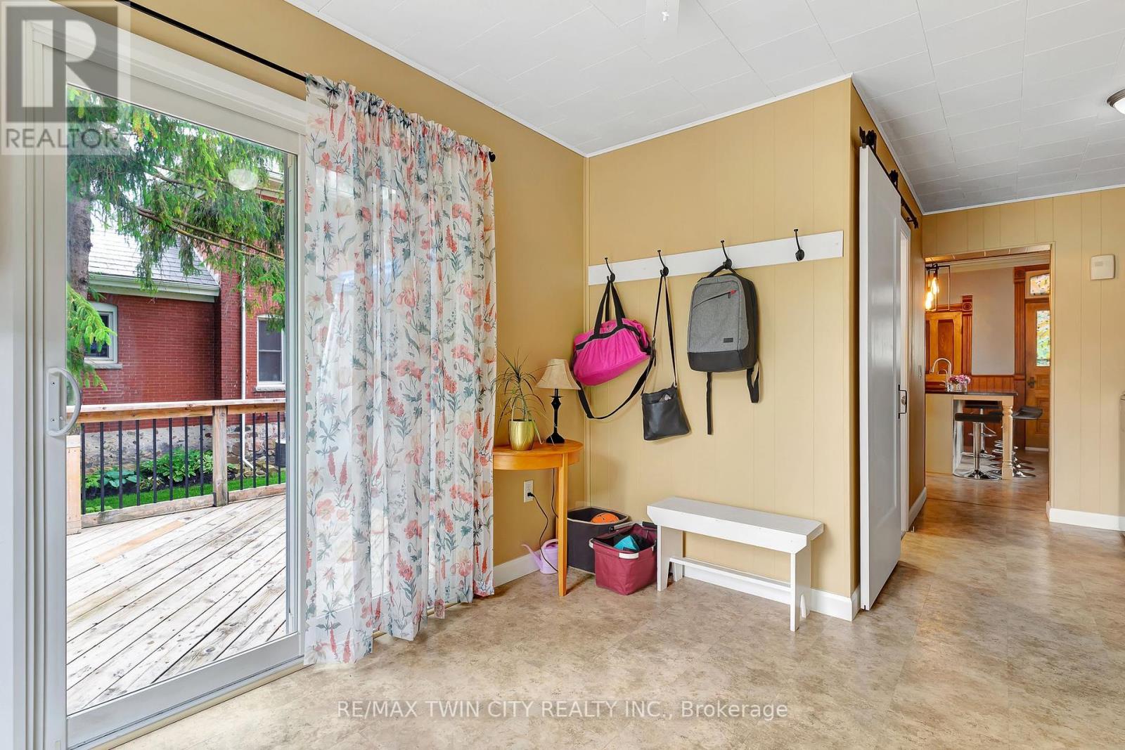 Welcome to 199 Ellen St, a charming century home overflowing with character located in the quiet family friendly town of Atwood, just a 45 min drive to Kitchener/Waterloo. This 5 bed, 2 bath, 2.5 story has beautiful curb appeal with an inviting wrap-around porch, solid red brick, lush landscaping, and a stone driveway to fit 6+ cars. Inside, the timeless appeal is seamlessly blended with modern upgrades from the elegant detail of the wood trim, some original stained glass windows and hardwood throughout to the classically renovated kitchen and bathrooms. The large entryway takes you to a cozy living room with large windows to let in plenty of natural light, and a gas fireplace where you will love to relax after a long day. From here you can separate the large formal dining room with traditional pocket doors. You will also find a den/office on this main level which is big enough to use to create a 6th bedroom on the main floor. Down the hall from the foyer is the gorgeous, modern-meets-rustic kitchen, with custom cream cabinetry and island, black granite countertops, gas stove and wood paneled ceiling, combining tradition and luxury. From here you can head through the mudroom where you'll find main floor laundry and a modern updated 3 pce bath. The oversized sliders will lead you to the peace and tranquility of the huge, treed backyard where you can enjoy the stunning gardens or relax on the private, well designed deck with a bar, or under the canopy where you can cool off under the fan. Store your toys and tools in the custom crafted shed. Upstairs there is an exquisitely designed electric fireplace with white shiplap, another fully updated 4 pce bathroom and 5 spacious bedrooms with one leading to your upper balcony, a great place to enjoy a morning coffee. If you're looking for more space or extra storage, there's a staircase to an attic with 500 sq feet to make your own. A perfect place to raise your children, close to community center/pool, schools and more! (id:51300)