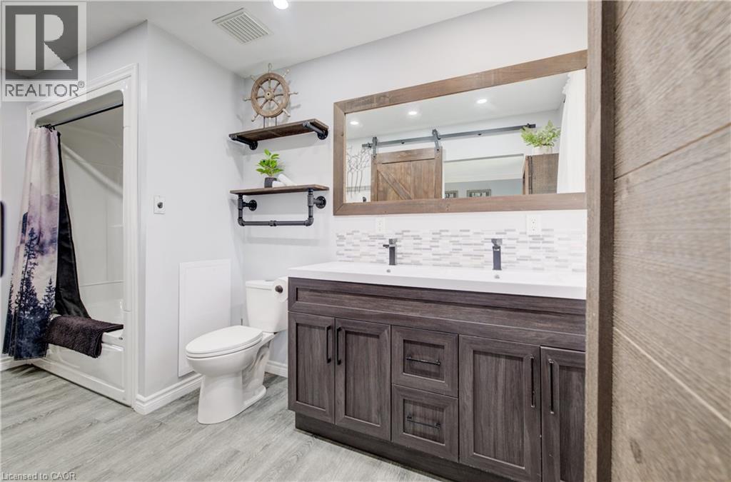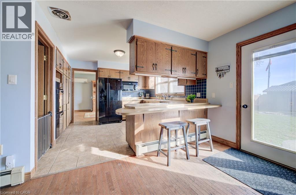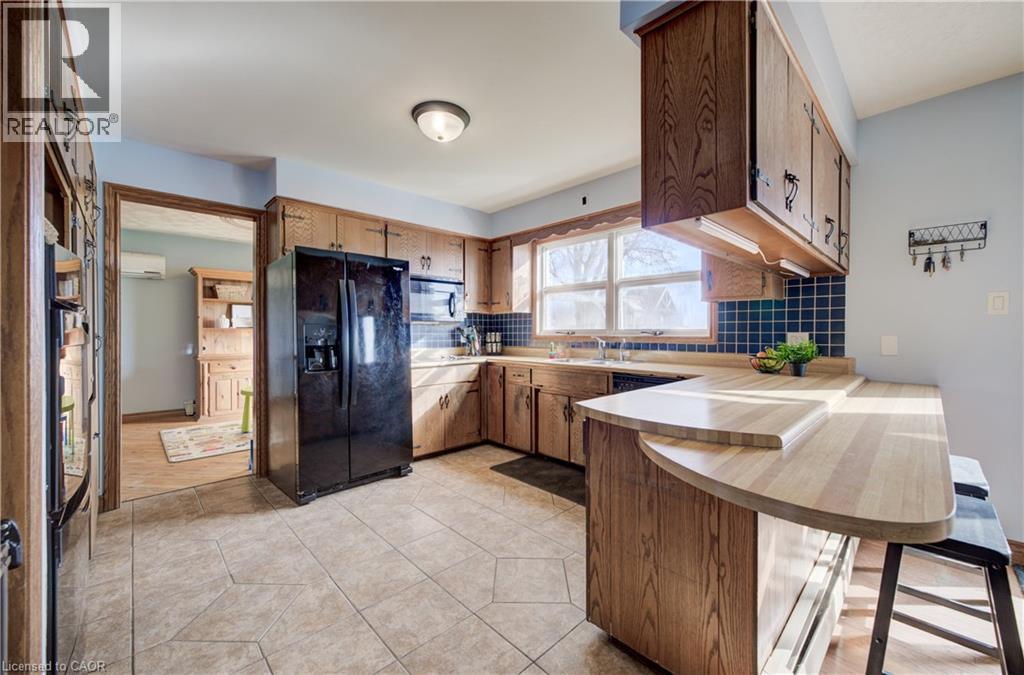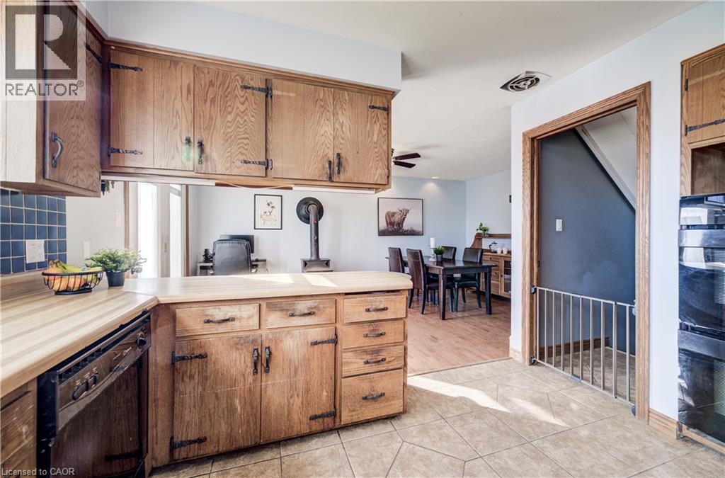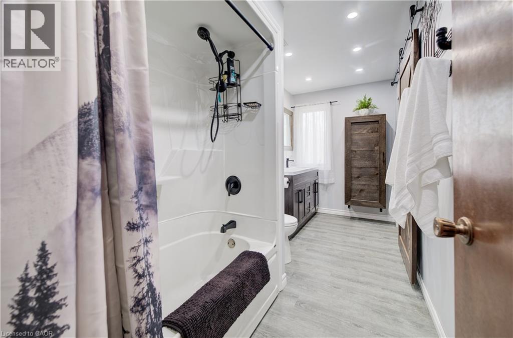 Offering over 2600 sq. ft. of living space, this well-appointed 4-bedroom, 2-bath home is located in a wonderful, family-friendly community — just a short commute to Kitchener-Waterloo, Woodstock, and only minutes from Stratford. The main level features generously sized principal rooms, including an open-concept living and dining area and a large eat-in kitchen, both with walkouts to the backyard — perfect for entertaining and family gatherings. Upstairs, you’ll find four spacious bedrooms, all with laminate flooring and ample closet space. The newly renovated family 5 pc bathroom offers a modern design and includes a convenient cheater ensuite door to the primary bedroom. The finished basement provides even more living space, with a cozy rec room, games, home office or storage area, mechanical room, and a walk-up to the double car garage. The garage itself is a standout, with three man doors providing access to the front, rear, and interior of the home. It also features a walk down to the basement and drop down stairs for access to a huge area for storage above the garage. Step outside to a large, fully fenced yard with a double gate for easy access. There’s a 20' x 20' storage shed plus a concrete driveway leading to an insulated, heated 24' x 30' hobbyist’s dream shop — complete with in-floor heating, hydro, and internet. Enjoy outdoor living on the aggregate rear patio or under the covered BBQ porch. With great curb appeal, ample space, and endless potential, this property is ready for the right buyer to make it their own. (id:51300)