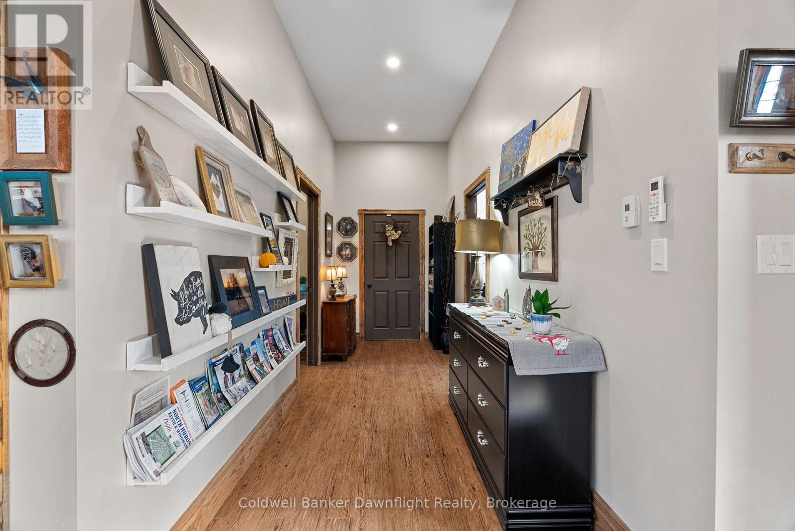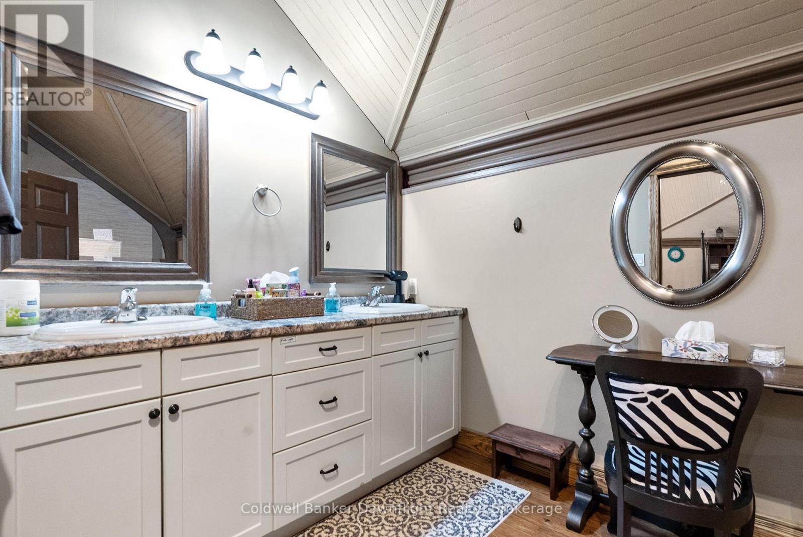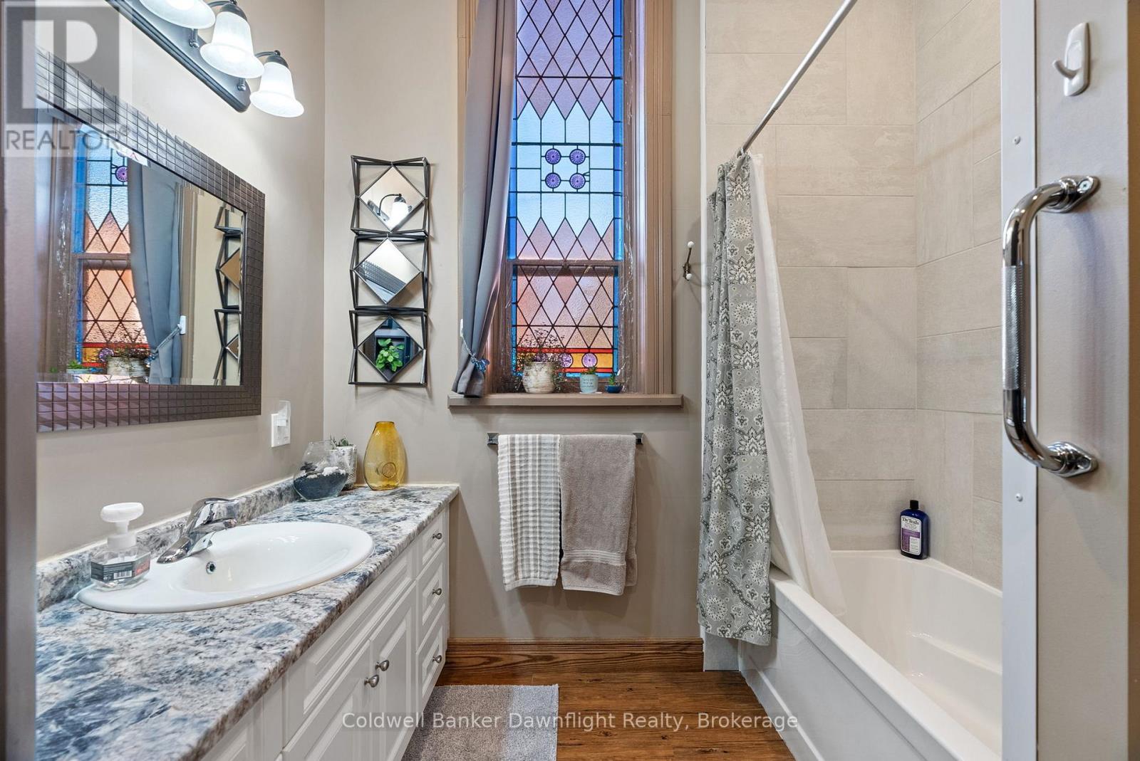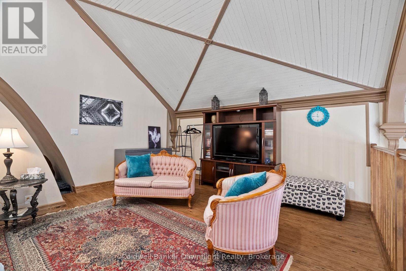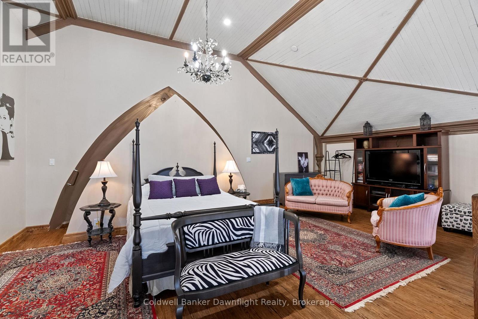 Once a place of worship, now a one of a kind residence, this 1895 brick church has been reimagined into a warm and fully livable home while preserving the character that makes it unforgettable. The moment you enter the great room, the space opens dramatically with soaring ceilings, original stained glass and an open layout designed for gathering. The main floor blends kitchen, dining and living into one impressive space anchored by a large island and framed with historic trim and arches. Also on this level is a bedroom, a 4 piece bath and main floor laundry. Upstairs, the loft style primary bedroom overlooks the main floor and features an ensuite with a double vanity and tiled walk in shower, with space for a generous wardrobe.The basement offers future potential with high ceilings, new windows, drywall started, rough ins for an additional bathroom and bedrooms and a separate entry from the front foyer which is ideal for multi use or future rental potential. Outside, the fenced yard is landscaped and offers a firepit area, storage shed with lean to and parking. The home sits in the hamlet of Whitechurch, minutes to Lucknow and Wingham for amenities and about 20 minutes to the beaches of Lake Huron.The property has also been operated as an Airbnb and has been a well loved stop for travellers and quiet getaways. The seller is open to selling it fully furnished, allowing a new owner to step into a turnkey residence or continue the Airbnb use immediately. For someone looking for more than a house, something with history, and long term potential, this converted church is a rare offering. (id:51300)