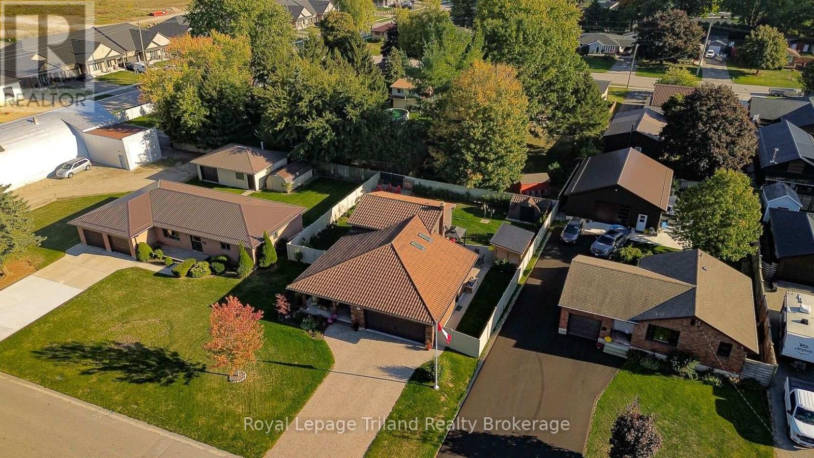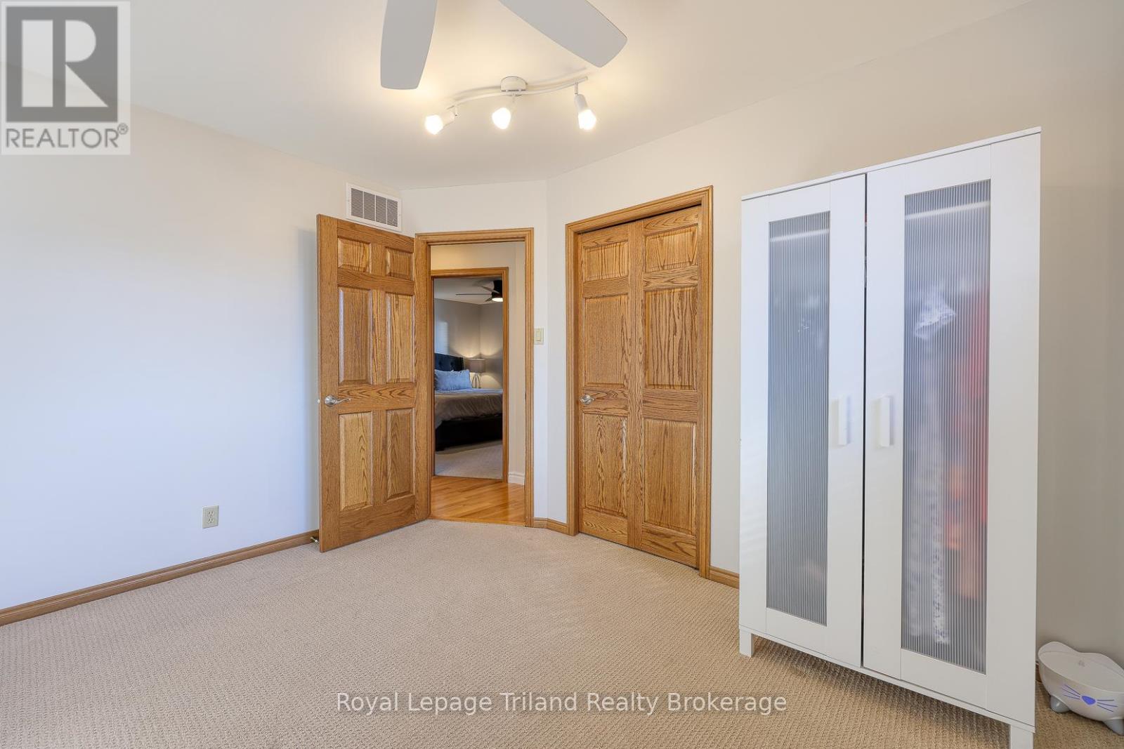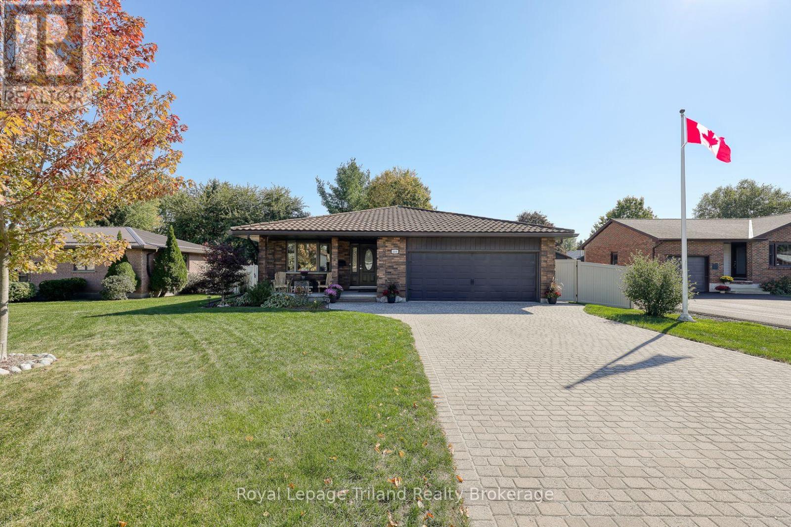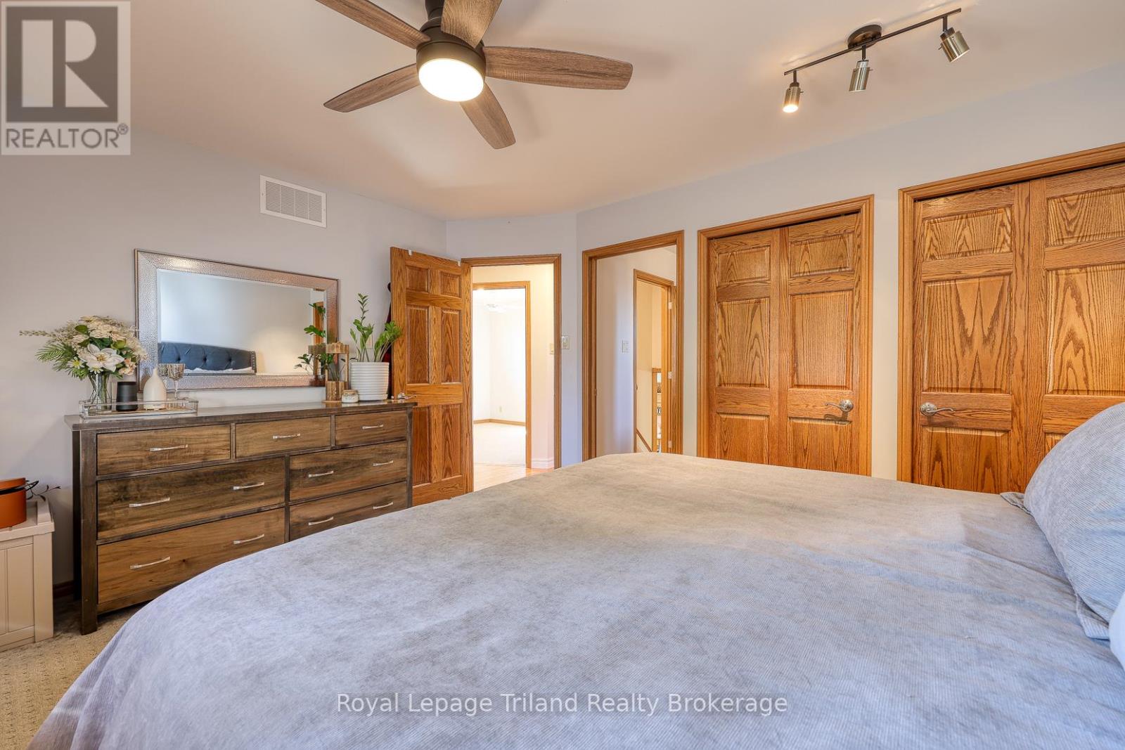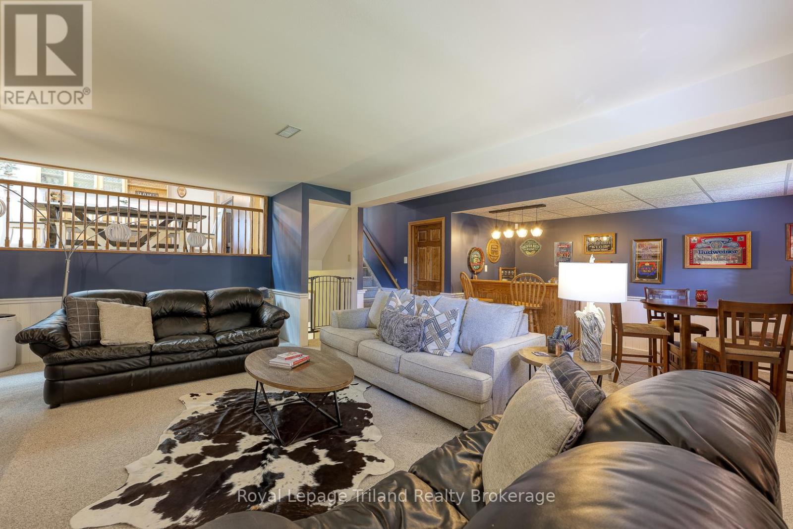 Back Split Beauty on Brock! Small-town charm meets family-friendly function. This 2-bath, 3-bedroom, 4-level brick back split blends comfort, character & curb appeal - plus an exceptional heated 2-car garage! Set on an oversized 78 x 132 ft lot, the manicured landscaping & welcoming porch make a picture-perfect first impression. Inside, 2856 SF of thoughtful design & custom quality shine! Solid wood doors run throughout & hardwood flows from the foyer to the open kitchen, dining & sunroom - a bright, connected space as functional as it is inviting. The living rm, accented by a bay window, offers a separate spot for conversation/relaxation. The kitchen is the heart of the home - oak cabinetry, solid-surface counters, built-in SS appliances (double wall ovens) & a large island with breakfast bar anchor the space. You'll love the custom coffee station and skylights that flood the dining area with light. From here, sightlines extend over the family room below, giving the home its open, airy flow. French doors lead to a standout sunroom/flex space with garden doors to the patio & inside access from the garage - a stylish drop zone, play space or work-from-home haven. Upstairs, 3 comfortable bedrooms share a 4-pce bath with a privilege door to the primary. The lower level features a bright family room with fireplace, games/bar area, & a 3-pce bath-perfect for gatherings of any size. One level down, discover 9.5-ft ceilings, a flex room ready as a gym, rec space or future 4th bdrm, & a workshop/storage area with walk-up to the finished, heated garage with epoxy flooring - a showstopper for hobbyists or auto buffs! Step outside & exhale. The private yard offers newer vinyl fencing, patio, newer hot tub in a privacy gazebo, & fire-pit zone made for laughter & late nights. Steel roof, parking for 6 & in-law potential - a complete family package! 15 min to London or Woodstock, an easy stroll to parks, arena, library & amenities. A property that fits family life beautifully. (id:51300)