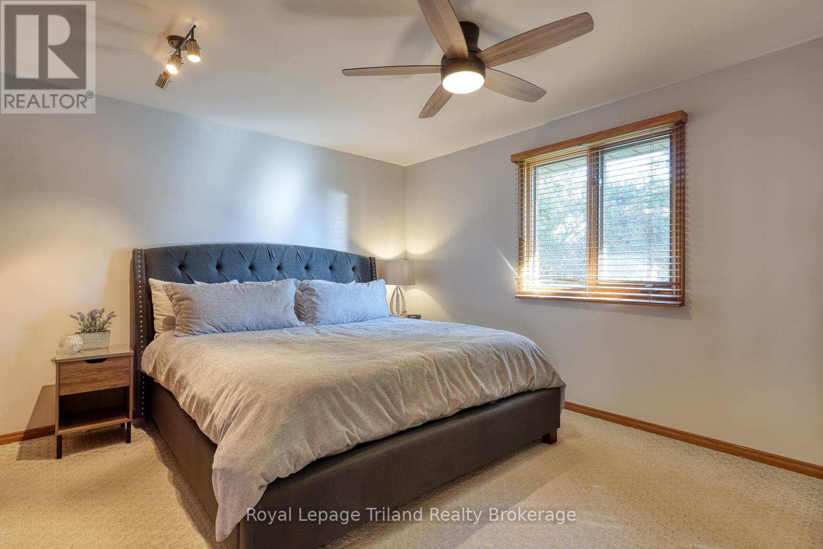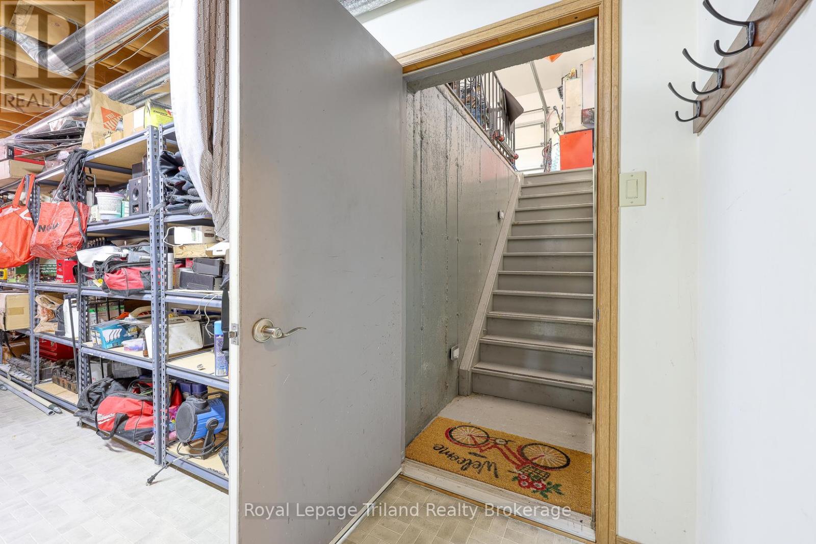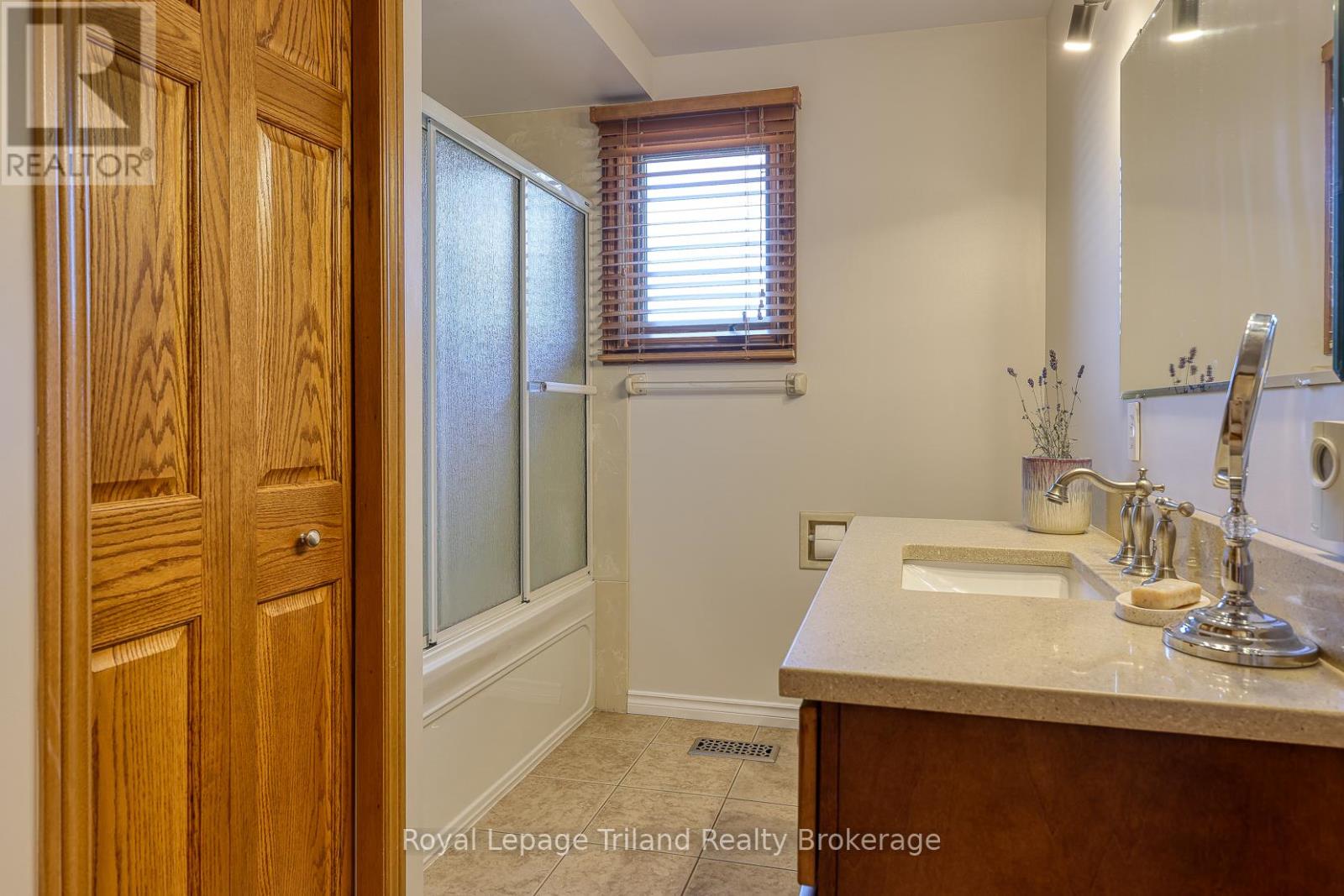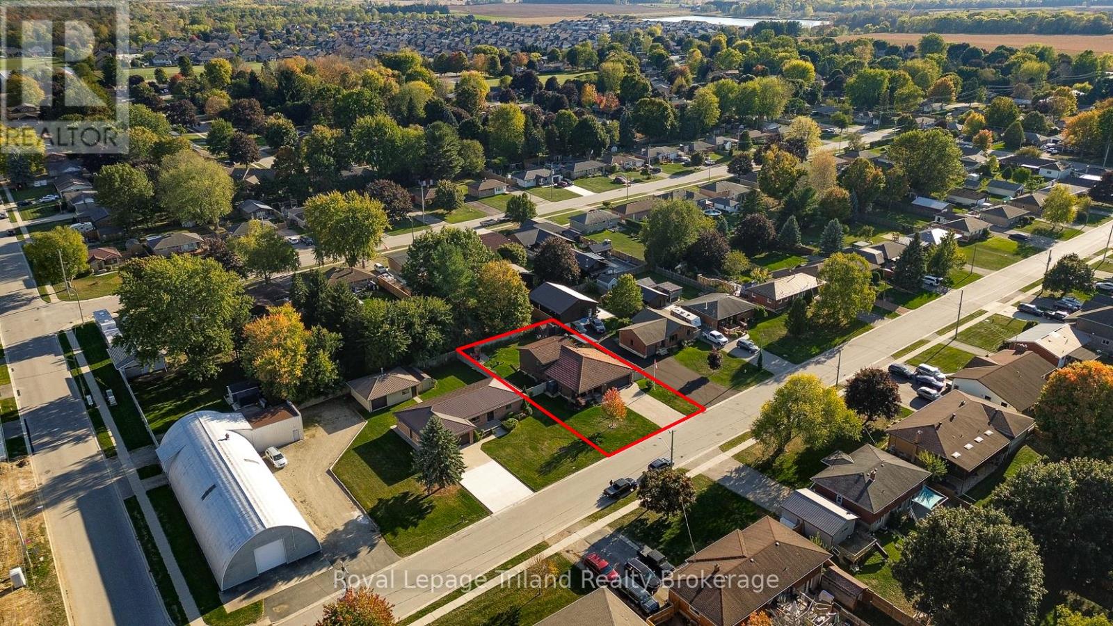 Back Split Beauty on Brock! Small-town charm meets family-friendly function. This 2-bath, 3-bedroom, 4-level brick back split blends comfort, character & curb appeal - plus an exceptional heated 2-car garage! Set on an oversized 78 x 132 ft lot, the manicured landscaping & welcoming porch make a picture-perfect first impression. Inside, 2856 SF of thoughtful design & custom quality shine! Solid wood doors run throughout & hardwood flows from the foyer to the open kitchen, dining & sunroom - a bright, connected space as functional as it is inviting. The living rm, accented by a bay window, offers a separate spot for conversation/relaxation. The kitchen is the heart of the home - oak cabinetry, solid-surface counters, built-in SS appliances (double wall ovens) & a large island with breakfast bar anchor the space. You'll love the custom coffee station and skylights that flood the dining area with light. From here, sightlines extend over the family room below, giving the home its open, airy flow. French doors lead to a standout sunroom/flex space with garden doors to the patio & inside access from the garage - a stylish drop zone, play space or work-from-home haven. Upstairs, 3 comfortable bedrooms share a 4-pce bath with a privilege door to the primary. The lower level features a bright family room with fireplace, games/bar area, & a 3-pce bath-perfect for gatherings of any size. One level down, discover 9.5-ft ceilings, a flex room ready as a gym, rec space or future 4th bdrm, & a workshop/storage area with walk-up to the finished, heated garage with epoxy flooring - a showstopper for hobbyists or auto buffs! Step outside & exhale. The private yard offers newer vinyl fencing, patio, newer hot tub in a privacy gazebo, & fire-pit zone made for laughter & late nights. Steel roof, parking for 6 & in-law potential - a complete family package! 15 min to London or Woodstock, an easy stroll to parks, arena, library & amenities. A property that fits family life beautifully. (id:51300)