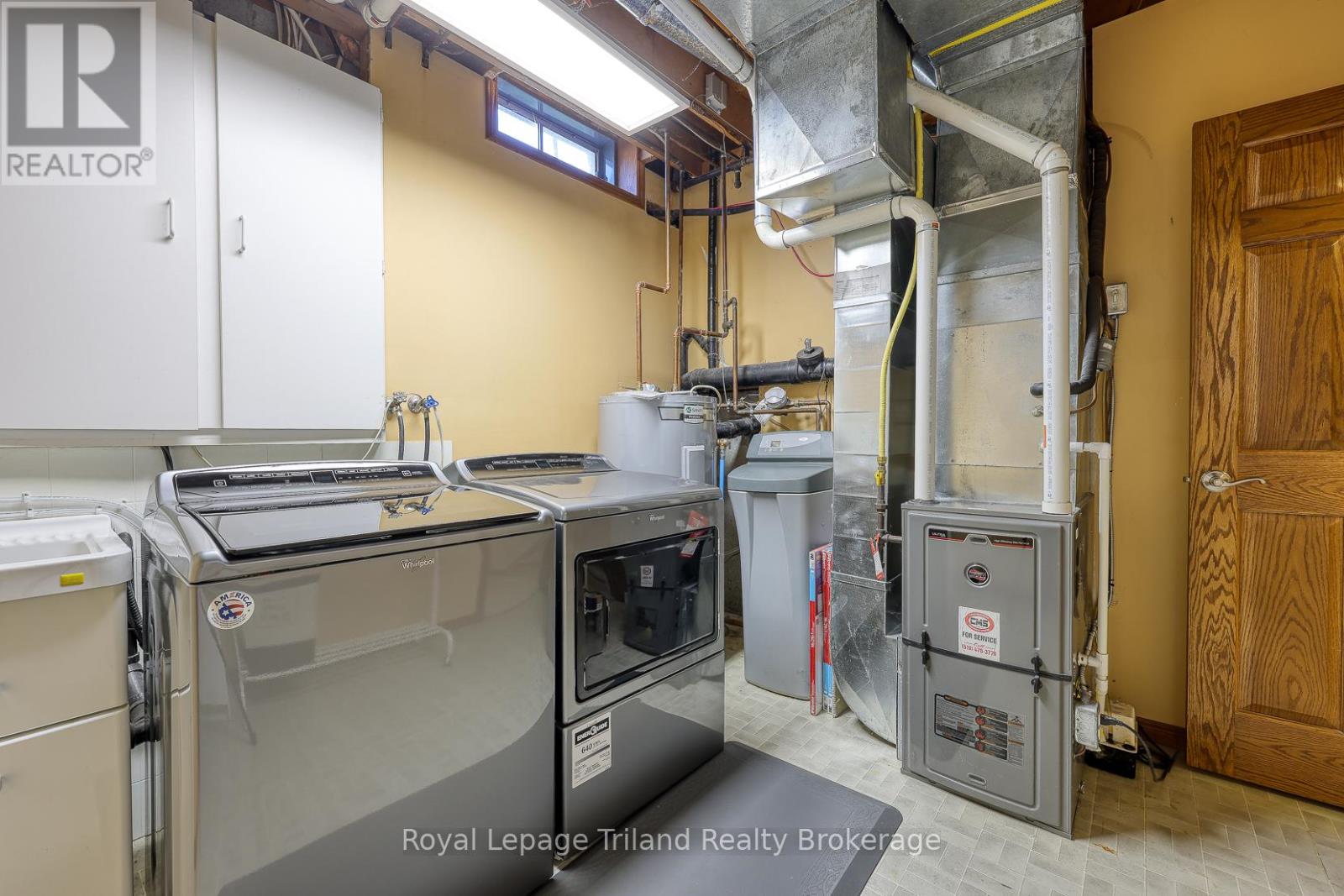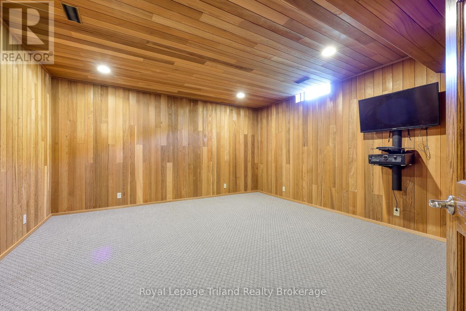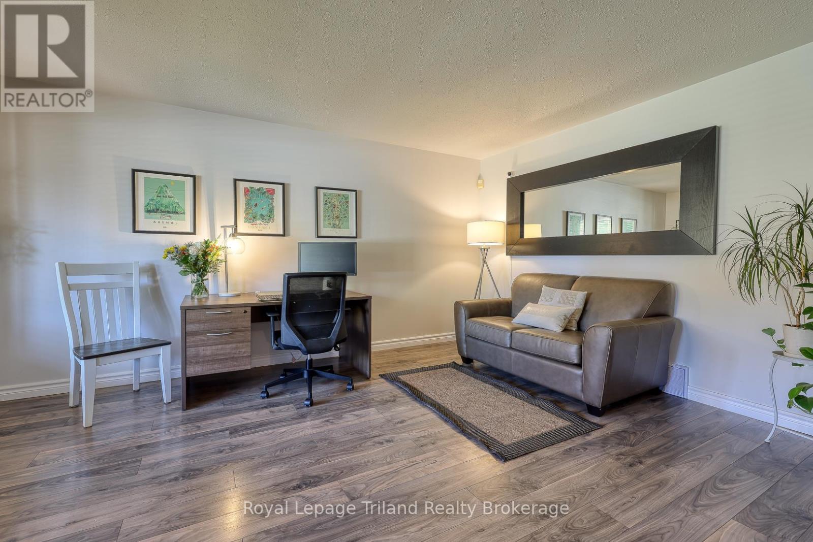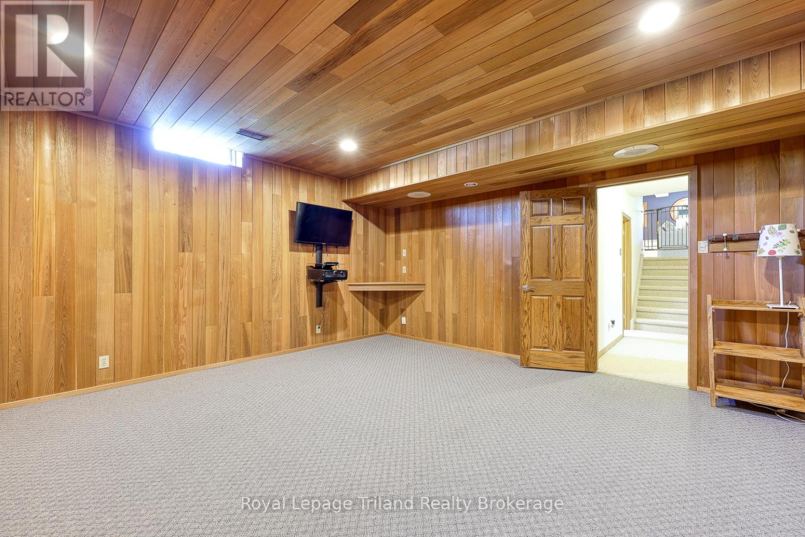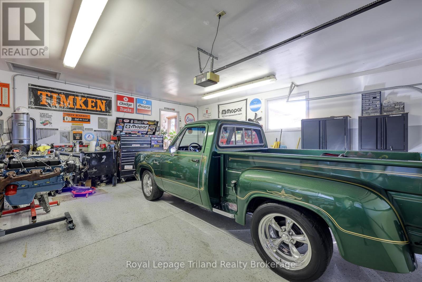 Back Split Beauty on Brock! Small-town charm meets family-friendly function. This 2-bath, 3-bedroom, 4-level brick back split blends comfort, character & curb appeal - plus an exceptional heated 2-car garage! Set on an oversized 78 x 132 ft lot, the manicured landscaping & welcoming porch make a picture-perfect first impression. Inside, 2856 SF of thoughtful design & custom quality shine! Solid wood doors run throughout & hardwood flows from the foyer to the open kitchen, dining & sunroom - a bright, connected space as functional as it is inviting. The living rm, accented by a bay window, offers a separate spot for conversation/relaxation. The kitchen is the heart of the home - oak cabinetry, solid-surface counters, built-in SS appliances (double wall ovens) & a large island with breakfast bar anchor the space. You'll love the custom coffee station and skylights that flood the dining area with light. From here, sightlines extend over the family room below, giving the home its open, airy flow. French doors lead to a standout sunroom/flex space with garden doors to the patio & inside access from the garage - a stylish drop zone, play space or work-from-home haven. Upstairs, 3 comfortable bedrooms share a 4-pce bath with a privilege door to the primary. The lower level features a bright family room with fireplace, games/bar area, & a 3-pce bath-perfect for gatherings of any size. One level down, discover 9.5-ft ceilings, a flex room ready as a gym, rec space or future 4th bdrm, & a workshop/storage area with walk-up to the finished, heated garage with epoxy flooring - a showstopper for hobbyists or auto buffs! Step outside & exhale. The private yard offers newer vinyl fencing, patio, newer hot tub in a privacy gazebo, & fire-pit zone made for laughter & late nights. Steel roof, parking for 6 & in-law potential - a complete family package! 15 min to London or Woodstock, an easy stroll to parks, arena, library & amenities. A property that fits family life beautifully. (id:51300)