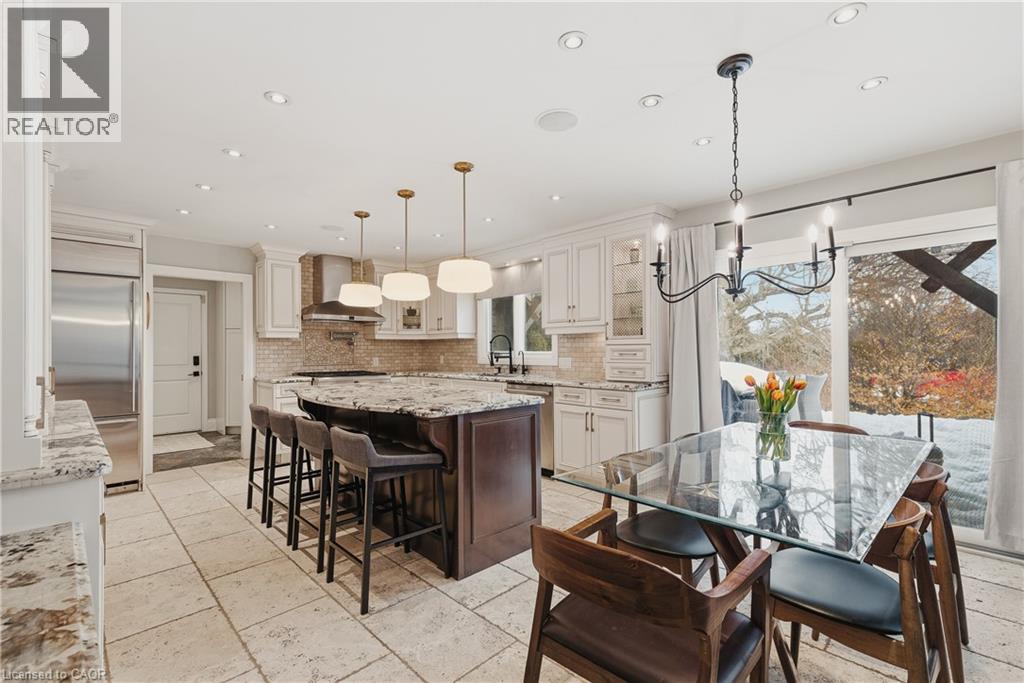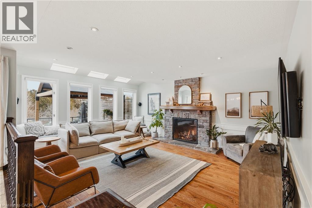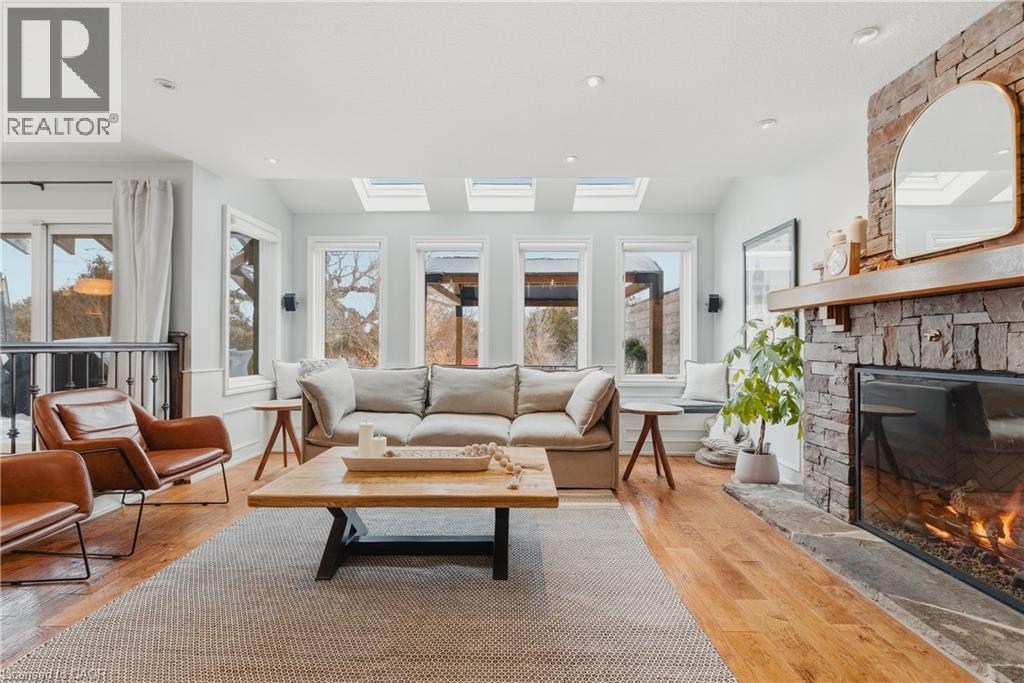 Welcome to life in West Montrose, where privacy, space, and a more considered pace of living come together just minutes from the city. Set on over half an acre in the heart of Old Order Mennonite countryside, this beautifully updated home offers a rare balance of peaceful surroundings and everyday convenience, with easy access to Waterloo, Elmira, Elora, and Guelph. A timeless stone exterior, mature trees, and an extended driveway create a strong sense of arrival. Inside, a grand two storey foyer with a curved staircase introduces the home with scale and quiet sophistication. The main floor flows seamlessly between everyday living and entertaining, with a bright front den, formal dining room, and an open kitchen and living space filled with natural light. The kitchen is both refined and highly functional, centred around a generous island with seating, extensive cabinetry, a coffee station, and an oversized gas range, perfectly positioned off the garage and mudroom entry. Skylights and a wall of windows define the sunken living room, where a gas fireplace and built in reading bench create a warm focal point. Upstairs, four bedrooms offer well proportioned space with hardwood flooring throughout. The primary suite is set apart, featuring an ensuite with heated floors, a soaker tub, glass shower, and a connected dressing room or office with skylights leading to a walk in closet. The finished lower level adds versatility with a wine cellar, fifth bedroom with cabinetry, sink, and built in appliances, ideal for guests or extended living, plus a spacious recreation area and full bathroom. Outdoors, the property is designed for both entertaining and retreat, featuring a large 44x22 saltwater pool, expansive deck, pergola, landscape lighting, and an invisible fence system. A rare opportunity to experience refined living in one of the region’s most sought after settings. (id:51300)
