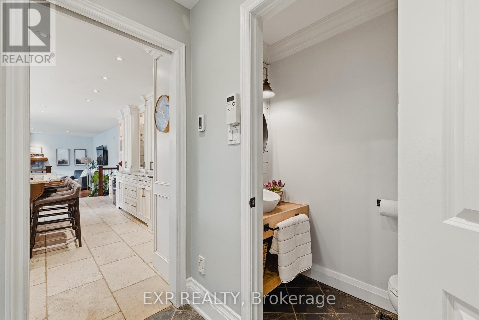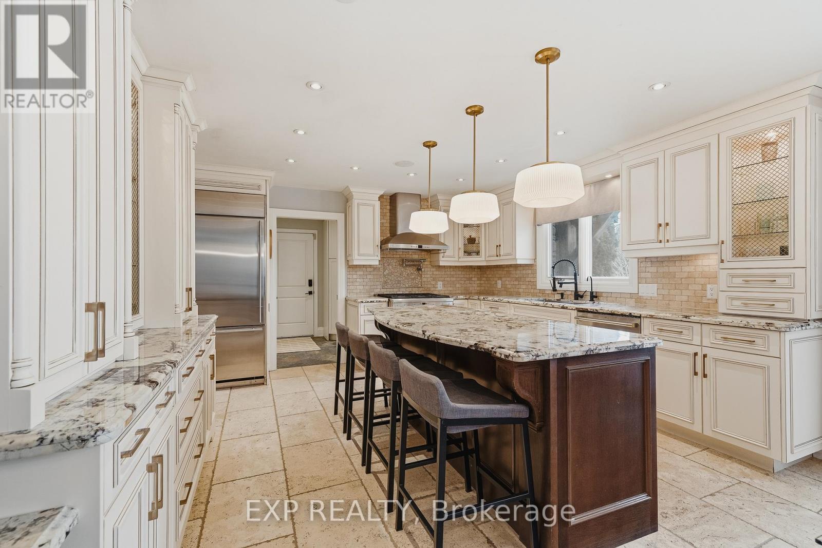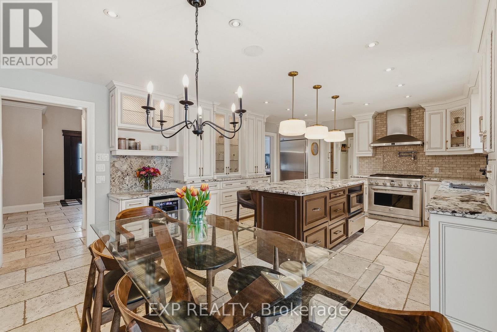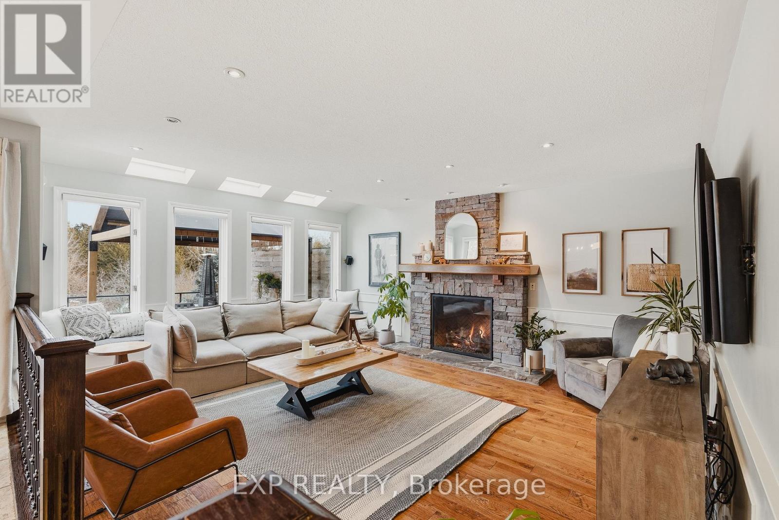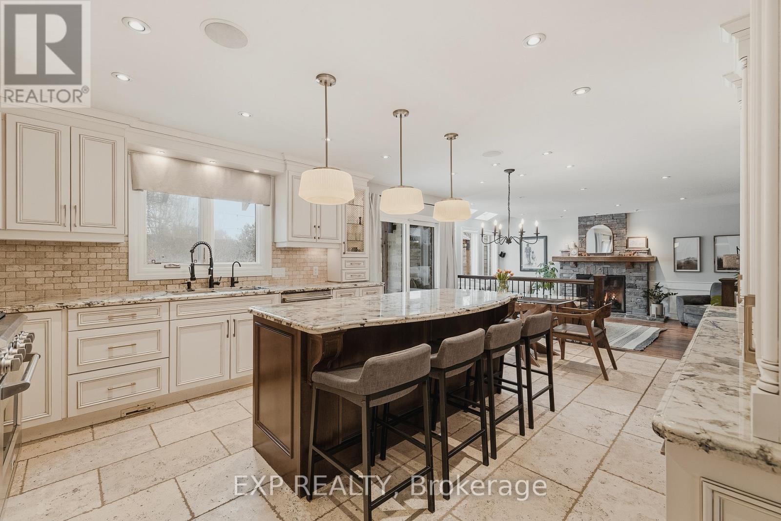 Welcome to life in West Montrose, where privacy, space, and a more considered pace of living come together just minutes from the city. Set on over half an acre in the heart of Old Order Mennonite countryside, this beautifully updated home offers a rare balance of peaceful surroundings and everyday convenience, with easy access to Waterloo, Elmira, Elora, and Guelph. A timeless stone exterior, mature trees, and an extended driveway create a strong sense of arrival. Inside, a grand two storey foyer with a curved staircase introduces the home with scale and quiet sophistication. The main floor flows seamlessly between everyday living and entertaining, with a bright front den, formal dining room, and an open kitchen and living space filled with natural light. The kitchen is both refined and highly functional, centred around a generous island with seating, extensive cabinetry, a coffee station, and an oversized gas range, perfectly positioned off the garage and mudroom entry. Skylights and a wall of windows define the sunken living room, where a gas fireplace and built in reading bench create a warm focal point. Upstairs, four bedrooms offer well proportioned space with hardwood flooring throughout. The primary suite is set apart, featuring an ensuite with heated floors, a soaker tub, glass shower, and a connected dressing room or office with skylights leading to a walk in closet. The finished lower level adds versatility with a wine cellar, fifth bedroom with cabinetry, sink, and built in appliances, ideal for guests or extended living, plus a spacious recreation area and full bathroom. Outdoors, the property is designed for both entertaining and retreat, featuring a large 44x22 saltwater pool, expansive deck, pergola, landscape lighting, and an invisible fence system. A rare opportunity to experience refined living in one of the region's most sought after settings. (id:51300)