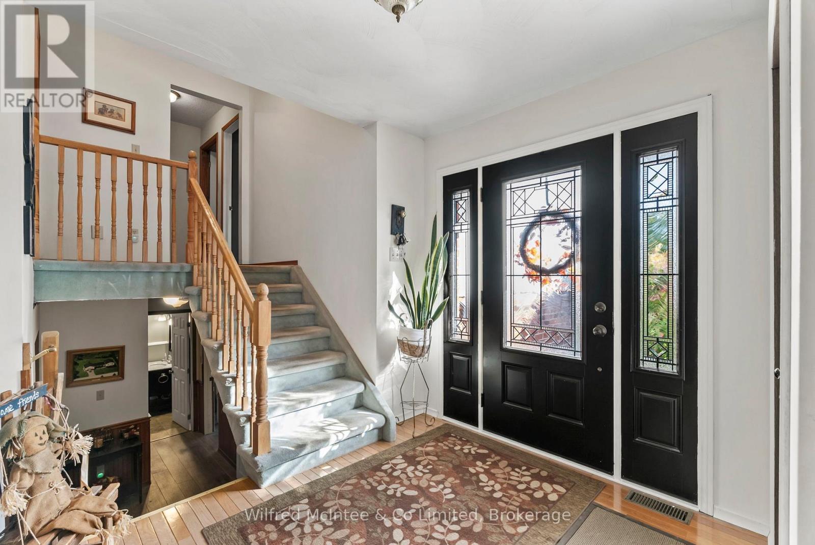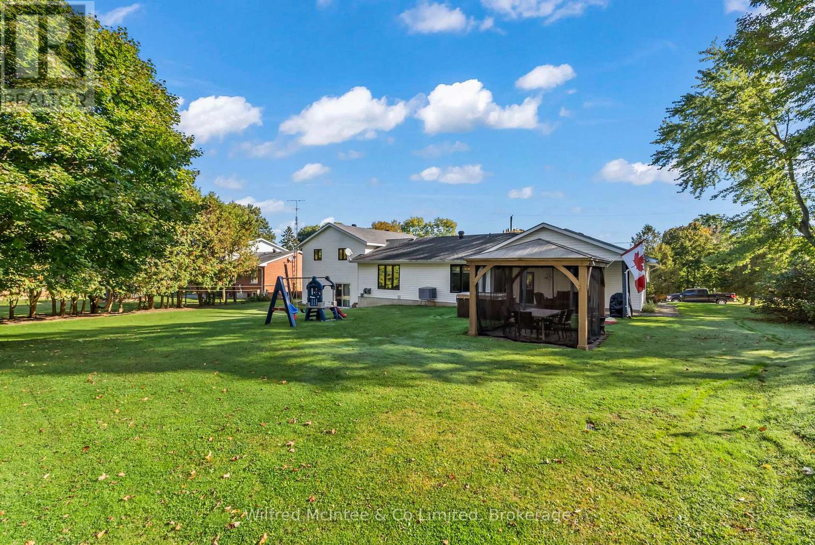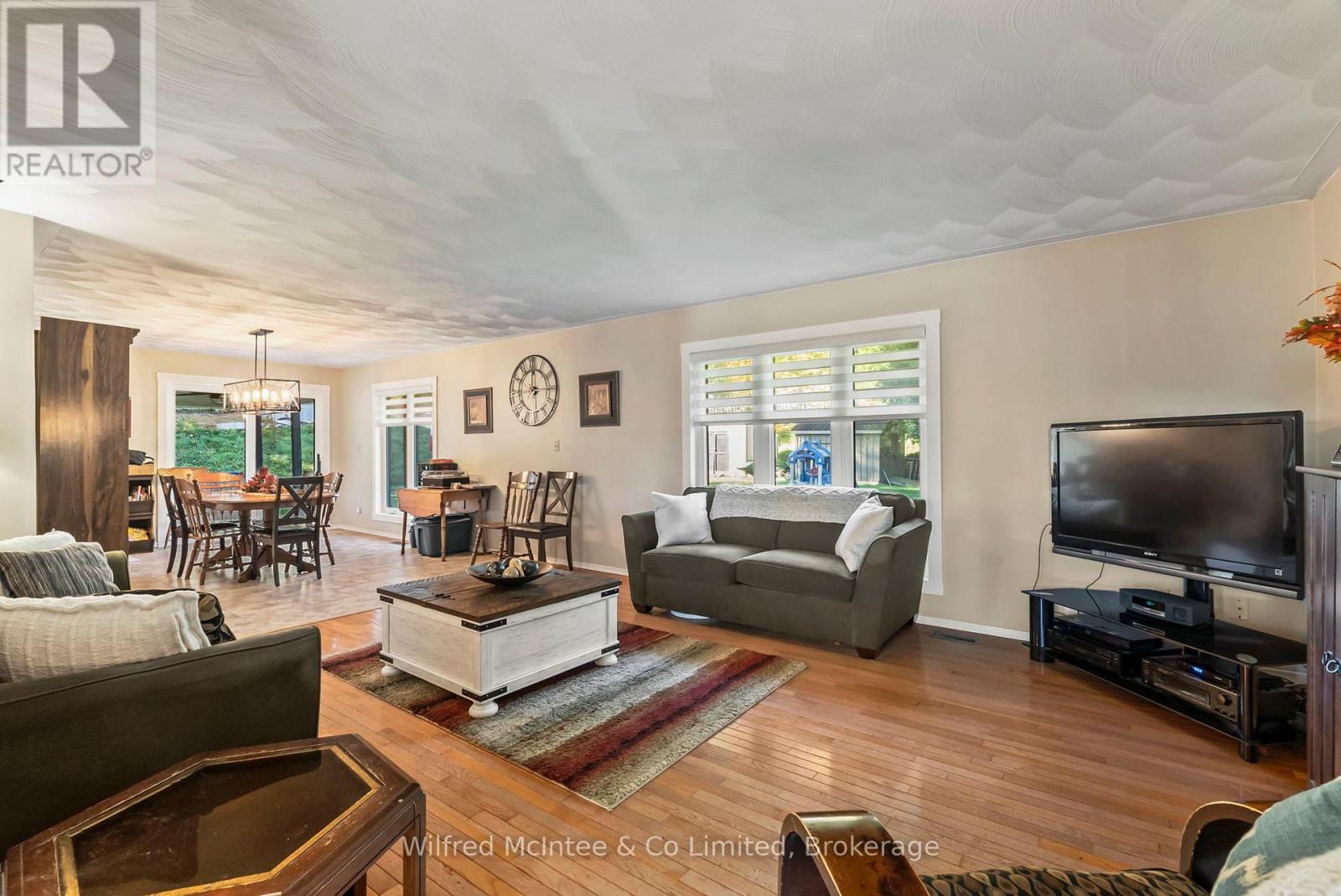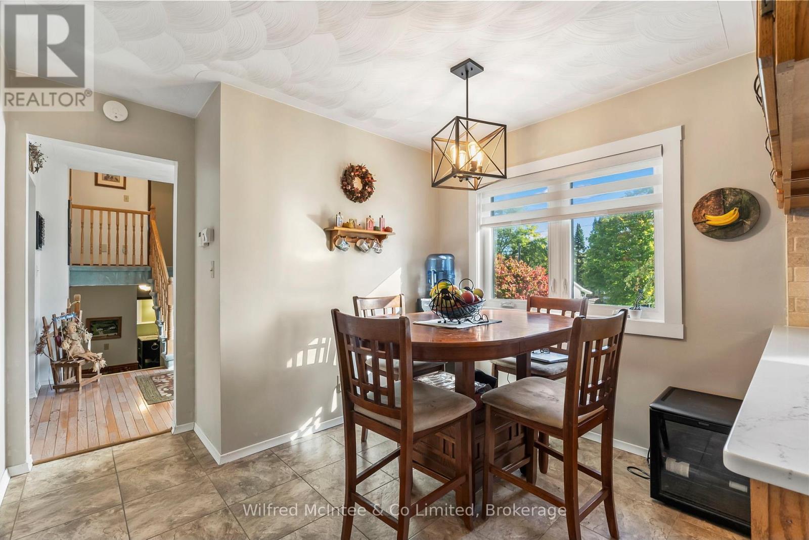 Welcome to 210 James Street in Paisley! Situated on a double lot in one of Paisley's most desirable neighborhoods, this welcoming side split home offers the perfect harmony of classic charm and modern comfort with over 2500 sq. ft. of living space. Step inside a spacious foyer to discover a bright and functional kitchen, featuring quartz countertops, abundant cabinetry and convenient eat-in area. The very spacious formal dining room/living room seamlessly flows to a covered patio-ideal for effortless indoor-to-outdoor entertaining. Convenient powder room completes the main level. On the upper level you'll find three generously sized bedrooms, along with a 4-piece bathroom offering convenient ensuite access from the primary bedroom. With thoughtful storage options throughout, every room is designed to keep your space organized. The lower level offers even more living space, including a comfortable family room with a gas fireplace and a walkout to the expansive backyard-perfect for kids, pets, and outdoor gatherings. This level also includes a 3-piece bath, laundry/utility room, and the potential for a fourth bedroom, providing plenty of flexibility for growing families, guests, or home office needs. New windows in 2023. A double car garage, ample parking, and a beautifully landscaped double lot complete the picture. Enjoy the best of Paisley living, with charming shops, restaurants, and riverside recreation just moments away. With its ideal layout, unbeatable location, and generous lot, this exceptional property truly checks all the boxes-your next chapter begins here! (id:51300)