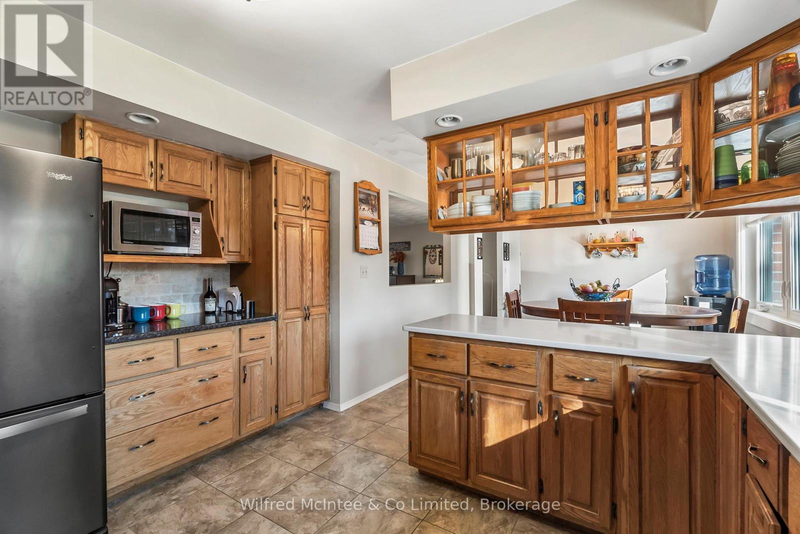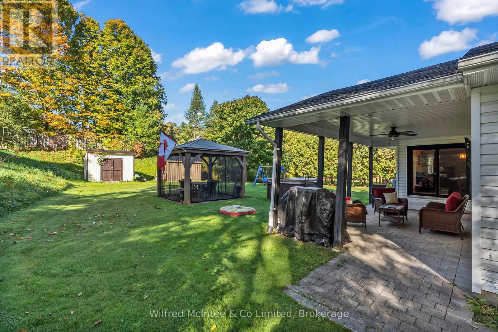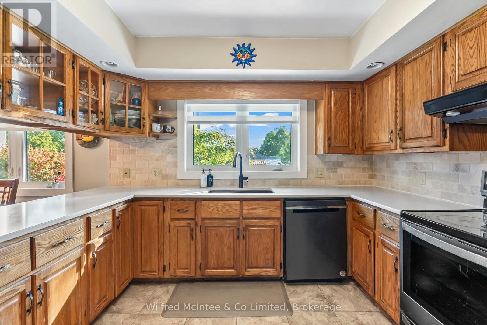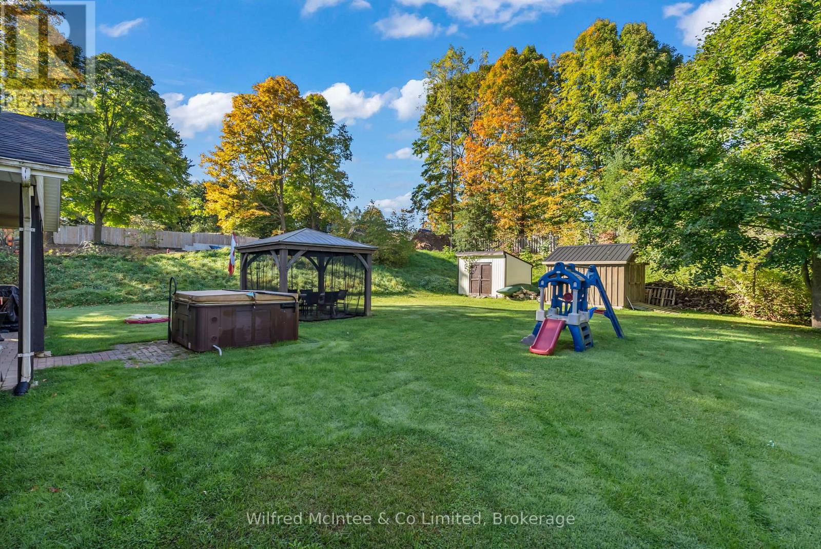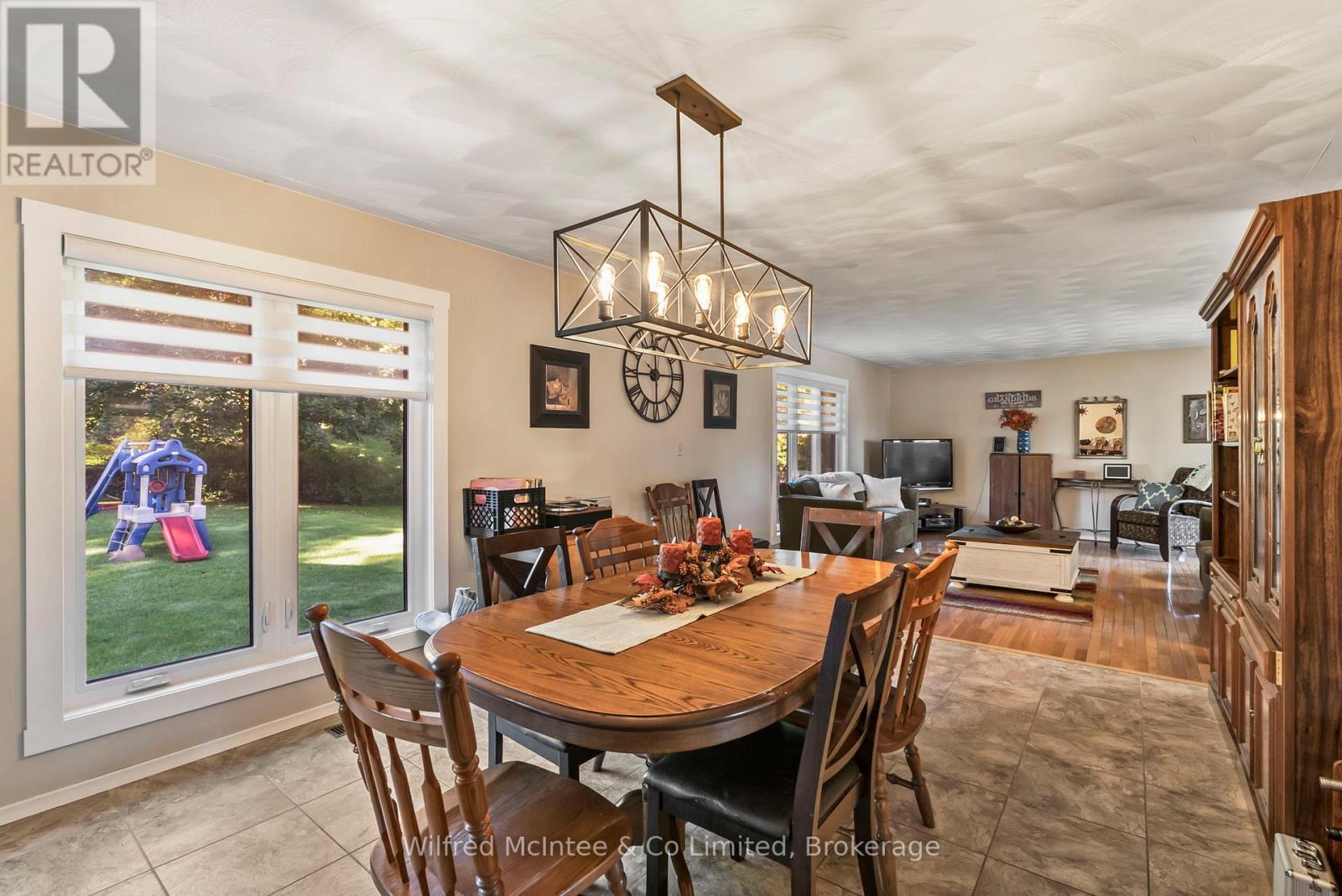 Welcome to 210 James Street in Paisley! Situated on a double lot in one of Paisley's most desirable neighborhoods, this welcoming side split home offers the perfect harmony of classic charm and modern comfort with over 2500 sq. ft. of living space. Step inside a spacious foyer to discover a bright and functional kitchen, featuring quartz countertops, abundant cabinetry and convenient eat-in area. The very spacious formal dining room/living room seamlessly flows to a covered patio-ideal for effortless indoor-to-outdoor entertaining. Convenient powder room completes the main level. On the upper level you'll find three generously sized bedrooms, along with a 4-piece bathroom offering convenient ensuite access from the primary bedroom. With thoughtful storage options throughout, every room is designed to keep your space organized. The lower level offers even more living space, including a comfortable family room with a gas fireplace and a walkout to the expansive backyard-perfect for kids, pets, and outdoor gatherings. This level also includes a 3-piece bath, laundry/utility room, and the potential for a fourth bedroom, providing plenty of flexibility for growing families, guests, or home office needs. New windows in 2023. A double car garage, ample parking, and a beautifully landscaped double lot complete the picture. Enjoy the best of Paisley living, with charming shops, restaurants, and riverside recreation just moments away. With its ideal layout, unbeatable location, and generous lot, this exceptional property truly checks all the boxes-your next chapter begins here! (id:51300)
