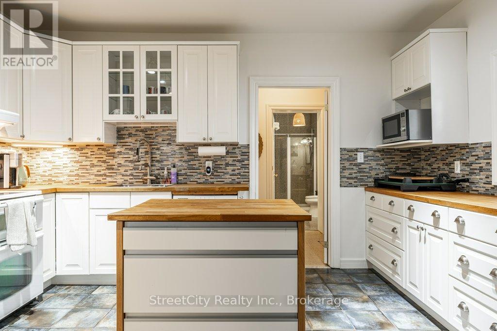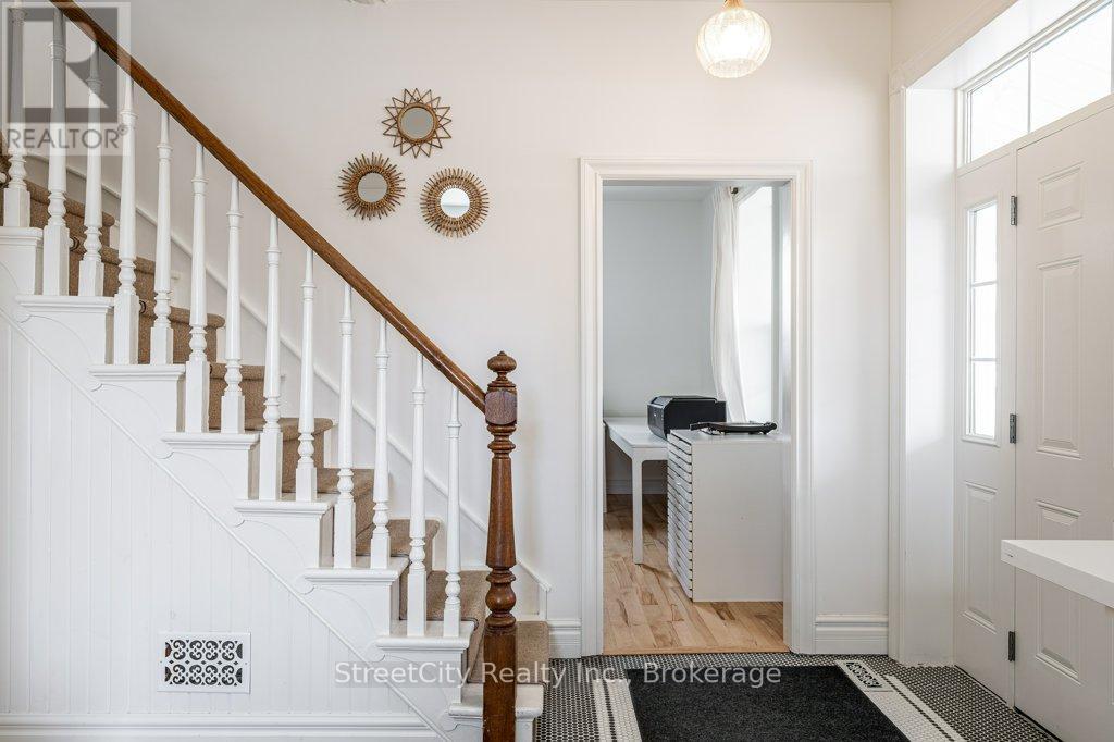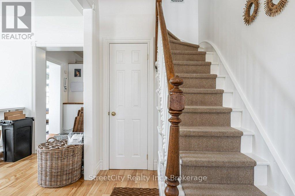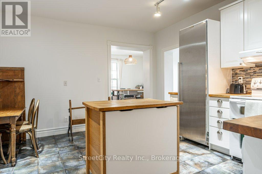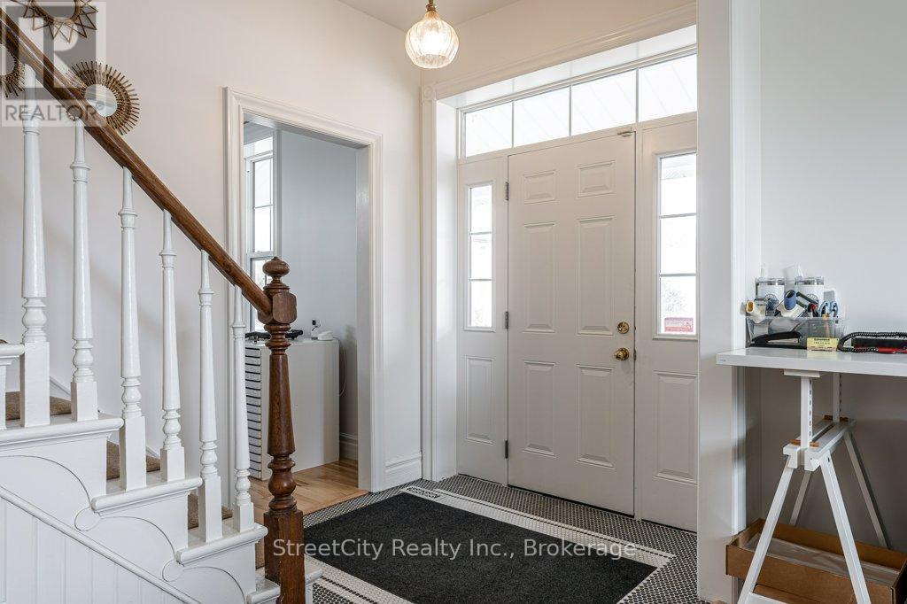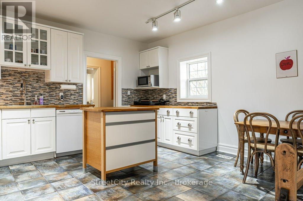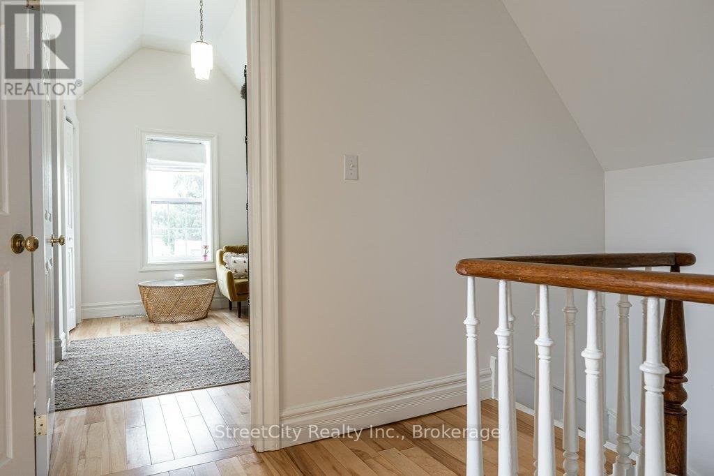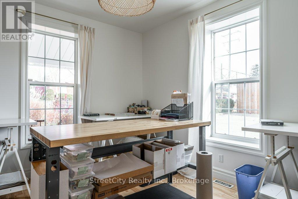 .Are you looking for a serene, updated, comfortable and casual commercial space ideally suited for professional office, service or retail? Are you looking for a gorgeous update of a classic century 1.5 storey to make your home? Or are you looking for a perfect affordable work/live space? This charming Shakespeare property checks all of the boxes. Flexible commercial zoning allows for a variety of commercial uses as well as permitted single detached residential use. Phenomenal exposure located on highway corridor between Stratford & Kitchener w/ ample parking in the newly poured concrete driveway/parking area. The interior is freshly renovated throughout w/ numerous updates including spalted maple hardwood flooring, ceramic tile, windows, furnace/AC & more. A flexible interior space offers a traditional floor plan with generous principal rooms on the main level, a large eat-in kitchen w/ island, a 3pc bath, huge mudroom, main floor laundry. The second level offers 2 large bedrooms & a 2 pc bath. The light colour palette and large windows create an airy & bright feel throughout the interior. Oodles of curb appeal w/ traditional wood siding, a welcoming covered front porch (on grade for accessibility), wrought iron fencing encapsulating mature landscaping & gardens, a fenced rear yard w/ raised vegetable gardens & several fruit trees. Ample parking on freshly poured concrete driveway/parking area. Exterior side entry access through the mudroom adds to the versatility of the mixed use potential for the property. An excellent opportunity for a Buyer looking for specific requirements for their commercial property or a Buyer who is looking for a charming, affordable home to make their own. Call for more information or to schedule a private showing. (id:51300)