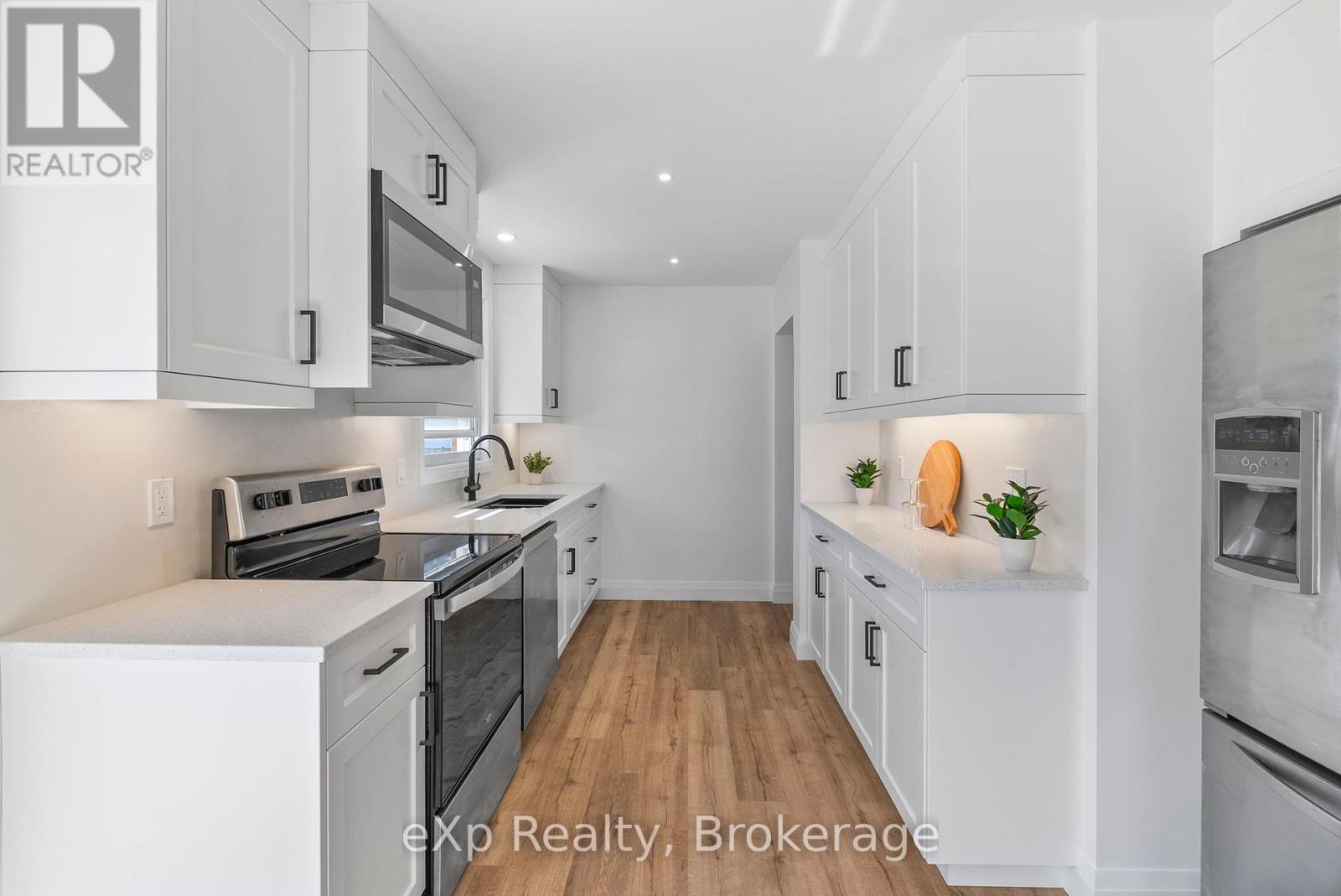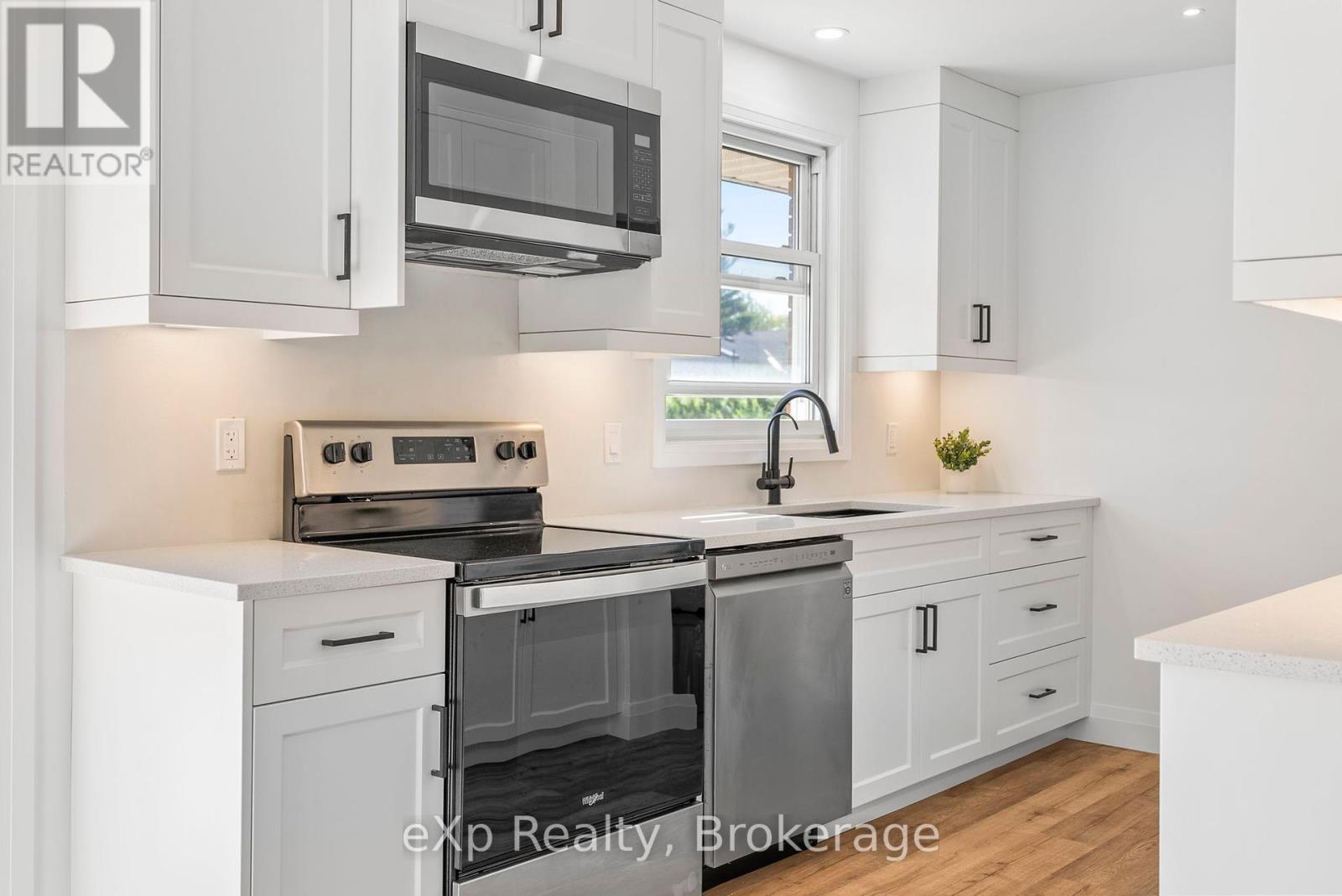 This stunning, fully renovated, 3+1 Bedroom bungalow offers the perfect blend of modern design and functional living. This home is ideal for families, downsizers, or anyone seeking a turnkey property! From the moment you arrive, you'll appreciate the clean curb appeal and welcoming entry. Step inside to a bright and airy main floor, where large windows fill the space with natural light. The living area features a striking modern shiplap fireplace, creating a cozy yet contemporary focal point for the space. The brand new kitchen is sure to impress, boasting quartz countertops, sleek cabinetry, and plenty of counter space and storage for everyday living and entertaining. Gracefully enter and exit onto the massive, new, back deck through the sliding doors off the Dining area. Downstairs, the fully finished basement has been thoughtfully redesigned and opened up to create a large, versatile living area. Thanks to oversized windows, the lower level feels bright and inviting perfect for a family room, media space, home office, or guest suite. Enjoy the convenience of an attached garage with direct access into the home ideal for bringing in groceries or avoiding the weather. Every detail in this home has been updated with care, including electrical, plumbing, flooring, lighting, trim, paint, Bathrooms, Kitchen, 3 exterior doors, garage door, deck, landscaping and new Living Room window. Just move in and enjoy worry-free living in a beautifully refreshed home! (id:51300)
