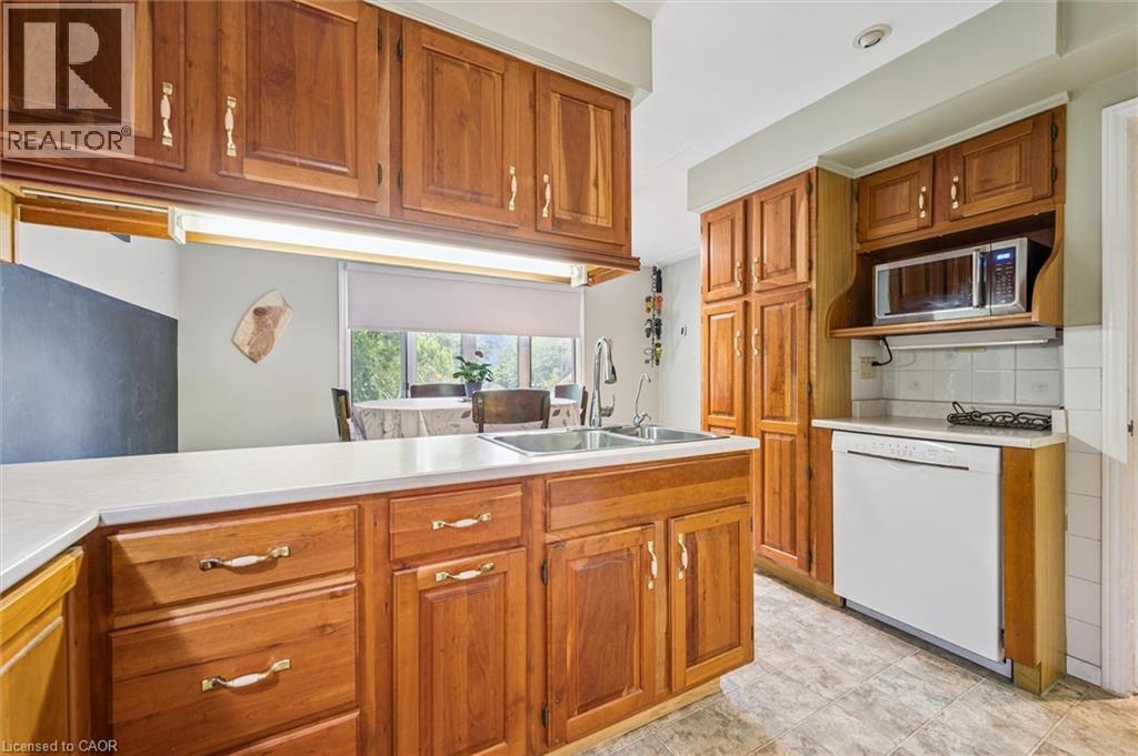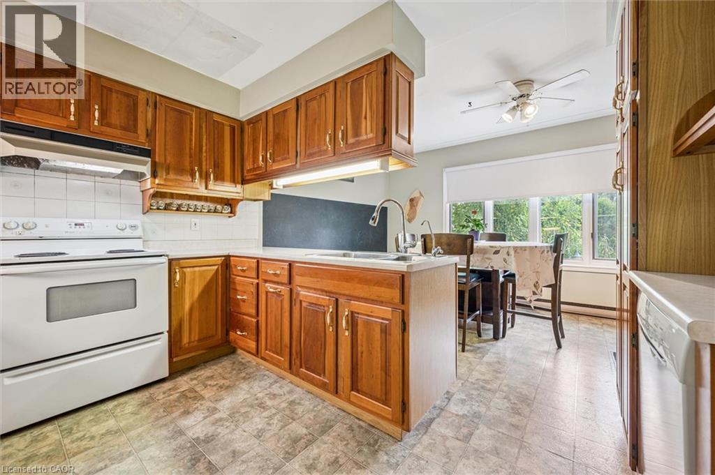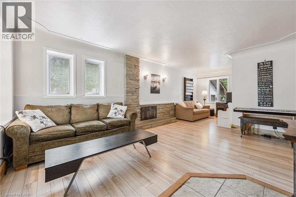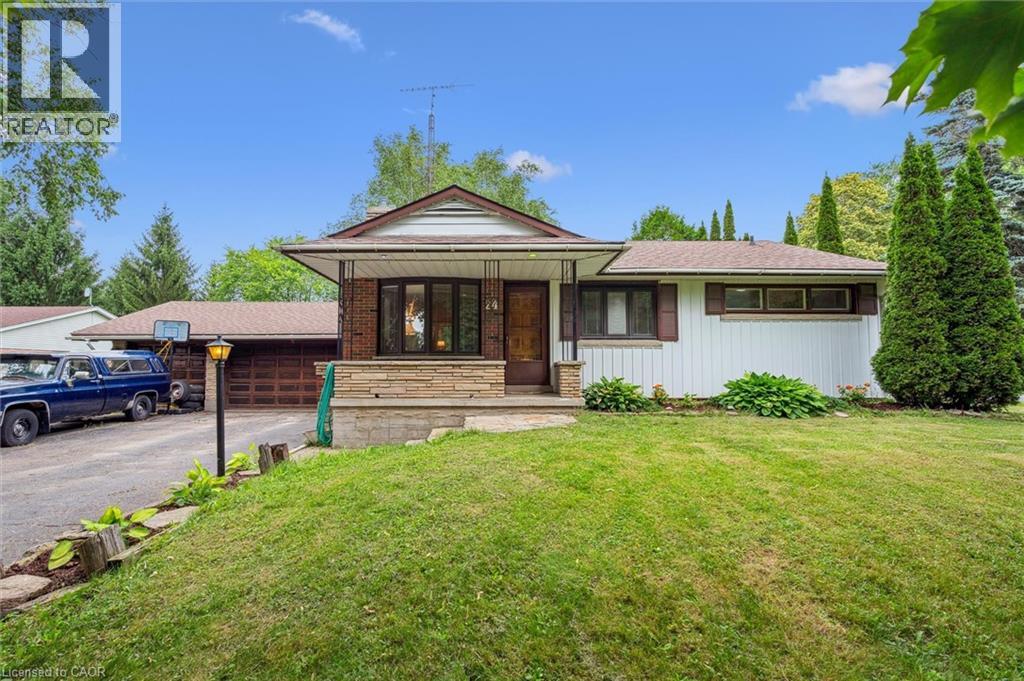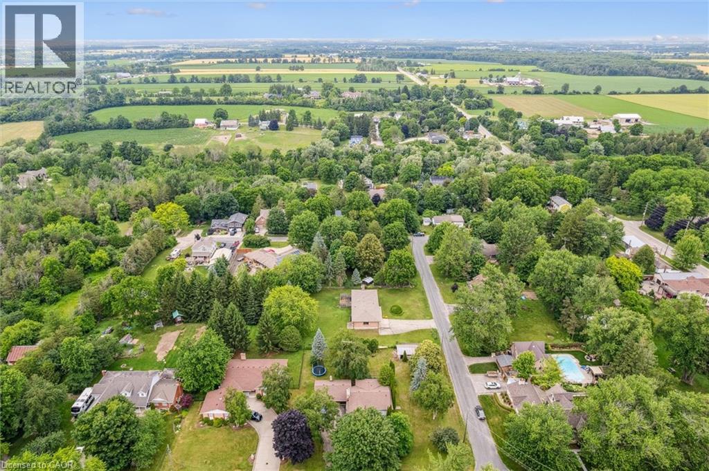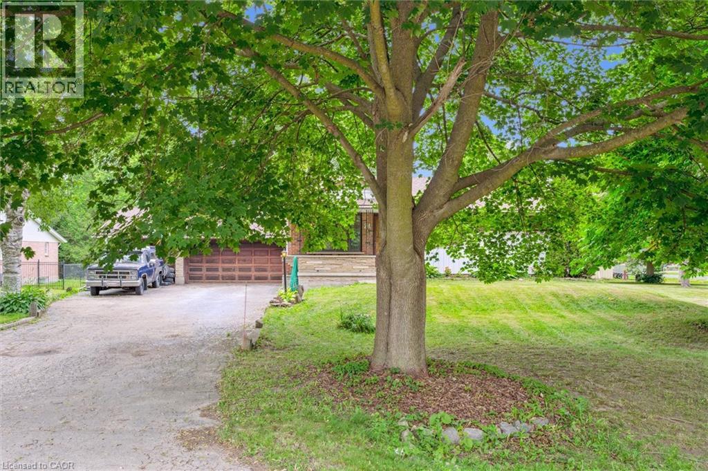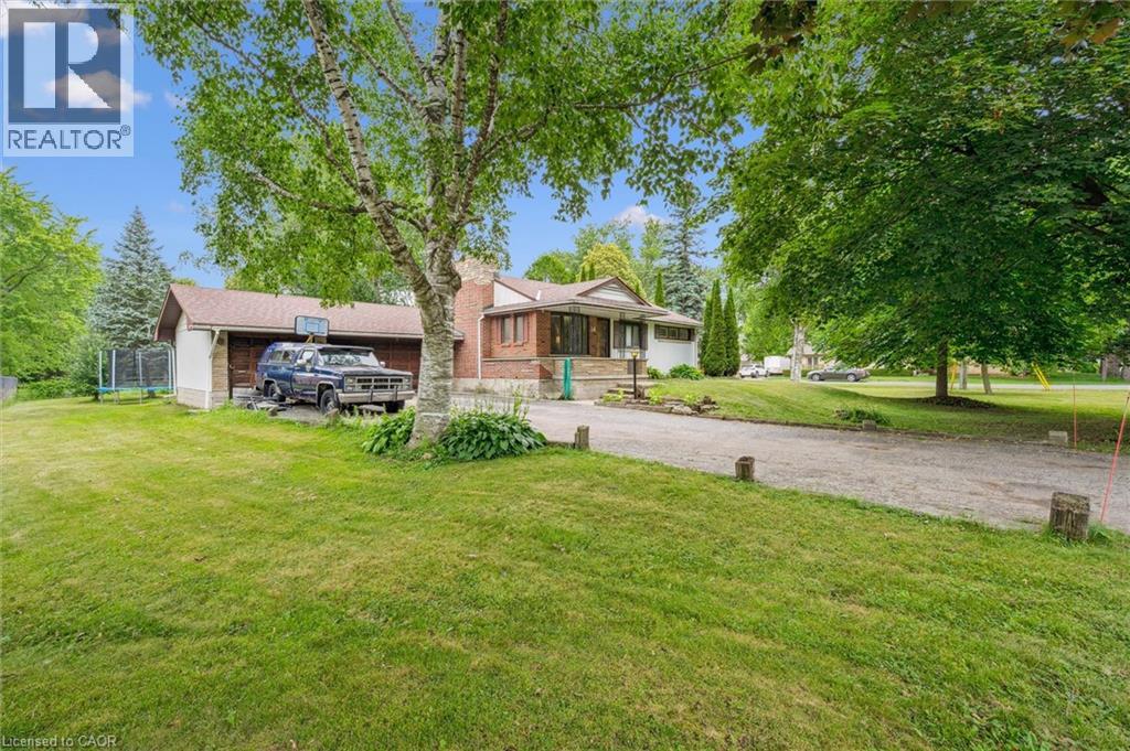 Welcome to the quaint Village of Winterbourne. This 3 bedroom, 2 bathroom bungalow is situated on almost 1/2 an acre on a quiet tree lined Street. The large corner lot provides nice curb appeal with an extra long double driving leading to the triple car garage (21' x 29.3'). The hobbyist will definitely enjoy the benefit of this garage complete with a gas heater. Plenty of space to get creative or take your activity to the detached workshop, with hydro, in their own backyard! Inside the home you will find a cozy main floor layout offering a ceramic entrance and newer laminate flooring throughout (2011). The three bedrooms are situated off a central hallway as well as the 4 piece bathroom, which was updated in 2010. The kitchen has cherry cabinetry open to the large dining space with a large bay window overlooking your private backyard. There is a garden door that provides access to the deck for easy BBQ'ING with gas hook-up. The basement is mostly finished and offers a walkup to the triple car garage off the laundry/utility room. A great spot for storing all your sporting equipment or outdoor items. The recreation room has a gas fireplace and is an ideal spot to relax in the evening. There is another room, which is ideal for a den or playroom. This property offers all the country vibes within 15 minutes from KW & Guelph. Easy highway accessibility for commuters!!! Don't miss your opportunity to own this peaceful piece of property in Winterbourne. (id:51300)
