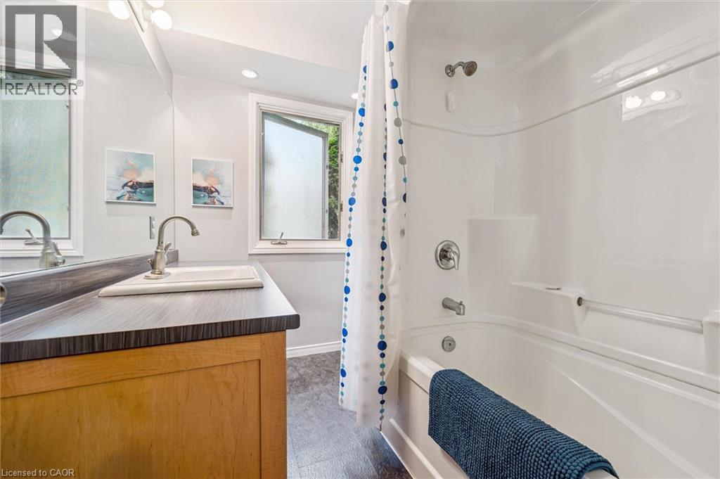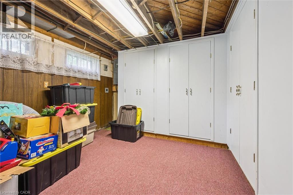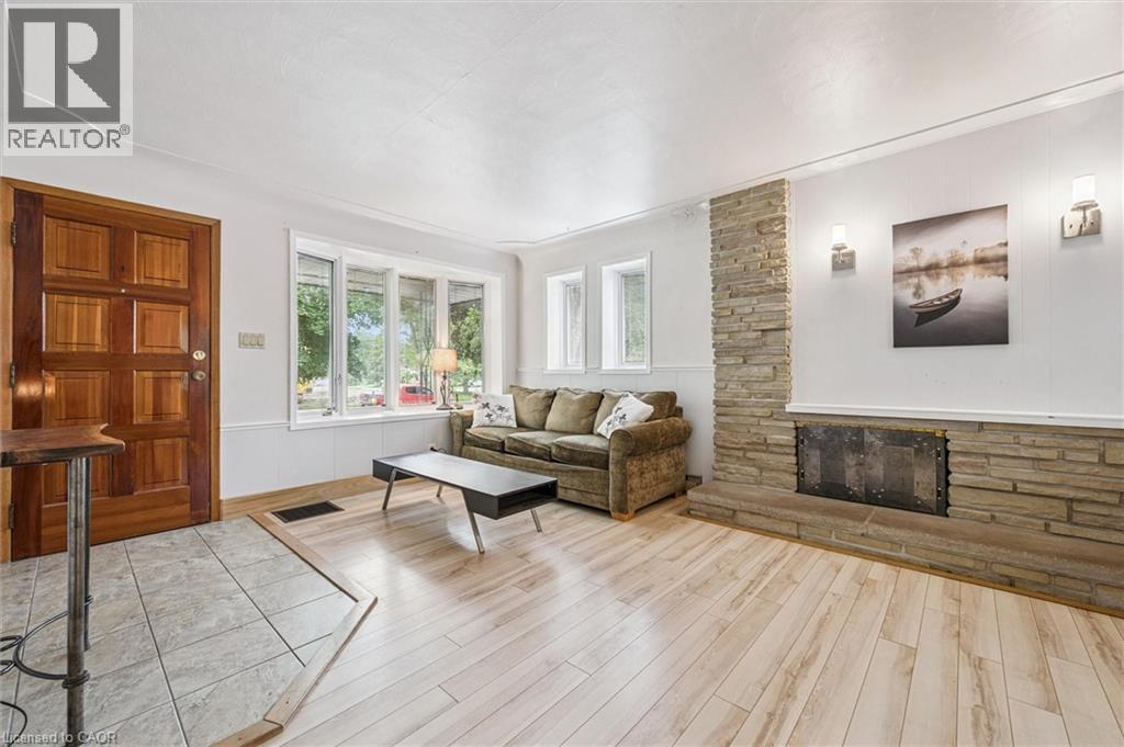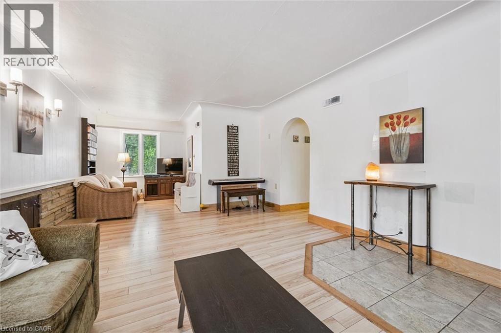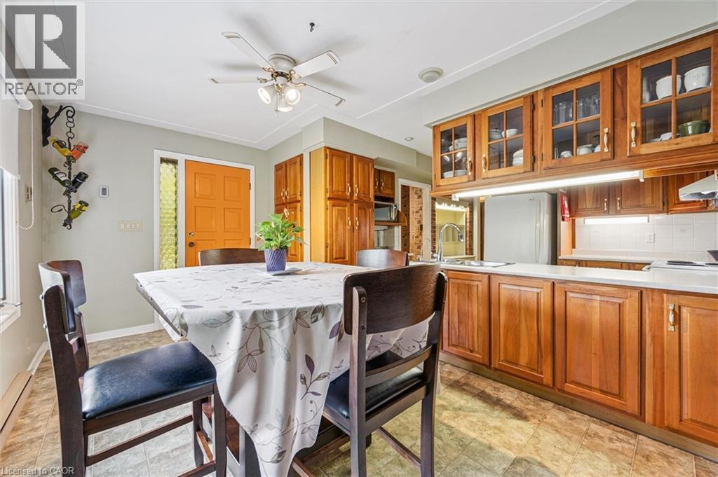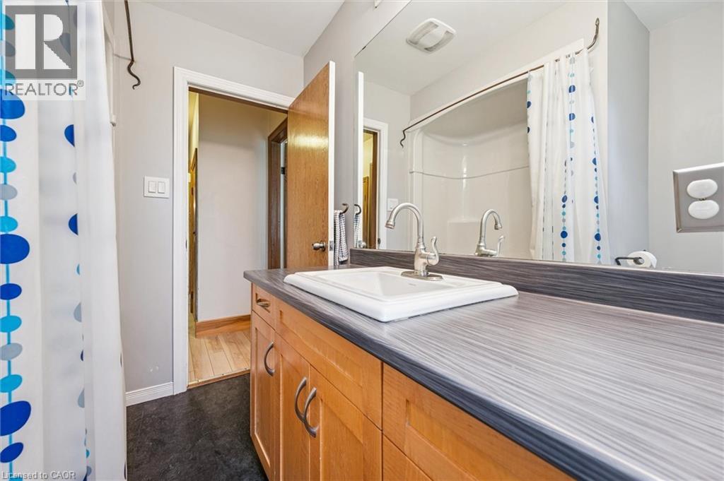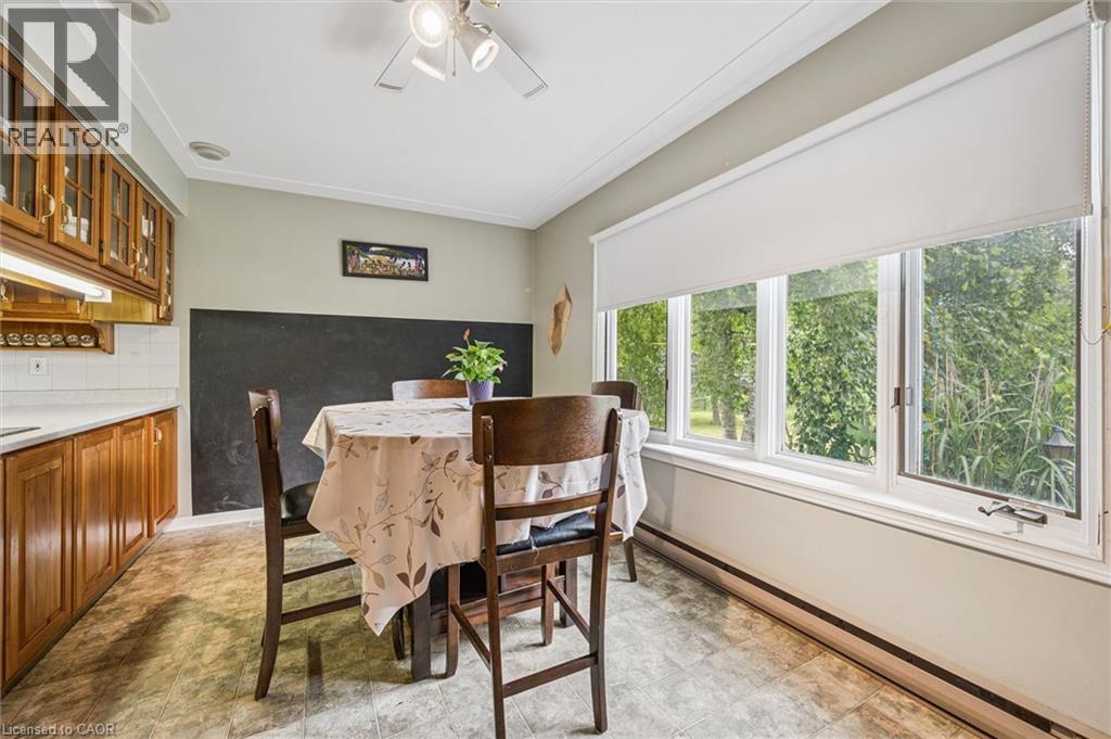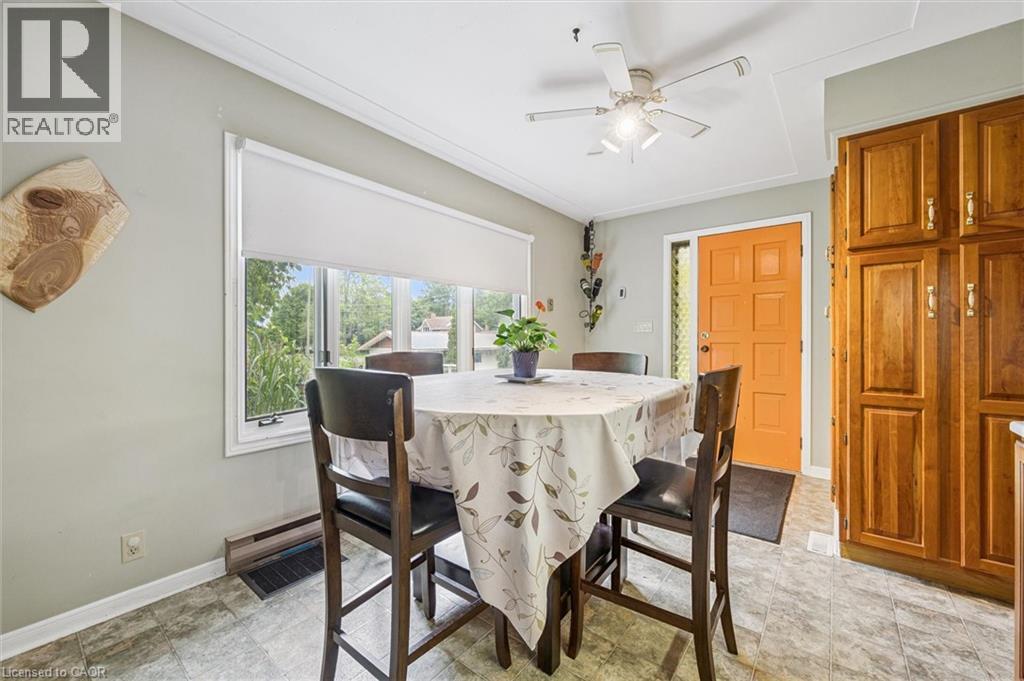 Welcome to the quaint Village of Winterbourne. This 3 bedroom, 2 bathroom bungalow is situated on almost 1/2 an acre on a quiet tree lined Street. The large corner lot provides nice curb appeal with an extra long double driving leading to the triple car garage (21' x 29.3'). The hobbyist will definitely enjoy the benefit of this garage complete with a gas heater. Plenty of space to get creative or take your activity to the detached workshop, with hydro, in their own backyard! Inside the home you will find a cozy main floor layout offering a ceramic entrance and newer laminate flooring throughout (2011). The three bedrooms are situated off a central hallway as well as the 4 piece bathroom, which was updated in 2010. The kitchen has cherry cabinetry open to the large dining space with a large bay window overlooking your private backyard. There is a garden door that provides access to the deck for easy BBQ'ING with gas hook-up. The basement is mostly finished and offers a walkup to the triple car garage off the laundry/utility room. A great spot for storing all your sporting equipment or outdoor items. The recreation room has a gas fireplace and is an ideal spot to relax in the evening. There is another room, which is ideal for a den or playroom. This property offers all the country vibes within 15 minutes from KW & Guelph. Easy highway accessibility for commuters!!! Don't miss your opportunity to own this peaceful piece of property in Winterbourne. (id:51300)