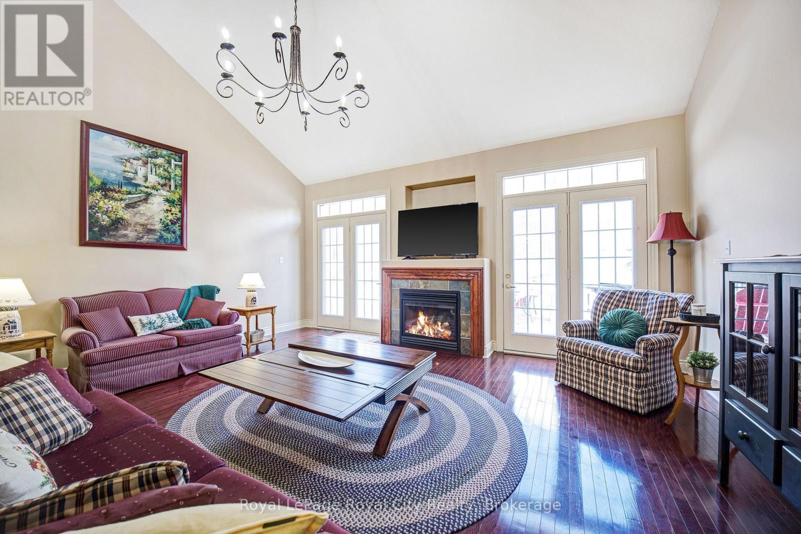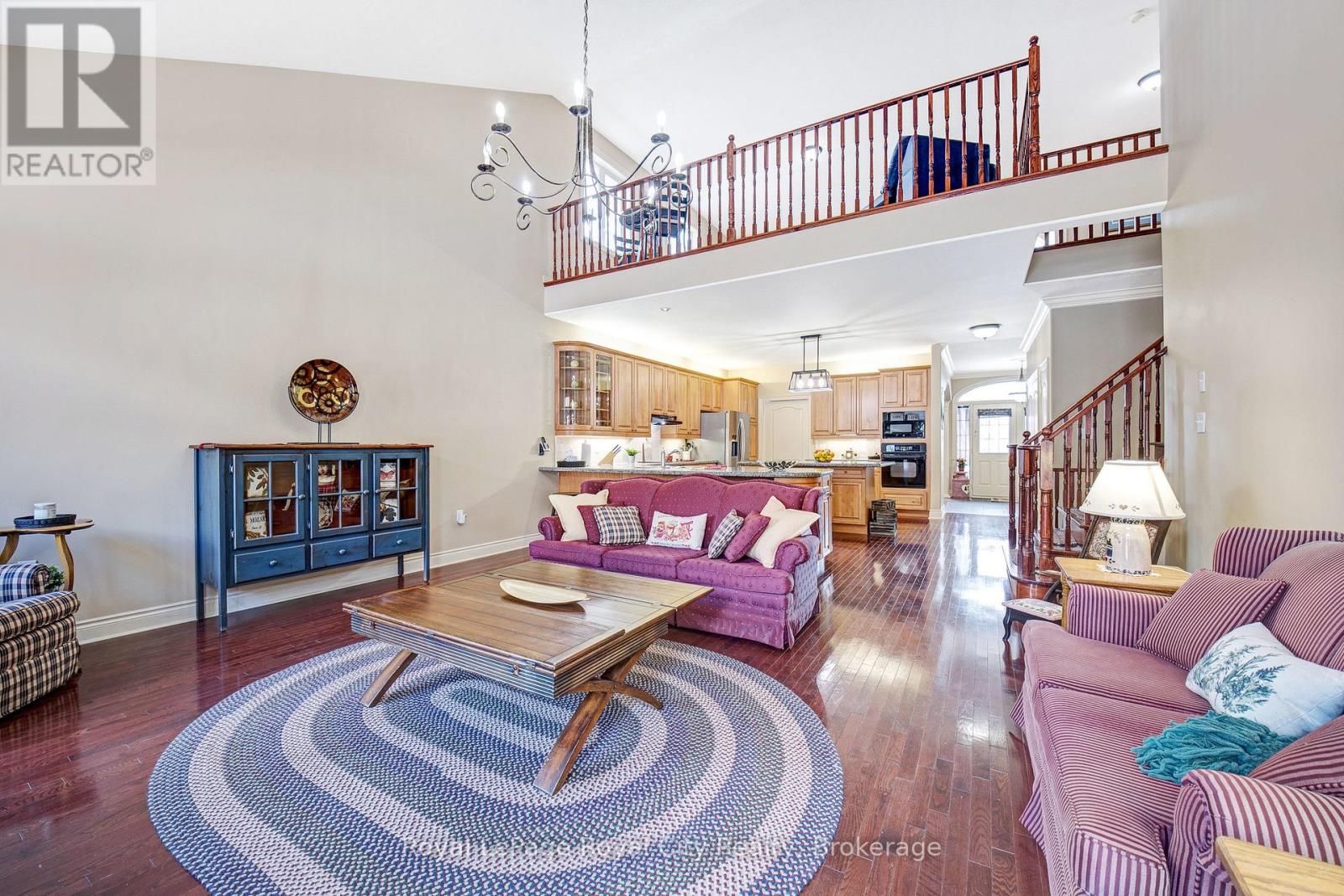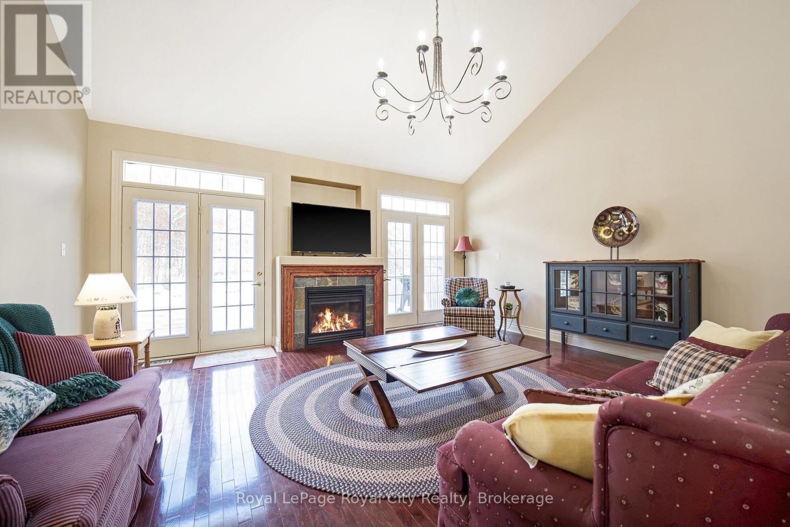 Nestled on one of Rockwood's most desirable streets, this highly sought-after bungaloft sits on an impressive 51 x 177-foot lot backing onto tranquil natural surroundings. The home offers a spacious, open-concept design beginning with a welcoming front foyer that flows into a bright and elegant dining room, complete with a butler's door leading into a large, well-appointed kitchen featuring built-in appliances. The adjoining living room is both airy and inviting, showcasing vaulted ceilings that open to the loft above, a cozy gas fireplace, and double doors leading to a new back deck with beautiful views of the private yard and greenspace beyond. The main floor includes a generous primary suite with a walk-in closet and luxurious five-piece ensuite, along with a second bedroom, a full bath, and convenient main floor laundry. Upstairs, the spacious loft offers just under 400 square feet of open-concept living space-ideal as a family or media room-along with a third bedroom and another full bath. The lower level remains unfinished, providing exceptional potential for future customization. A double-car garage with excellent ceiling height adds practicality and value, perfect for additional storage or even a potential lift. Set in a peaceful and highly regarded neighbourhood, this home blends comfort, space, and timeless design with a picturesque backdrop of natural beauty. (id:51300)