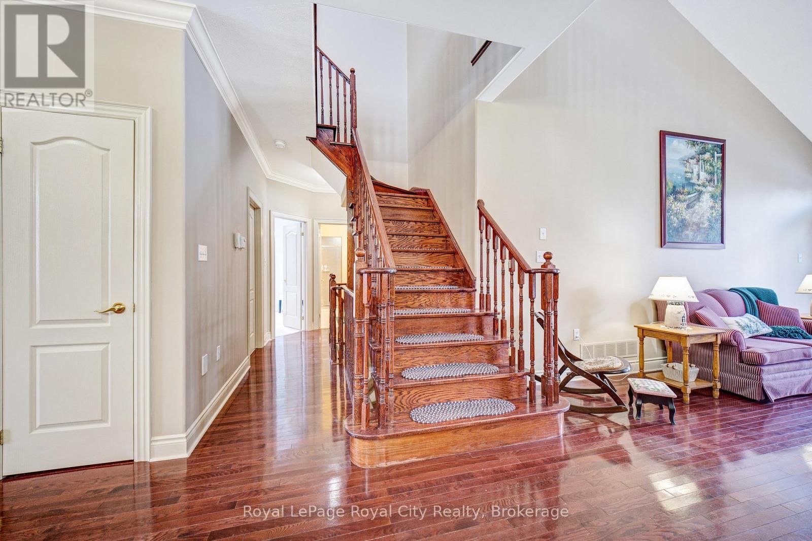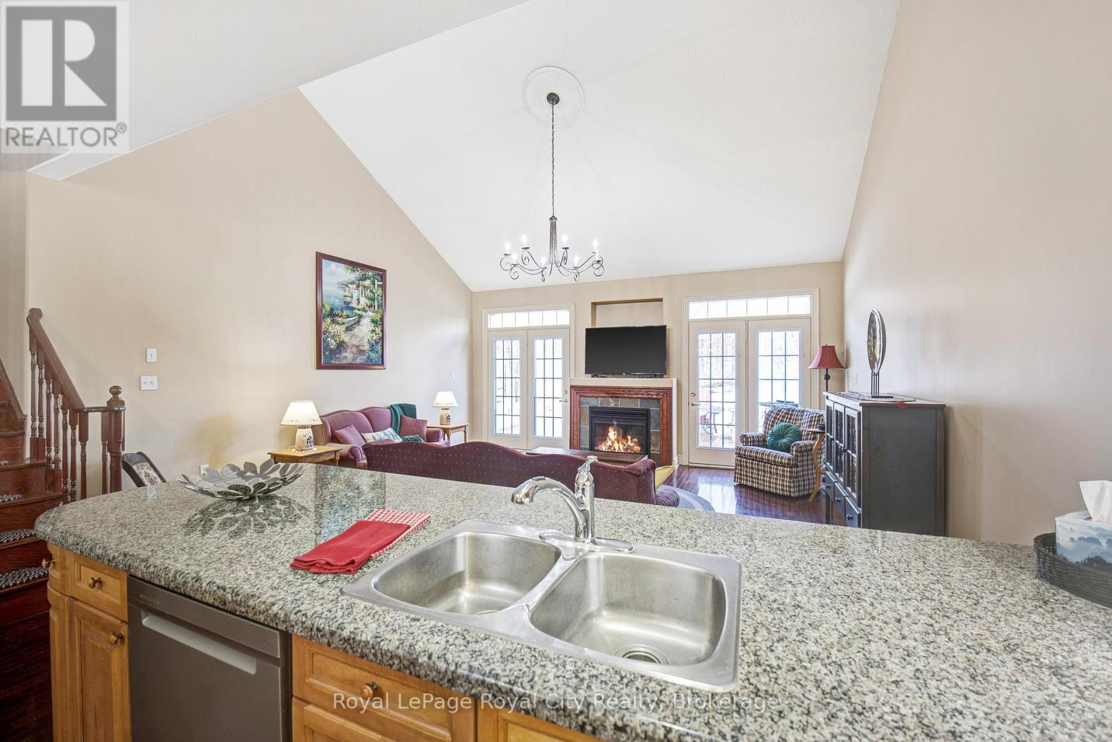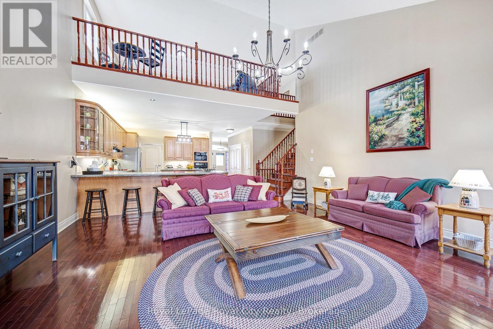 Nestled on one of Rockwood's most desirable streets, this highly sought-after bungaloft sits on an impressive 51 x 177-foot lot backing onto tranquil natural surroundings. The home offers a spacious, open-concept design beginning with a welcoming front foyer that flows into a bright and elegant dining room, complete with a butler's door leading into a large, well-appointed kitchen featuring built-in appliances. The adjoining living room is both airy and inviting, showcasing vaulted ceilings that open to the loft above, a cozy gas fireplace, and double doors leading to a new back deck with beautiful views of the private yard and greenspace beyond. The main floor includes a generous primary suite with a walk-in closet and luxurious five-piece ensuite, along with a second bedroom, a full bath, and convenient main floor laundry. Upstairs, the spacious loft offers just under 400 square feet of open-concept living space-ideal as a family or media room-along with a third bedroom and another full bath. The lower level remains unfinished, providing exceptional potential for future customization. A double-car garage with excellent ceiling height adds practicality and value, perfect for additional storage or even a potential lift. Set in a peaceful and highly regarded neighbourhood, this home blends comfort, space, and timeless design with a picturesque backdrop of natural beauty. (id:51300)