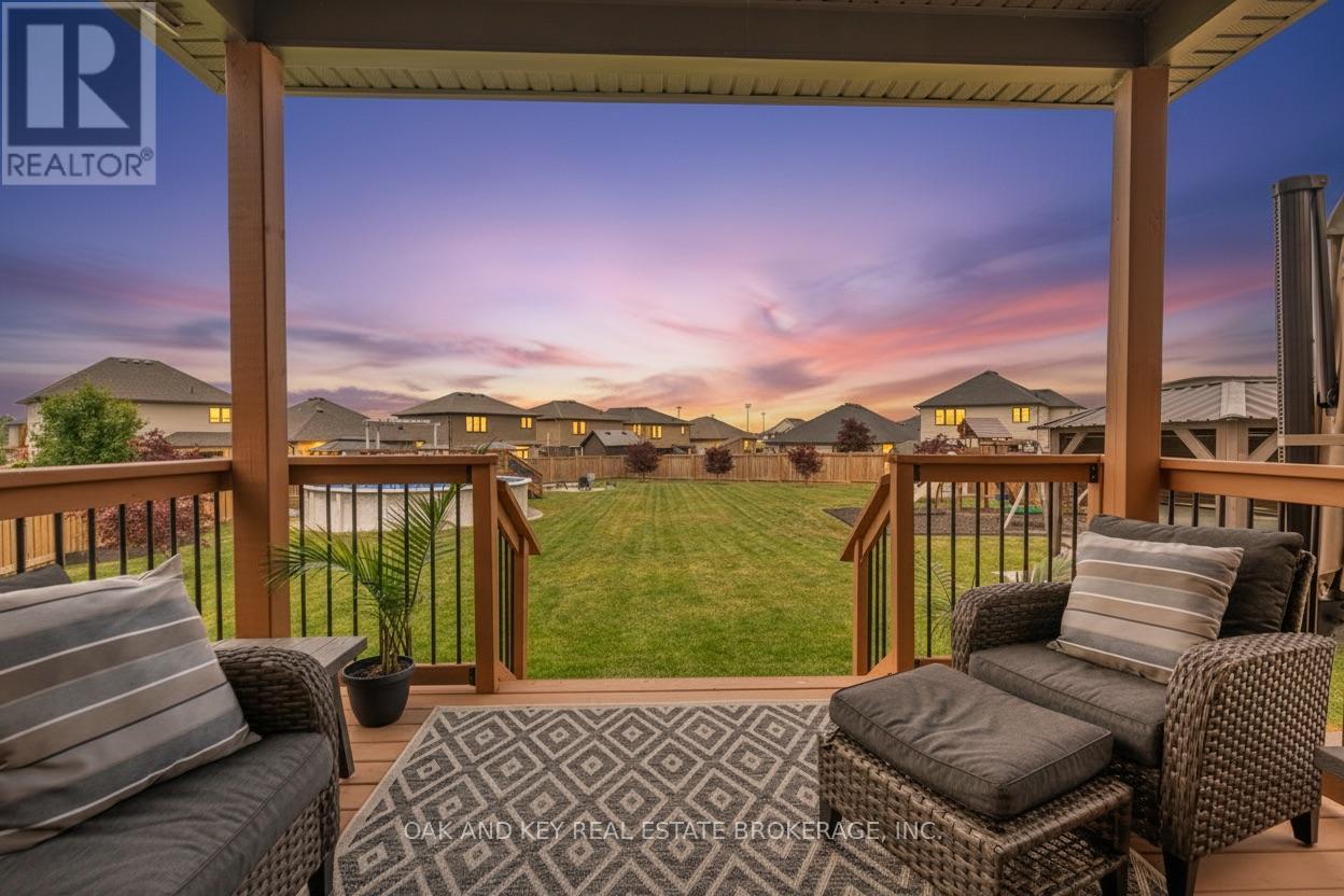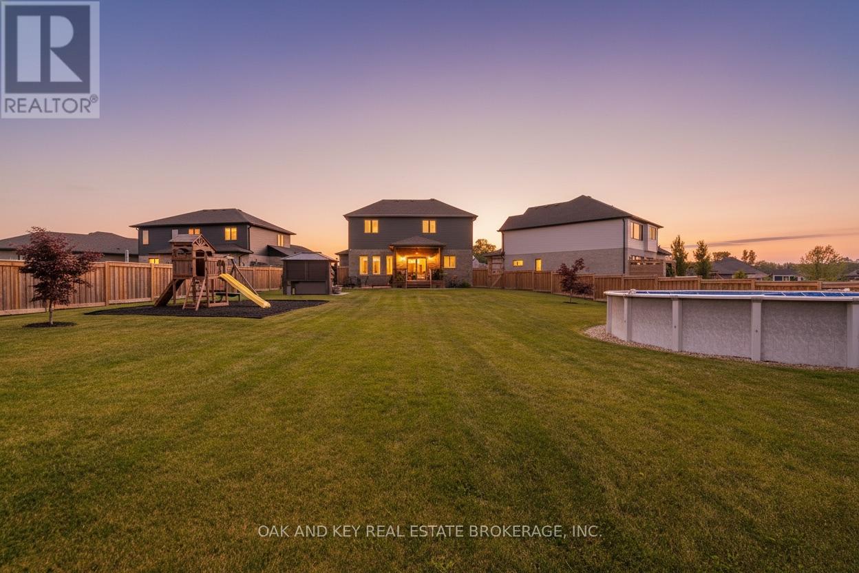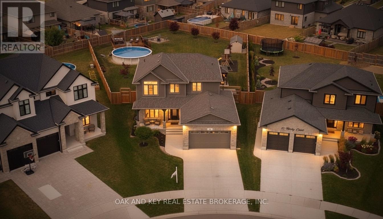 One of the largest residential lots you'll find in Lucan, golden sunsets, and a backyard built for memories - Welcome to 25 Hardy Court. Set on a rare 0.375-acre lot on a quiet family-friendly Court, this beautifully maintained 4+1 bedroom home offers the kind of space and outdoor lifestyle that's becoming increasingly difficult to find. The fully fenced backyard feels more like a private retreat, featuring northwest-facing sunset views, a saltwater pool, covered hot tub, fire pit area, and plenty of room for kids to run and play. Whether you're hosting summer pool days with friends or dreaming of building a backyard skating rink in the winter, this property offers a space that can be enjoyed in every season. Inside, the bright open-concept main floor is designed for both everyday living and entertaining, featuring 9-foot ceilings, built-in speakers, a walk-in pantry, and seamless access to the covered back patio. The newly finished basement adds incredible flexibility with a spacious rec room, wet bar, 3-piece bath, and an additional bedroom or multi-use space ideal for guests, a home office, or gym. Upstairs, the primary suite offers a peaceful retreat complete with a spa-inspired ensuite featuring heated floors and a generous walk-in closet. Located just 20 minutes from North London and walking distance to Lucan's public school, walking trails, and local amenities, this home offers the space families need and the lifestyle they're searching for. (id:51300)
