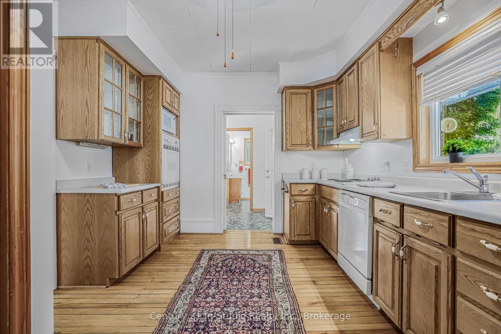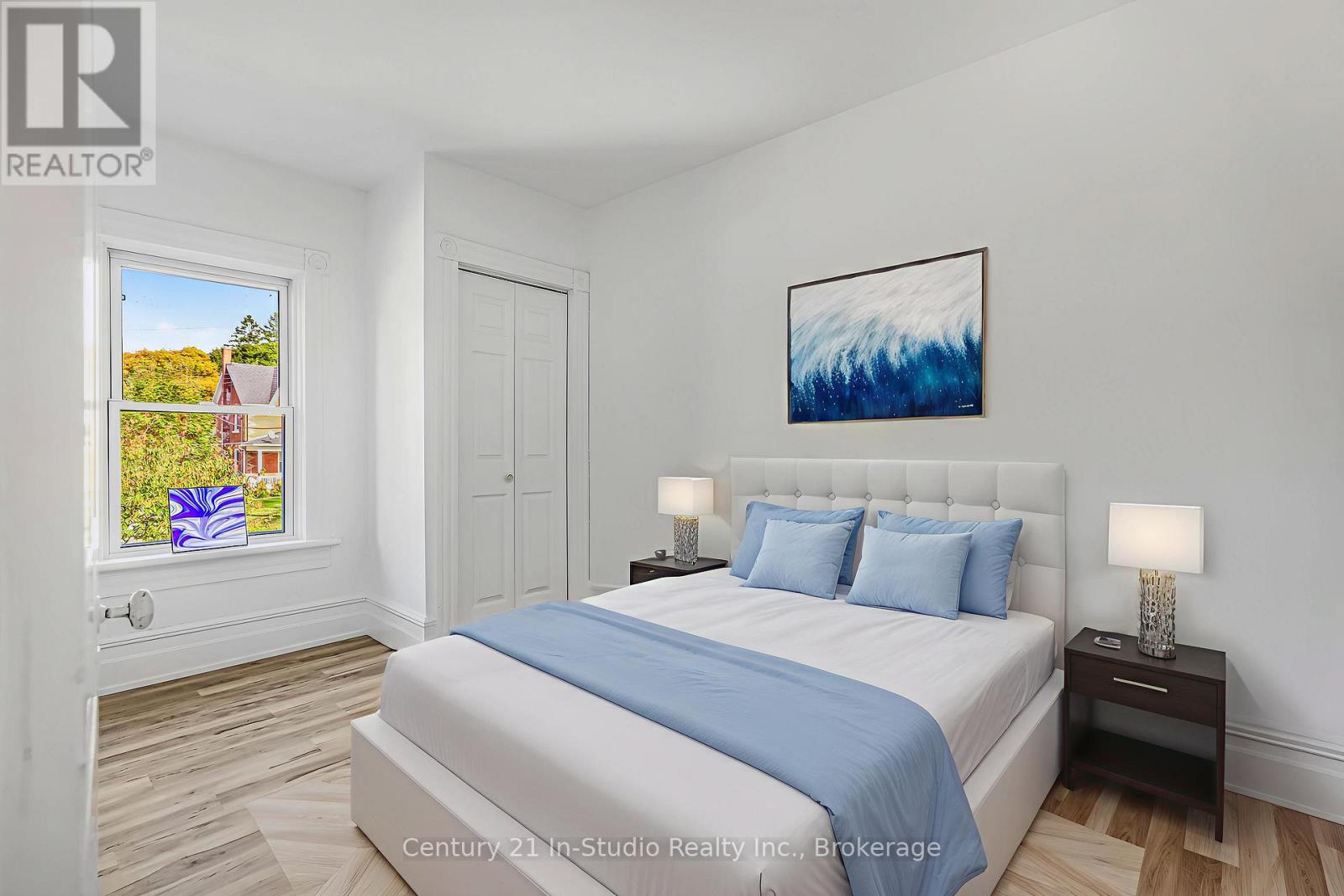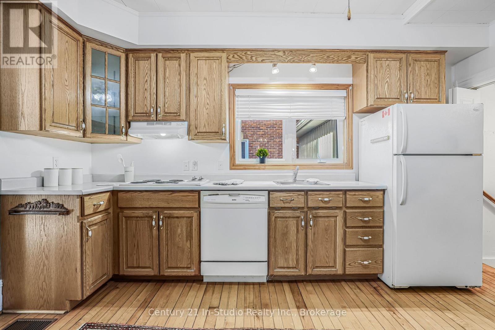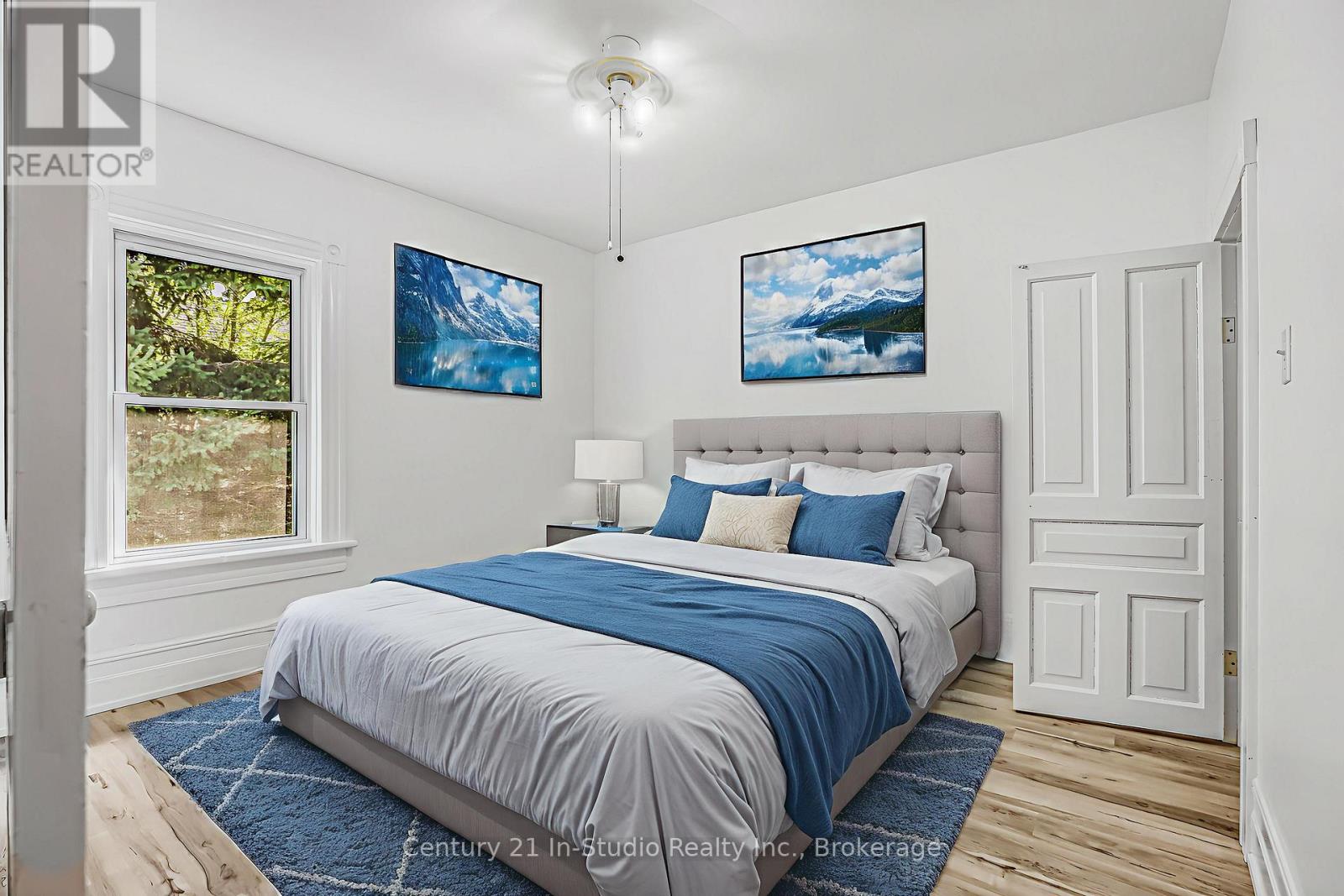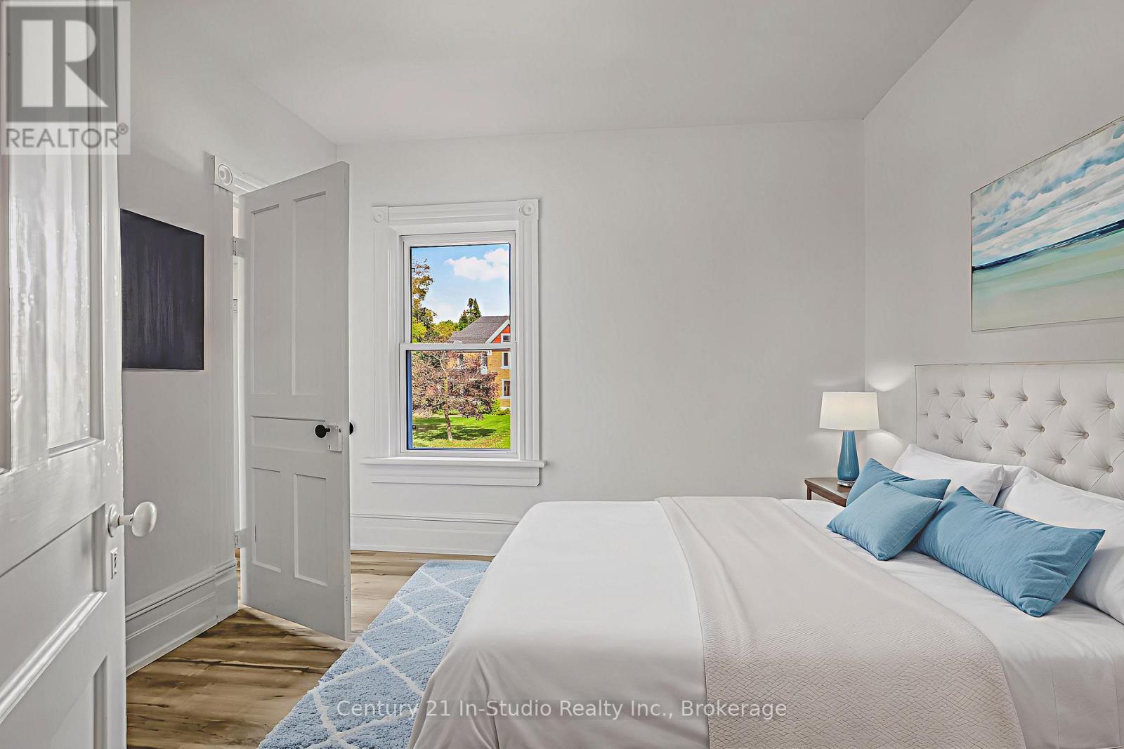 Charming Family Home on a Large Private Lot in Markdale! Set on an impressive 66' x 283' private lot in the welcoming community of Markdale, this beautifully maintained 2.5-storey home blends classic charm with modern comfort and plenty of space for the whole family. A covered front porch invites you inside to a warm, spacious main floor featuring a kitchen with solid wood cabinetry and a pocket door leading to the family room, where a cozy gas fireplace sets the perfect atmosphere for relaxed evenings. Formal living and dining rooms provide great spaces for entertaining, while a main-floor 3-piece bath and practical mudroom with a separate entrance add convenience. Upstairs offers three comfortable bedrooms and a bright 4-piece bath, with the insulated attic presenting exciting potential for a studio, office, or extra living space. The basement includes a walk-up to the backyard and the option for laundry on either level. Recent updates include a new shingled roof and several replaced windows. The home is serviced by municipal water and sewer, a forced-air natural gas furnace, and an owned hot water tank. An attached single-car garage with front and rear overhead doors provides easy access and storage, complemented by a paved driveway and additional paved area behind the garage.The fenced backyard is a private retreat with a deck, mature trees, and 2 garden sheds perfect for gardening, entertaining, or simply enjoying the outdoors. Located within walking distance to shops, parks, a new hospital, elementary school, arena, restaurants, and the library, this home offers true small-town convenience. Outdoor enthusiasts will love nearby Beaver Valley trails, waterfalls, golf courses, fishing spots, and skiing at Blue Mountain and Beaver Valley Ski Club. Full of warmth, character, and comfort, this charming property is ready to welcome its next owners. Schedule your private showing today! (id:51300)