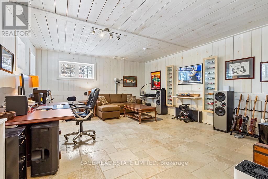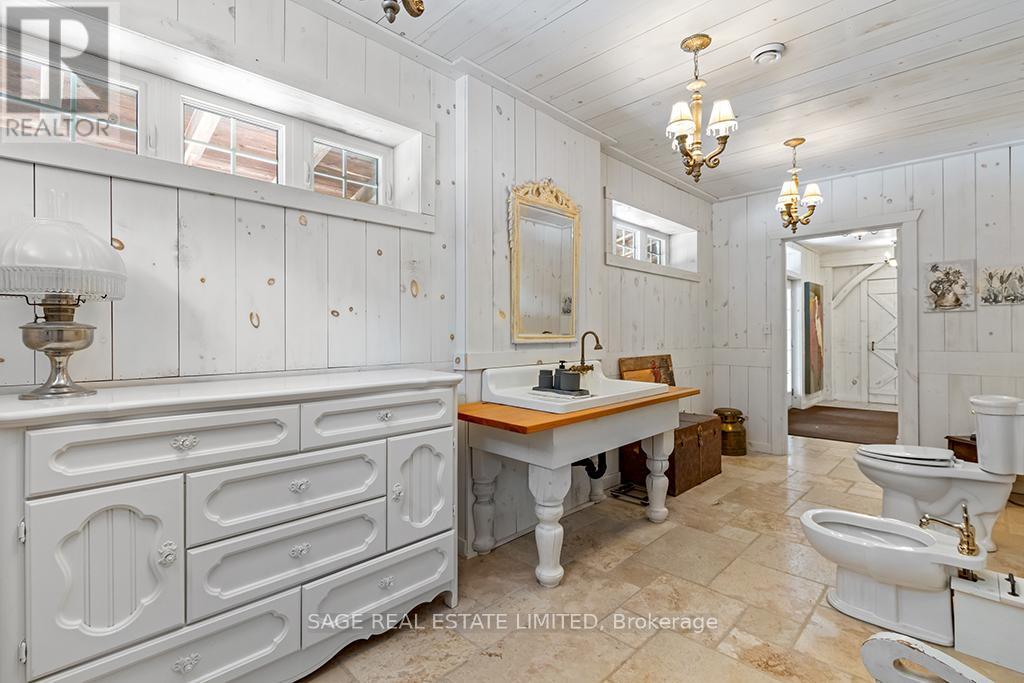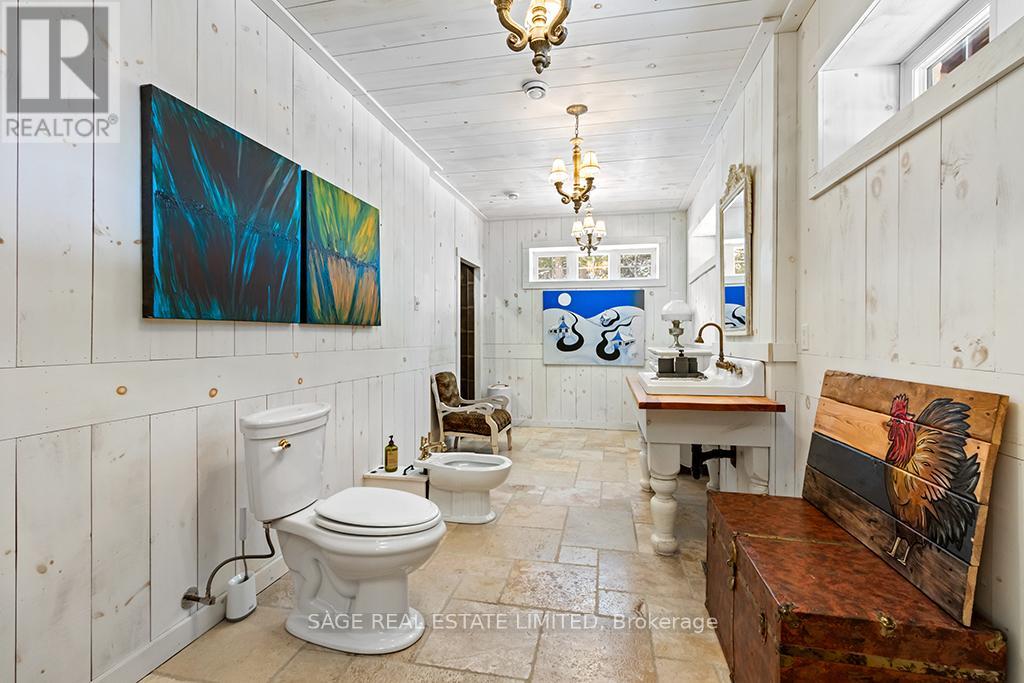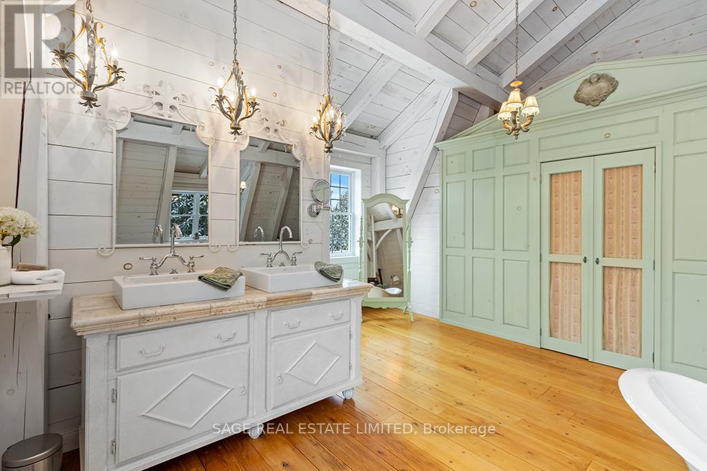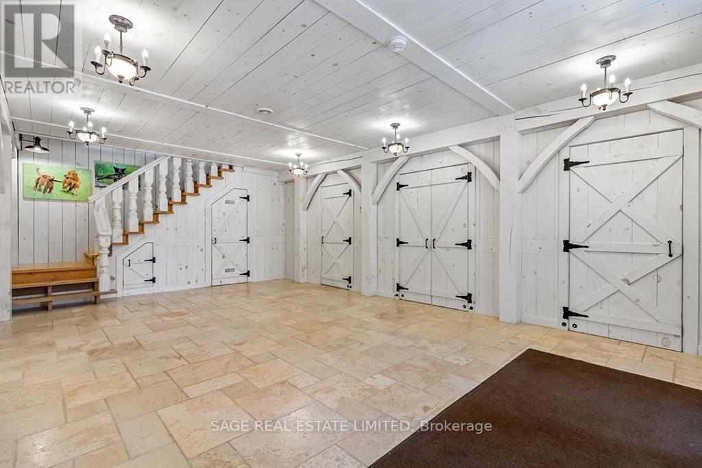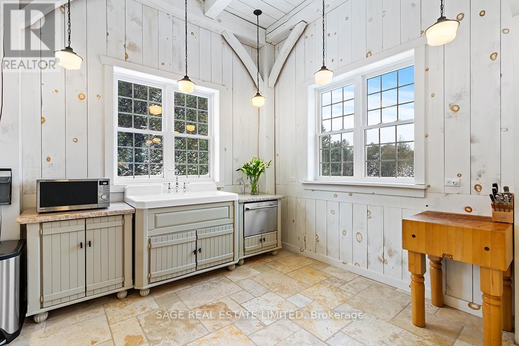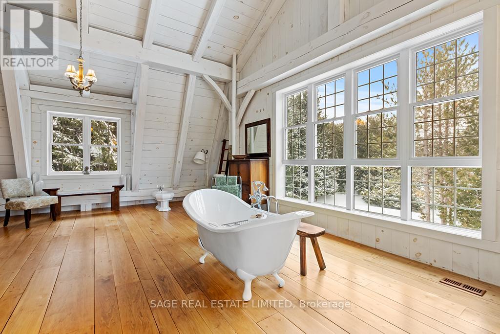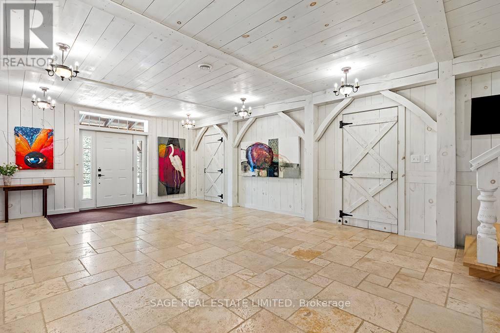 Imagine yourself arriving at your private country hideaway. You enter the gate and follow a winding, forested lane, crossing a gentle stream and passing a spring-fed swimming pond that guides you to your personal retreat. Leave the stress of the day at the roadside-you have arrived home.You are drawn to the striking post-and-beam residence, designed and built by master craftspeople who brought this dream home to life with uncompromising quality and extraordinary attention to detail.As you approach the front entrance, you're greeted by stunning stonework crafted from local aggregate. Step inside, and a limestone and pine entry hall envelops you in warmth and character. This level offers immediate access to two spacious rooms, a spa-like bathroom, a custom-finished walk-in coat closet, pantry, laundry, and utility spaces-each thoughtfully designed for both beauty and function.A solid wood staircase leads to the sun-drenched great room, where soaring 30-foot ceilings and panoramic views overlook your secluded forested estate. An exquisite marble fireplace invites you to linger, while the open-concept living and dining areas flow effortlessly, offering endless possibilities for creating inviting and intimate spaces.The bespoke grand kitchen is equally suited for large gatherings or quiet evenings at home. With ample space for multiple cooks, it features custom-built cabinetry, granite and live-edge countertops, premium appliances, and a sprawling natural wood island-each element showcasing the impeccable craftsmanship found throughout the home.The uppermost level is a private sanctuary-the pinnacle of space, comfort, and tranquility. The expansive primary bedroom and moon-lit bath offer a serene retreat, where you can see out, yet remain entirely unseen.All of this is beautifully encapsulated beneath a crimson red gambrel roof, complemented by classic shiplap pine cladding-an unforgettable country estate that feels both timeless and deeply personal. (id:51300)