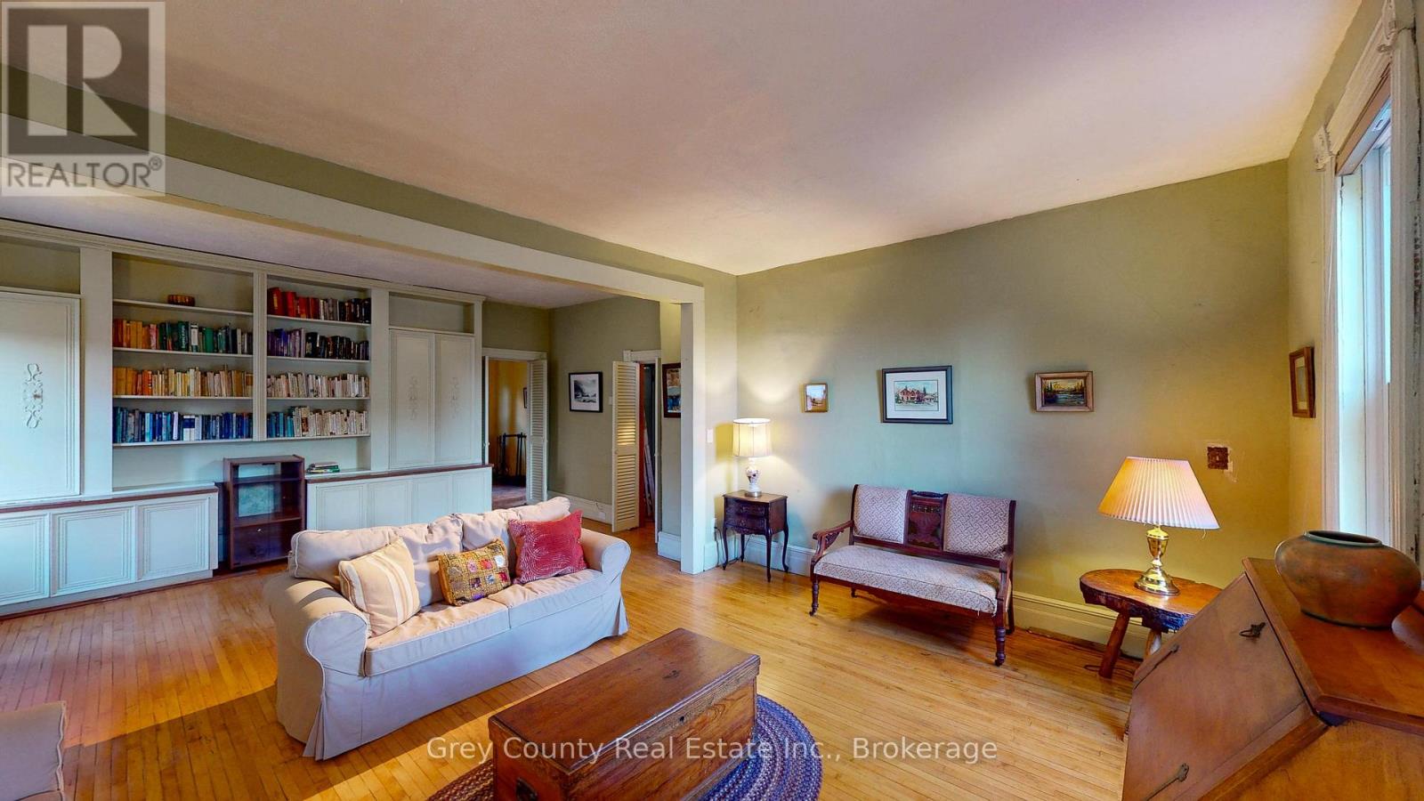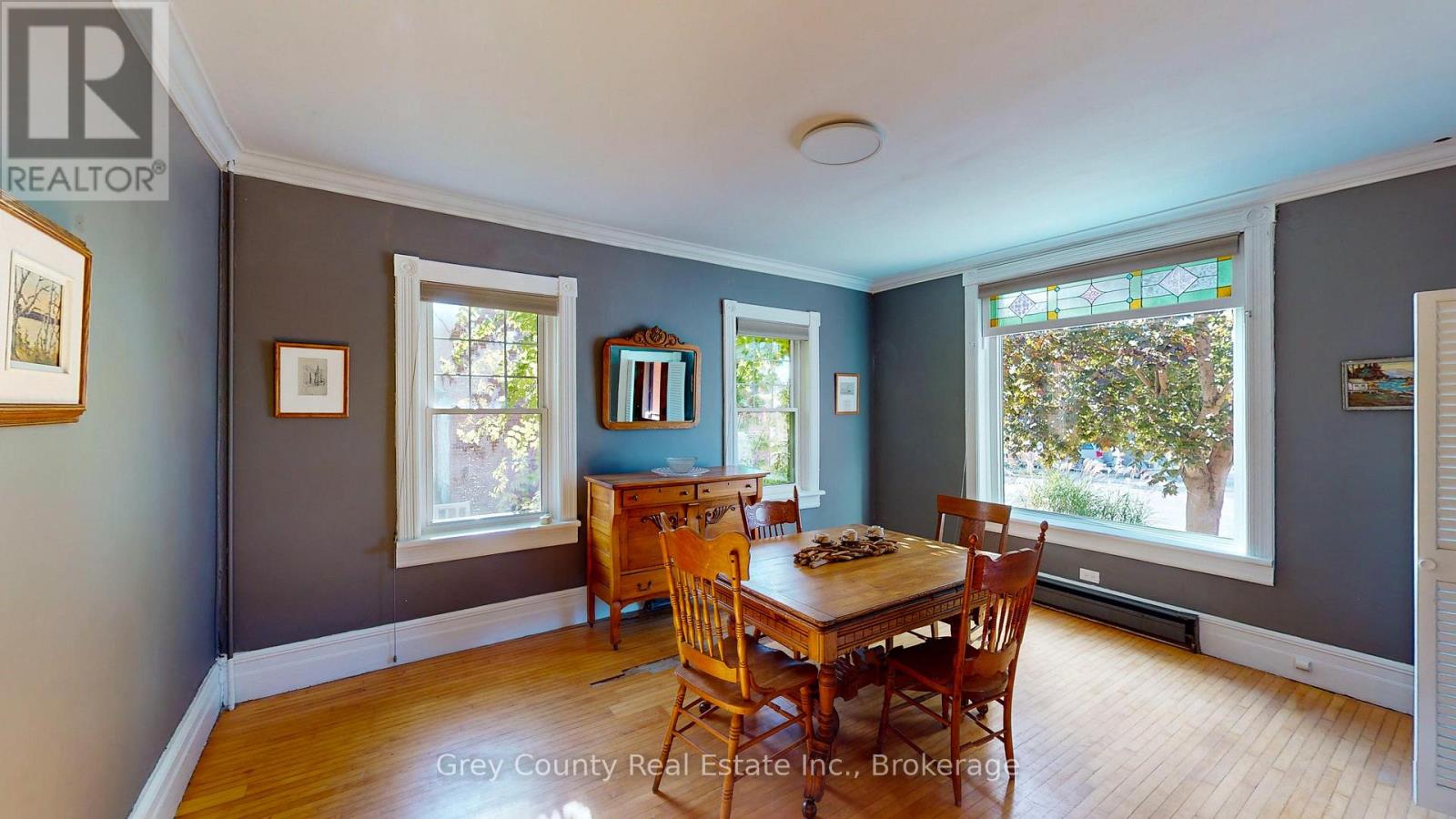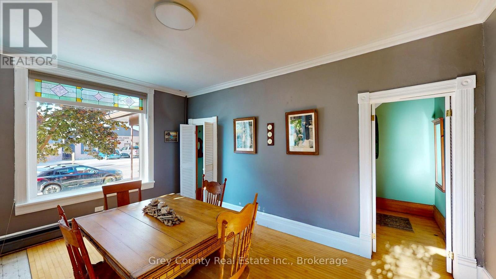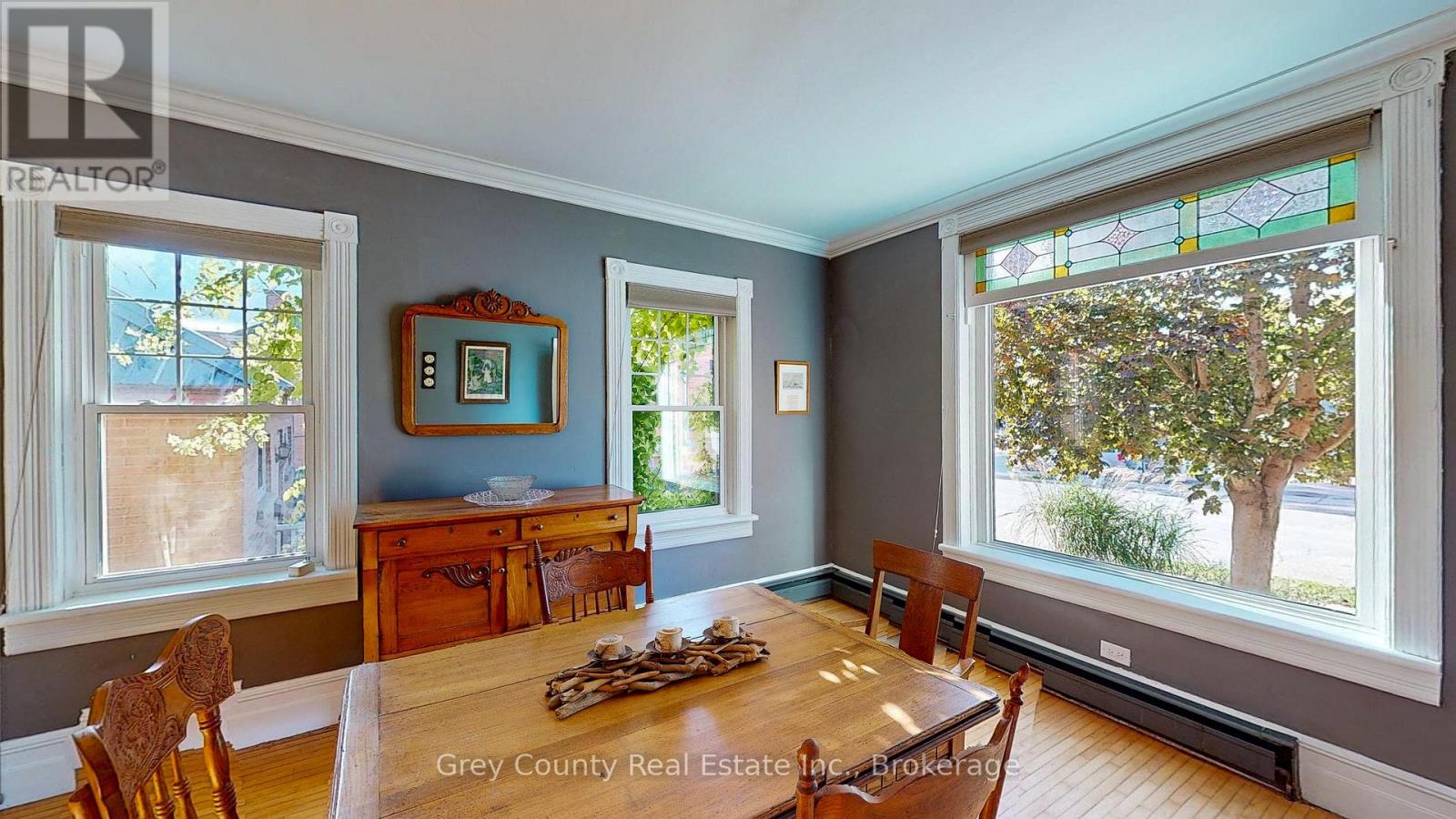 Built in 1875, this home is filled with the timeless charm of its historic roots. Step inside and you're welcomed by an inviting foyer that hints at the character waiting within. To your right, the sunlit dining room feels instantly comforting-ideal for family meals or hosting friends. Original hardwood floors, soaring ceilings, and detailed moldings carry the warmth of the past into every room. The spacious living room is full of potential, whether you're curling up with a book or entertaining a crowd. Built-in bookshelves create a cozy nook for reading or showcasing cherished keepsakes. The kitchen blends old-world charm with modern convenience, offering space for casual dining around an eat-in table, and a traditional woodstove that brings rustic comfort and winter warmth. This updated kitchen is a dream for anyone who loves to cook. A four-piece bath and laundry on the main level add everyday ease. Just off the kitchen, a flexible room-once an office-could become a sun-drenched studio, den, or quiet retreat, thanks to its south-facing windows and views of the backyard. Step outside to a peaceful patio overlooking a lovingly maintained garden with flowering trees, perennials, and your own veggie patch. The charm continues upstairs with a second full bath, and four large bedrooms. The property also includes 27 Main St E., a separate detached building with its own entrance. Formerly a doctor's office, bakery, and bookkeeping service, it's ideal for a home-based business, in-law suite, or income-generating rental. Perfectly located just steps from Markdale's main intersection, you're within walking distance to the new hospital, school, and all downtown conveniences. (id:51300)