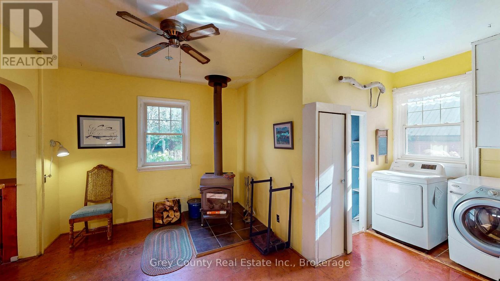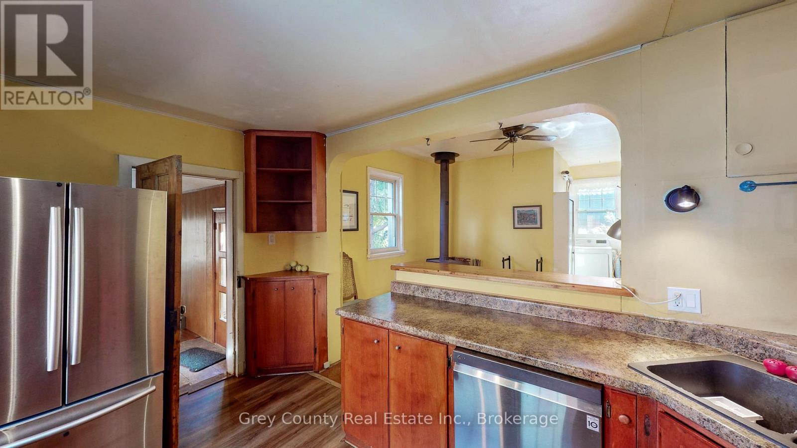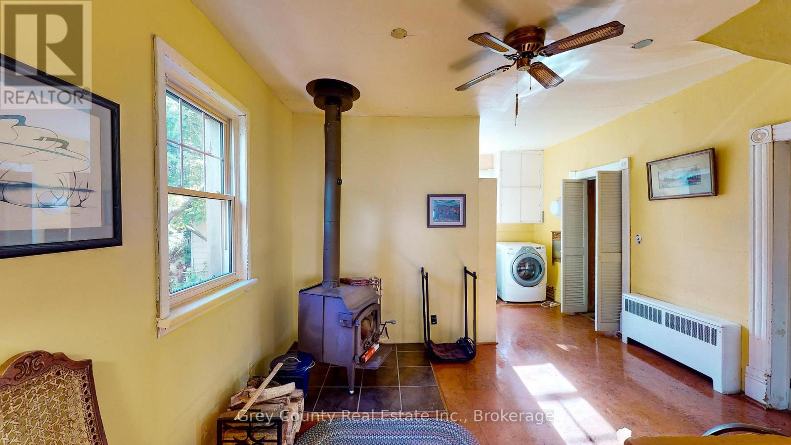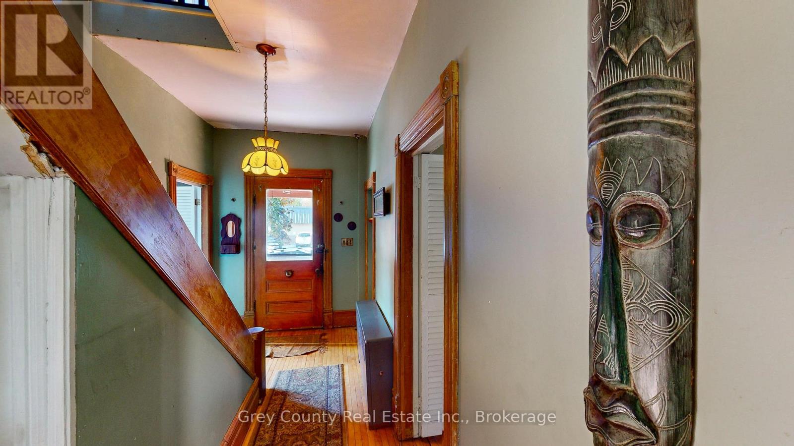 Built in 1875, this home is filled with the timeless charm of its historic roots. Step inside and you're welcomed by an inviting foyer that hints at the character waiting within. To your right, the sunlit dining room feels instantly comforting-ideal for family meals or hosting friends. Original hardwood floors, soaring ceilings, and detailed moldings carry the warmth of the past into every room. The spacious living room is full of potential, whether you're curling up with a book or entertaining a crowd. Built-in bookshelves create a cozy nook for reading or showcasing cherished keepsakes. The kitchen blends old-world charm with modern convenience, offering space for casual dining around an eat-in table, and a traditional woodstove that brings rustic comfort and winter warmth. This updated kitchen is a dream for anyone who loves to cook. A four-piece bath and laundry on the main level add everyday ease. Just off the kitchen, a flexible room-once an office-could become a sun-drenched studio, den, or quiet retreat, thanks to its south-facing windows and views of the backyard. Step outside to a peaceful patio overlooking a lovingly maintained garden with flowering trees, perennials, and your own veggie patch. The charm continues upstairs with a second full bath, and four large bedrooms. The property also includes 27 Main St E., a separate detached building with its own entrance. Formerly a doctor's office, bakery, and bookkeeping service, it's ideal for a home-based business, in-law suite, or income-generating rental. Perfectly located just steps from Markdale's main intersection, you're within walking distance to the new hospital, school, and all downtown conveniences. (id:51300)