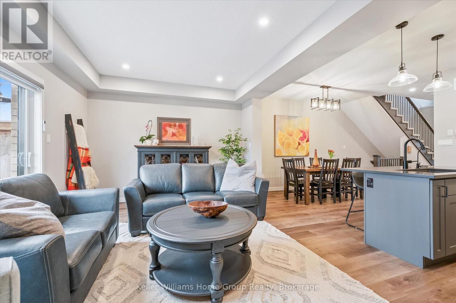 $315.68 MonthlyWelcome to South River in Elora. Elora is not just a place to live. It is a community and a lifestyle. Welcome to this beautifully designed townhome built by highly regarded builder Granite Homes, located in the sought after South River community in one of Canada's most picturesque villages. Offering approximately 1,756 square feet of living space and more than $50,000 in upgrades, this home combines thoughtful design with modern comfort. Step inside to a bright open concept main floor designed for everyday living and entertaining. The kitchen features quartz countertops, stylish backsplash, a large island, and upgraded LG appliances. It flows into the dining and living areas highlighted by a cozy electric fireplace. A sliding door leads to a large private deck that is perfect for relaxing or hosting guests. Upstairs you will find three bedrooms, including a primary suite with a private ensuite featuring a glass shower. A main bath with tub serves the additional bedrooms, and the second floor laundry with upgraded LG washer and dryer adds convenience. A standout upgrade in this home is the open and finished staircase leading to the walkout basement, creating a bright transition to the lower level. The walkout basement remains unfinished and offers excellent potential for a future rec room, home office, or additional living space, complete with a bathroom rough in. From here, step outside to a private patio and yard that provides another outdoor space to enjoy. Additional features include a single attached garage and numerous upgrades that elevate this home beyond builder standard. At South River, nature and lifestyle come together. Enjoy nearby walking trails, explore the shops and restaurants of downtown Elora just a short walk away, and appreciate the convenience of a modern hospital and everyday amenities nearby. Experience the charm and strong sense of community that make Elora one of Canada's most beloved villages. (id:51300)