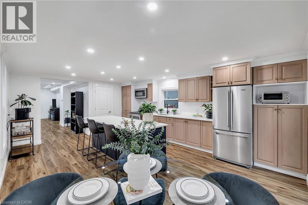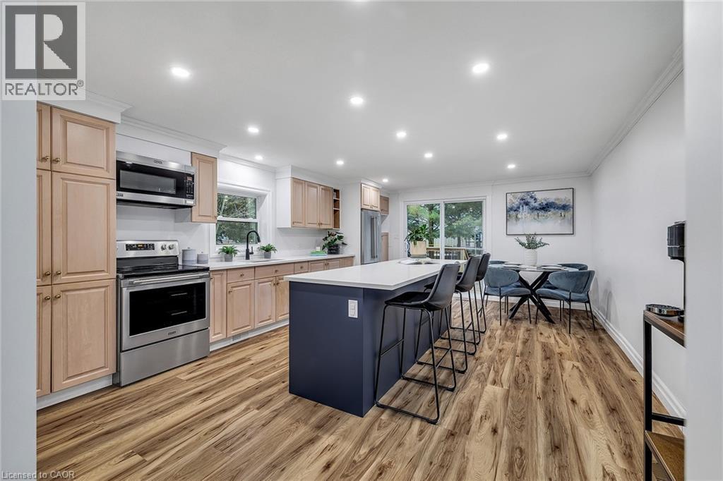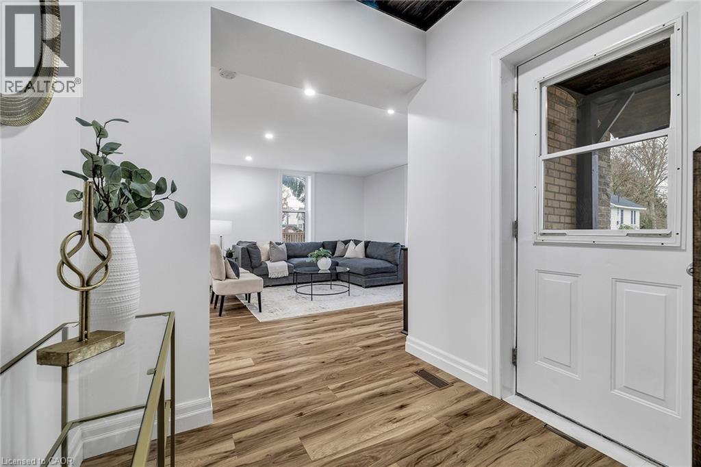 Welcome to this charming and fully renovated brick family home in the heart of Brussels. Fresh, bright, and thoughtfully designed for comfort and everyday living, this home combines modern style with timeless character. COMPLETELY RENOVATED FROM TOP TO BOTTOM, it features all-new electrical and plumbing systems (2021), updated ductwork with added vents upstairs, and new insulation in key areas, including spray foam around the foundation and in the attic (2021). The main floor has been completely gutted and rebuilt with new joists, leveled subfloors, and new flooring throughout the kitchen, bathroom (2025), entryway, and living room (2021). The spacious eat-in kitchen showcases brand-new cabinetry, stainless steel appliances, and quality finishes, with a large island that’s perfect for cooking and gathering (2021). A new patio door leads to the newly built deck (2025) with a poured foundation around the kitchen addition (2021), ideal for entertaining, summer BBQs, or relaxed evenings outdoors. Also on the main level, you’ll find a convenient bathroom with laundry, a versatile family room or formal dining area, and a cozy living room filled with natural light and plenty of pot lights to keep things bright and welcoming. Following the renovated stairs (2025), you'll be met with two comfortable bedrooms and an updated bathroom (2021) (with plumbing ready for a future shower if desired), plus additional storage to suit a growing family’s needs. Step outside to a large private backyard featuring a shed and firepit area—a perfect retreat for relaxation and play. The home’s exterior has been refreshed with all the windows being replaced (2021), a new black front door and awning, and repointed brickwork completed in (2023), giving it stylish curb appeal that complements its modern interior. Located in a friendly small-town community close to schools, parks, and amenities, this move-in-ready home offers a perfect blend of character, function, and value. (id:51300)