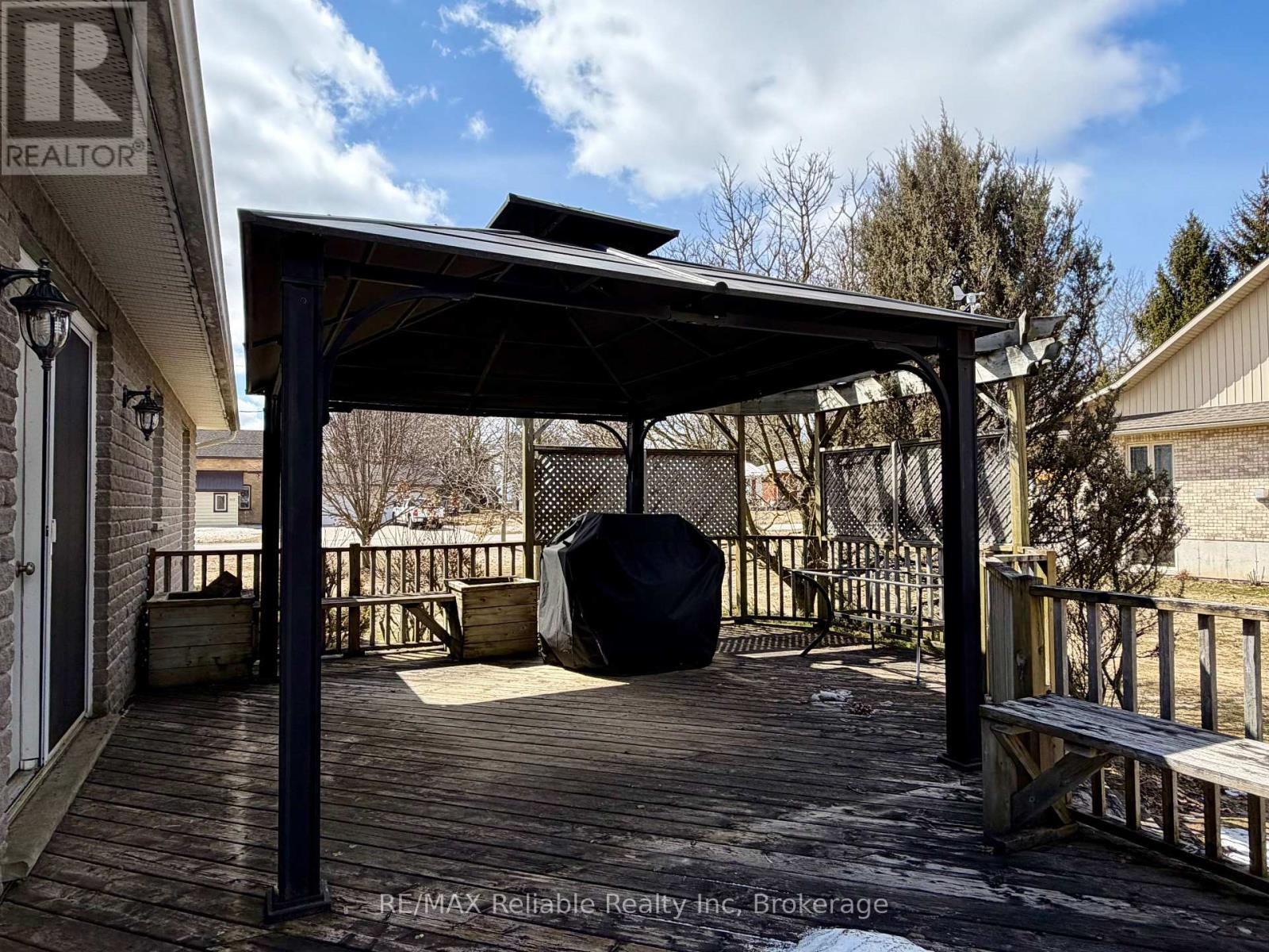 Welcome to 277 Morris St in the charming village of Blyth! Situated on a spacious corner lot, this attractive brick bungalow offers exceptional curb appeal and a functional layout. The sprawling front porch invites you inside to a welcoming foyer, where you will find a convenient 3-pc bathroom. This home features a bright and open concept design, connecting the kitchen, dining and living areas, that is perfect for both everyday living and entertaining. The sunken living room features a stunning tray ceiling and an abundance of natural light from the large picture window. The kitchen is equally impressive, complete with access to the attached garage, ample cabinetry, counter space, an island and a beautiful cathedral ceiling. From the dining area, step out onto the deck, an ideal spot for summer BBQs or relaxing under the gazebo. Just beyond, a private patio area offers even more outdoor living space to enjoy. The main floor includes two bedrooms. The primary bedroom has its own 4-pc ensuite bathroom. Downstairs, the fully finished basement expands your living space with a generous sized rec room featuring a wet bar, a 2-pc bathroom and plenty of storage throughout. The utility room includes laundry, an additional shower and a convenient walk-up to the attached garage. Outside, the concrete driveway provides ample parking and the garden shed offers extra storage space for tools and outdoor equipment. Don't miss your chance to make this home your own. Call today for more information or to book a private showing! (id:51300)