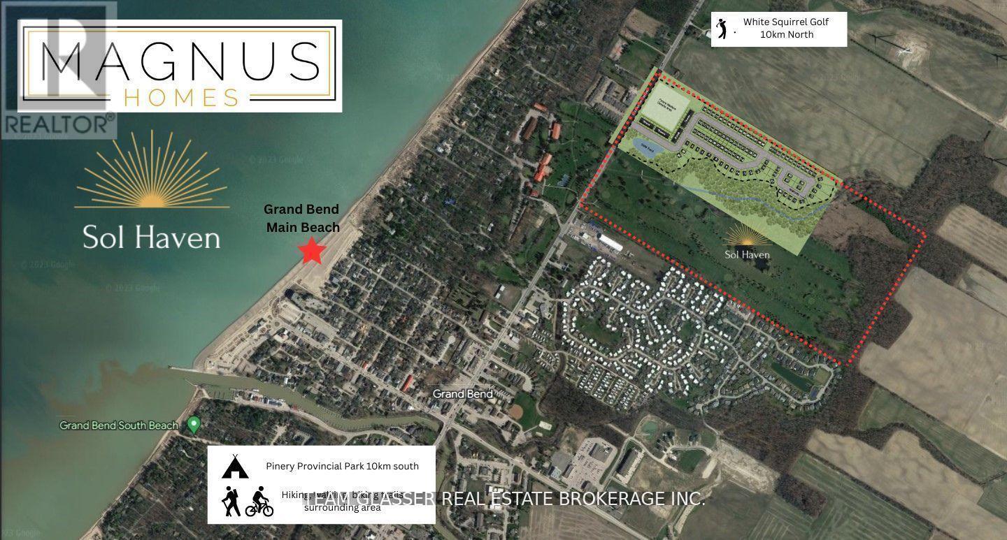 TO BE BUILT -Welcome to the Magnus Townhomes at Sol Haven in sought after Grand BEND! **PHOTOs are of other Magnus builds* These One Floor (Interior Unit) are 1272 sq ft FREEHOLD bungalows (you OWN the land and building) are perfect for an active lifestyle-10 minutes walk to golf, restaurants, cafe's or beach! Tastefully decorated in neutral tones, with quality finishings by Magnus Homes. Open concept great room with lots of windows, higher ceilings(plus high ceilings in the basement, perfect for an in-law suite.), gas fireplace, engineered Hardwood floors, and patio doors to the garden. Sit around quartz top island for entertaining or food prep with open dining area. Primary bedroom is good-sized with walk-in closet and double sink ensuite with Tub & tiled and glass shower. The 2nd bedroom could also be a den or office at the front with a 3 piece close-by. Single car garage with drive off the road-YOU own the land - No Condo Fees!! The Lower-level is left for your finishing - or have Magnus Homes finish it to your needs. *NOTE - This is Interior but End units Stairs from the garage to the basement allows for multi-generational living or separate suite for your guests!* The bungalow model is ready to show and Street towns will be ready mid-Dec '25 and into 2026! Plan your retirement or part-time beach community lifestyle! Book your Townhome today. 10% required to hold one for you. This is the first of 4 blocks available. Closings for these townhomes in late 2025. The Beauty of Lake Huron and it's best Beach - Experience that Vacation feeling everyday and don't miss another Sunset! Come and see our model at 4 Sullivan St. in Sol Haven Grand Bend! A Bungalow model is now ready to see! (id:51300)