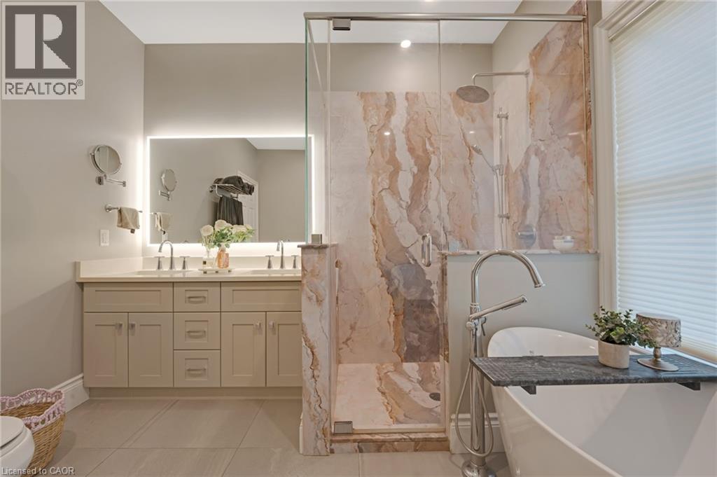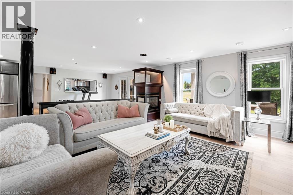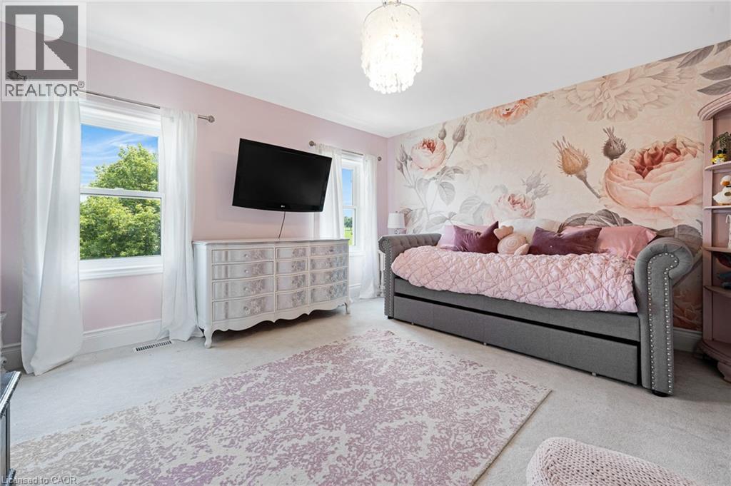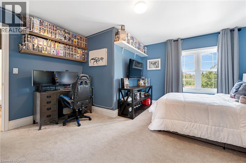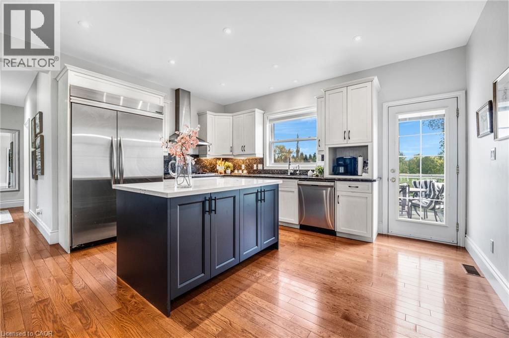 Welcome to 2865 Herrgott Road, a rare opportunity to own a Langdon Hall inspired estate on nearly 5 acres of pristine countryside. Evoking the timeless charm of Ontario’s iconic country retreat, this exceptional property blends refined architecture, privacy, and modern comfort, offering over 4,400 sq. ft. of beautifully finished living space with 5 bedrooms and 5 bathrooms. Step inside to a welcoming main entry that opens to a bright, thoughtfully designed layout perfect for both everyday living and elegant entertaining. The eat-in kitchen features a gas range, oversized refrigerator, and walk-in pantry, with direct access to an expansive composite deck with glass railing, the perfect setting for morning coffee or evening gatherings. The great room is filled with natural light, while the formal dining room with gas fireplace offers timeless charm. The main floor primary suite is a private retreat overlooking the backyard, complete with walk-in closet and a luxurious ensuite. Upstairs, two bedrooms each feature private ensuites and walk-in closets, while a versatile loft opens to an upper balcony with sweeping countryside views. The finished walkout lower level offers endless versatility, featuring a large rec room with custom wet bar, two additional bedrooms, an office or gym, and in-floor heating with gas fireplace, making this space ideal for multi-generational living. A grand concrete circular driveway leads to a 4 car garage, including a heated lower level garage with interior access. With A1 zoning, the expansive property offers endless potential-from adding a pool or creating your own resort-style retreat. Ideally located just 10 minutes to Waterloo, 8 minutes to Wellesley, and 15 minutes to Kitchener, this luxury estate offers the perfect blend of tranquility and convenience. Surrounded by nature, it's more than a home—it’s a true piece of paradise offering a lifestyle you won’t want to miss, in one of Waterloo Region’s most sought-after rural settings. (id:51300)