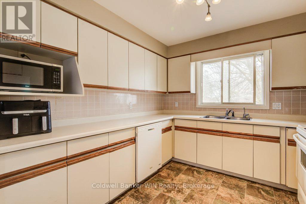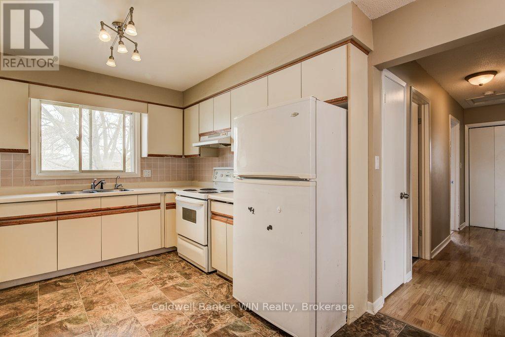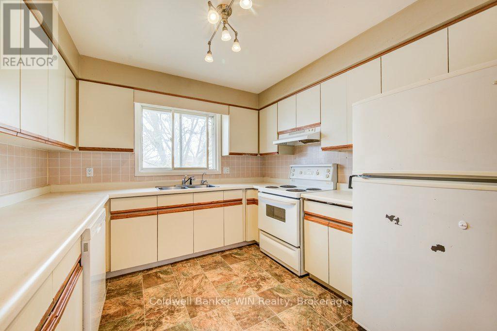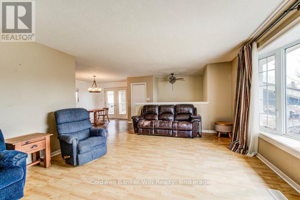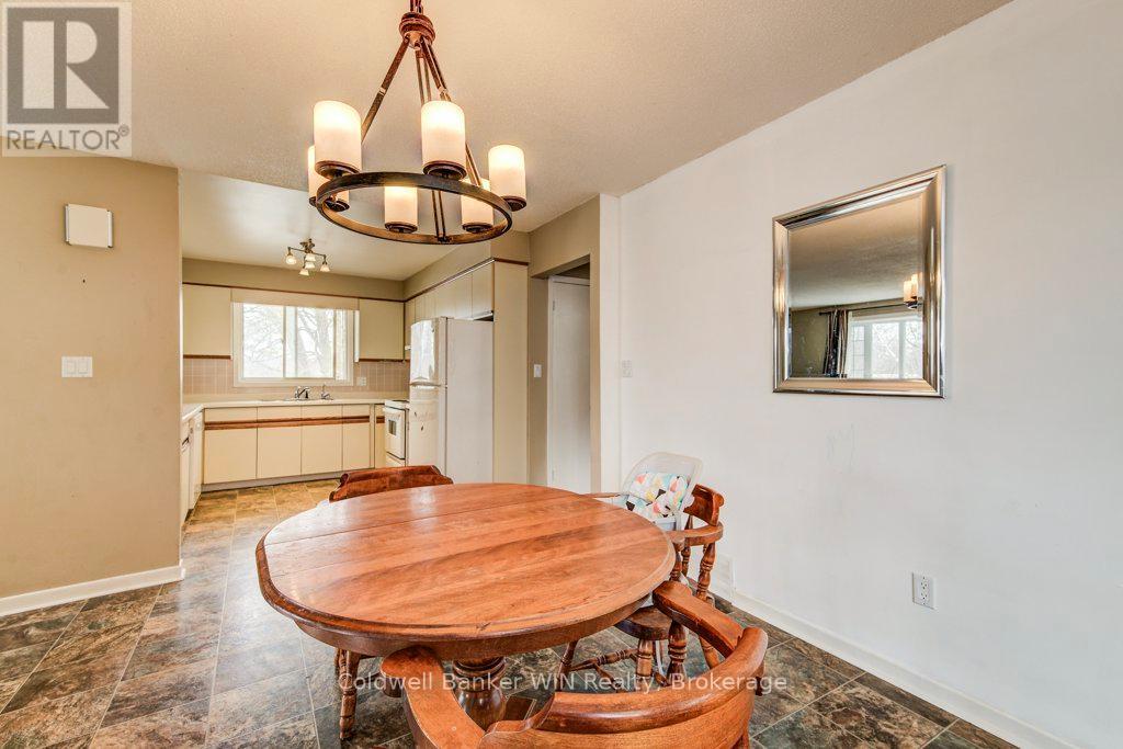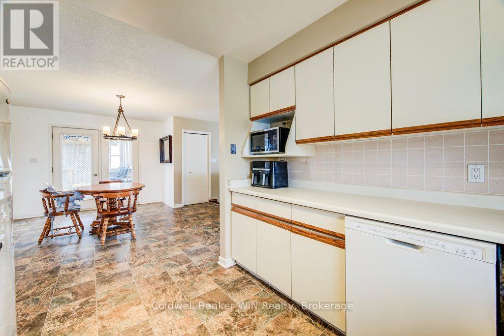 Tucked away on a quiet dead-end cul-de-sac in the heart of Mount Forest, this well-maintained raised bungalow offers comfort, versatility, and an ideal family-friendly location. Featuring a single-car attached garage, this home is perfect for those seeking both convenience and privacy. The bright and inviting main floor showcases a spacious living room, along with a functional kitchen and dining area complete with French doors leading out to a partially covered, two-tier deck which is perfect for entertaining or relaxing outdoors. Three generously sized bedrooms and a 4-piece bathroom complete the main level. Downstairs, the fully renovated (2020) in-law suite offers excellent potential for multigenerational living. This space includes a cozy living room, eat-in kitchenette, recreation room, a bedroom, and a modern 3-piece bathroom with a tiled shower and cheater ensuite access. Thanks to the raised bungalow design, the basement enjoys large windows that fill the space with natural light. A shared utility room with laundry adds to the home's practicality. Outside, the fully fenced yard provides a safe and private space for children and pets to play. Just steps away, you'll find a fantastic multi-use municipal outdoor area featuring a walking track, baseball diamonds, soccer fields, a playground, and a splash pad that is perfect for enjoying those warm summer days. This is a wonderful opportunity to own a versatile home in a peaceful setting, close to all the amenities that make Mount Forest such a great place to live. (id:51300)