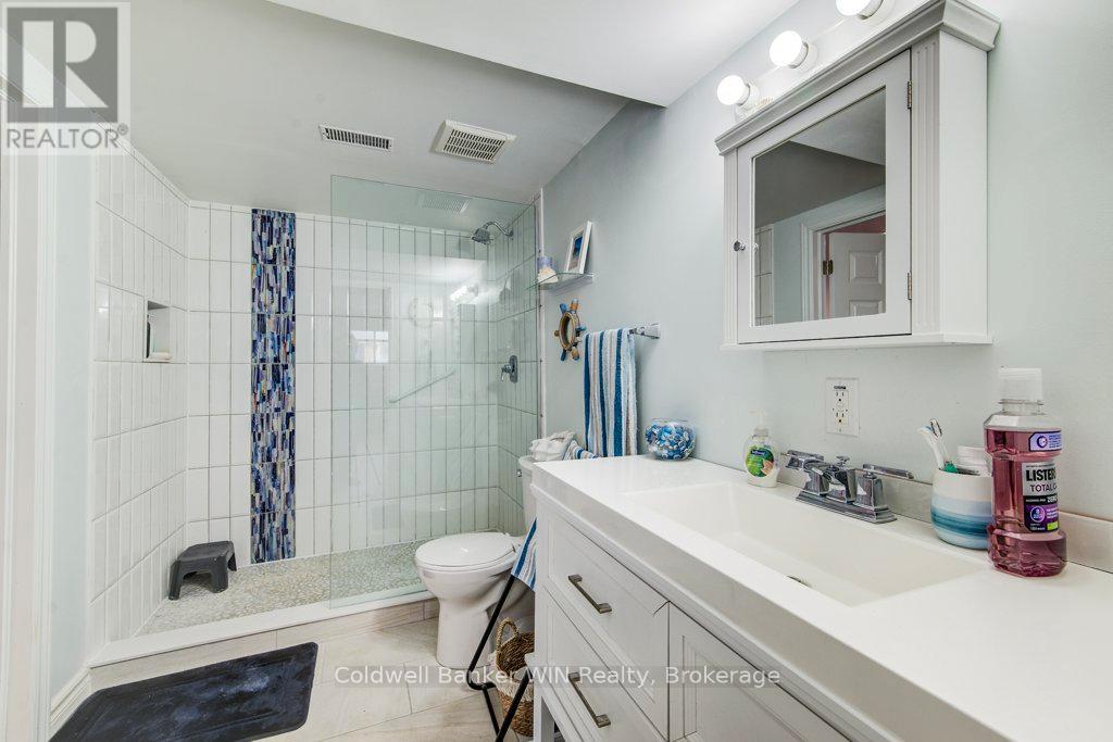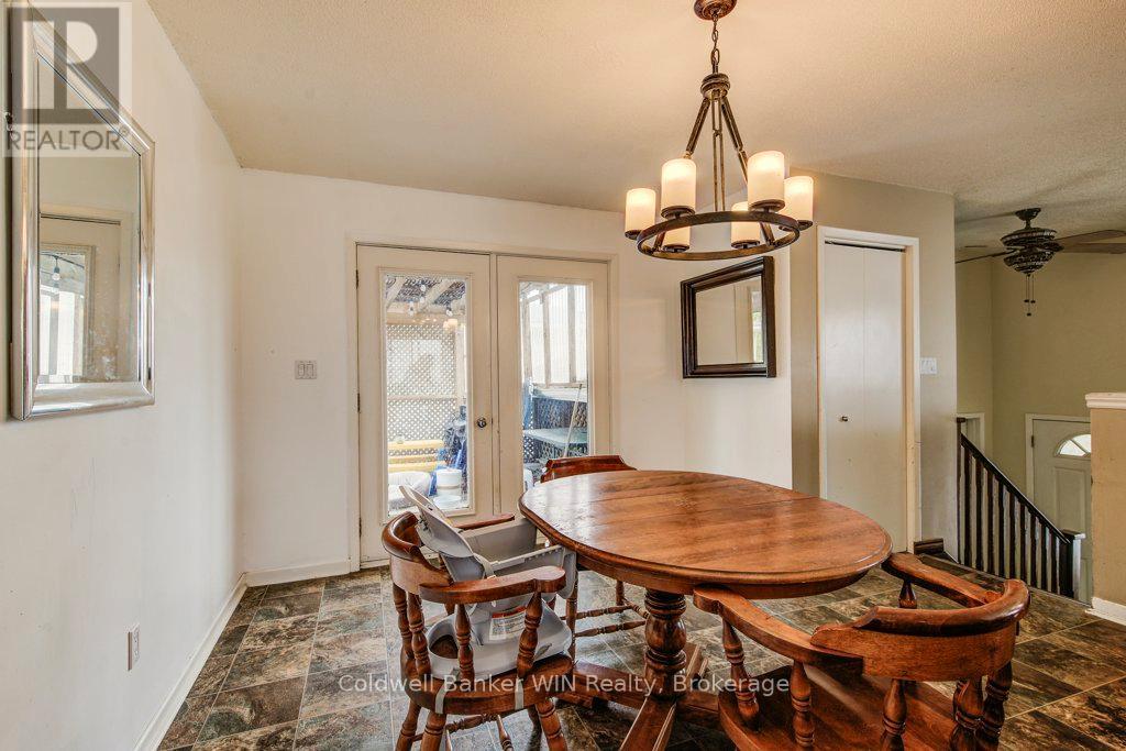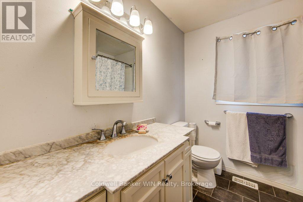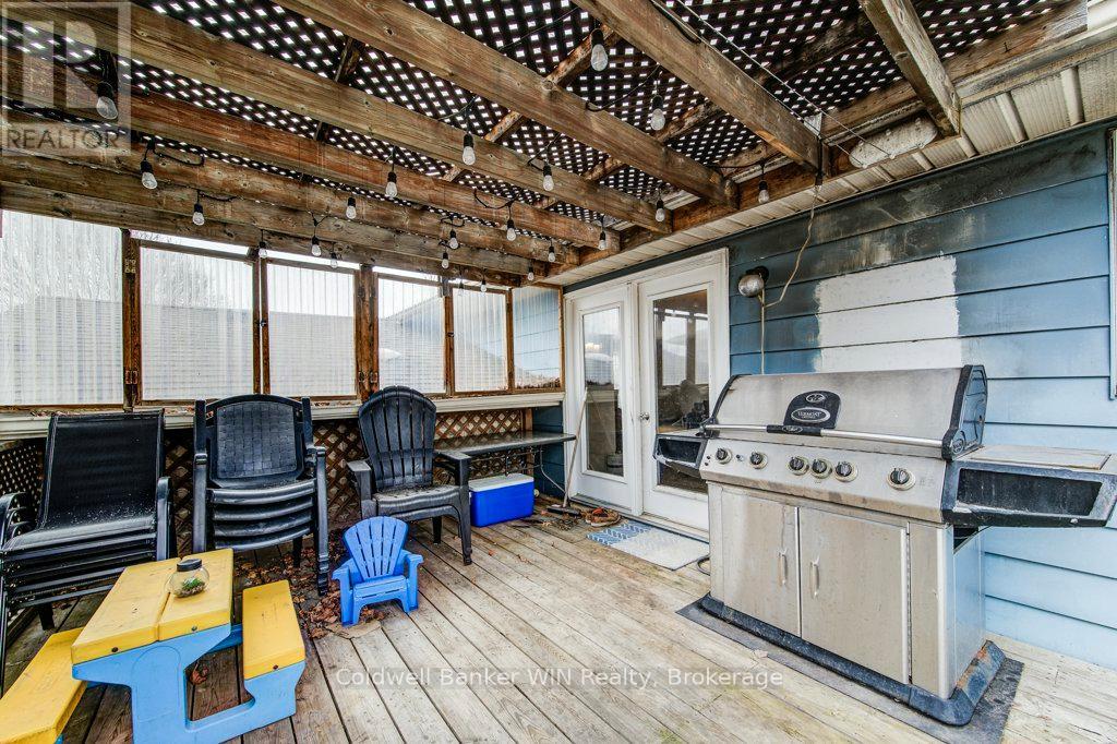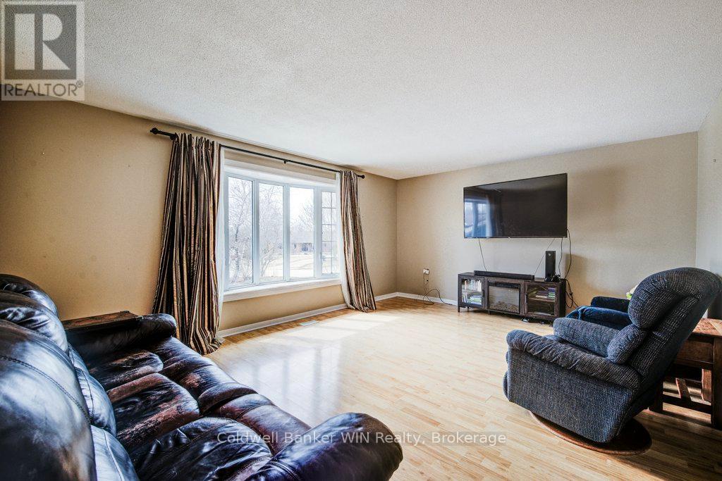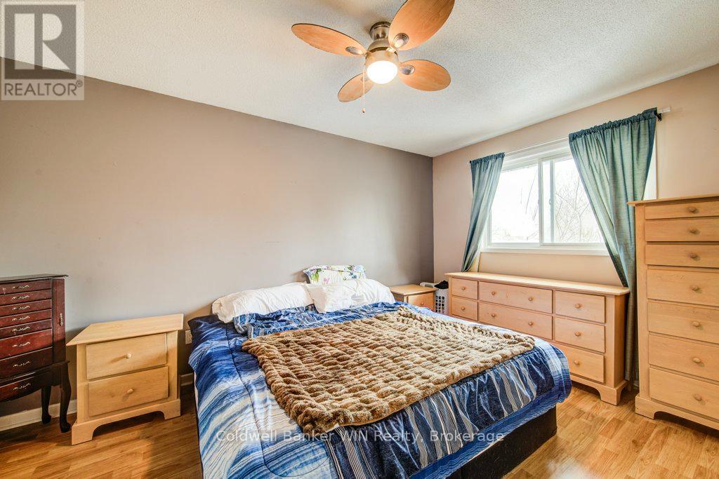 Tucked away on a quiet dead-end cul-de-sac in the heart of Mount Forest, this well-maintained raised bungalow offers comfort, versatility, and an ideal family-friendly location. Featuring a single-car attached garage, this home is perfect for those seeking both convenience and privacy. The bright and inviting main floor showcases a spacious living room, along with a functional kitchen and dining area complete with French doors leading out to a partially covered, two-tier deck which is perfect for entertaining or relaxing outdoors. Three generously sized bedrooms and a 4-piece bathroom complete the main level. Downstairs, the fully renovated (2020) in-law suite offers excellent potential for multigenerational living. This space includes a cozy living room, eat-in kitchenette, recreation room, a bedroom, and a modern 3-piece bathroom with a tiled shower and cheater ensuite access. Thanks to the raised bungalow design, the basement enjoys large windows that fill the space with natural light. A shared utility room with laundry adds to the home's practicality. Outside, the fully fenced yard provides a safe and private space for children and pets to play. Just steps away, you'll find a fantastic multi-use municipal outdoor area featuring a walking track, baseball diamonds, soccer fields, a playground, and a splash pad that is perfect for enjoying those warm summer days. This is a wonderful opportunity to own a versatile home in a peaceful setting, close to all the amenities that make Mount Forest such a great place to live. (id:51300)