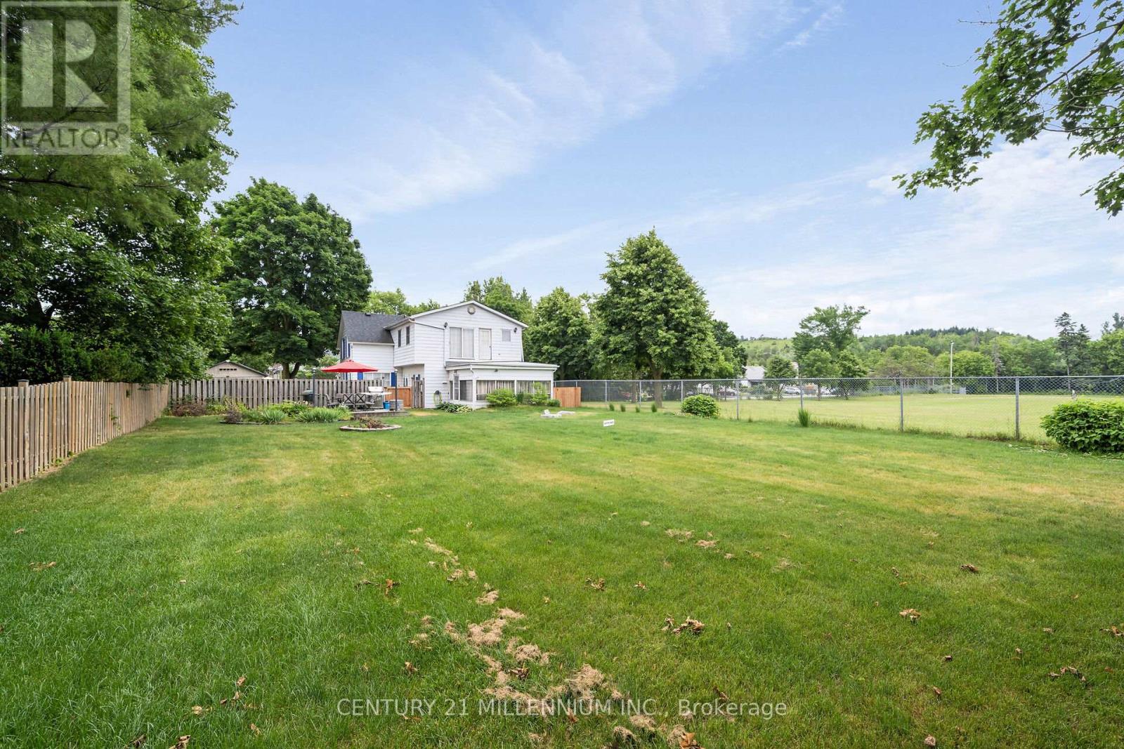 Welcome to 3 Centre Street, right in the centre of the Village of Erin. This Century home is a charming reminder of the past, merging the history, culture, and architectural styles of a bygone era. The home reminds us of the evolution of housing and community living, highlighting how families once gathered in the large living and dining rooms, fostering connections and traditions. From the curb you will see a wonderful front porch with perennial gardens and mature trees creating a picturesque setting. The long lot extends towards the back offering ample space for outdoor activities or gardening. The fully fenced yard backs and sides onto the Erin Agricultural Society, providing scenic views of the open fields and a sense of community. Inside the home boasts high ceilings, hardwood floors and large windows that allow natural light to flood the living spaces. The kitchen opens to a lovely sunroom extending into the backyard. Upstairs are four generous bedrooms and a freshly renovated full bath plus second floor laundry. The proximity to the Erin Agricultural Society adds an extra layer of charm, as residents can enjoy local events, such as The Erin Fall Fair, which is celebrating its 175th year this Thanksgiving weekend. The neighbours on this street are always looking out for each other fostering a strong connection to the vibrant community. A mere 35-minute drive to the GTA or 15 minutes to the GO train, your commute is a breeze. Walking distance to all the downtown businesses, schools and brand new library. (id:51300)