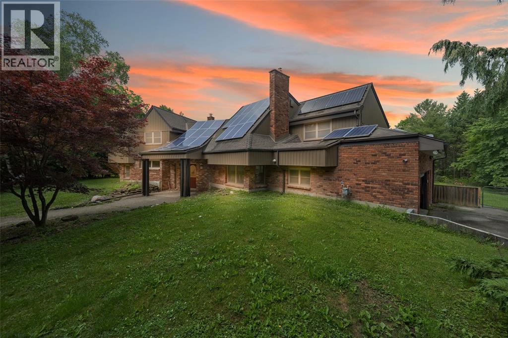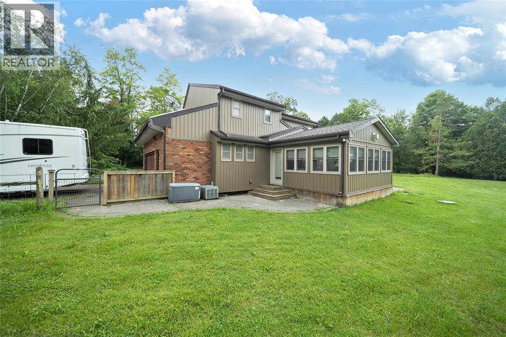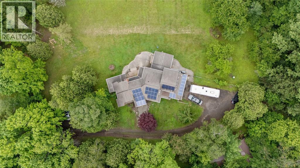 Welcome to your dream home, nestled on 2 acres of tranquil and private paradise. This thoughtfully designed residence provides a perfect blend of comfort and seclusion, featuring four spacious bedrooms and three bathrooms, along with three cozy fireplaces. Modern conveniences abound, including a generator installed in 2017 for uninterrupted power, and a state-of-the-art two-stage furnace added in 2023. The attractive and efficient leaf guard eavestrough and natural gas cooktop were both installed in 2021, enhancing both functionality and the home's aesthetic appeal. This energy-efficient home features heat-mirrored glass on 90% of the windows and comes equipped with a reliable ADT alarm system for your peace of mind. With ample parking and storage options, including a substantial 20 x 40 outdoor shed, you'll have all the space you need. Additionally, the solar panels generate annual rebates from Hydro One, which can offset your property taxes, making this home not only a luxurious choice but also a smart investment. (id:51300)